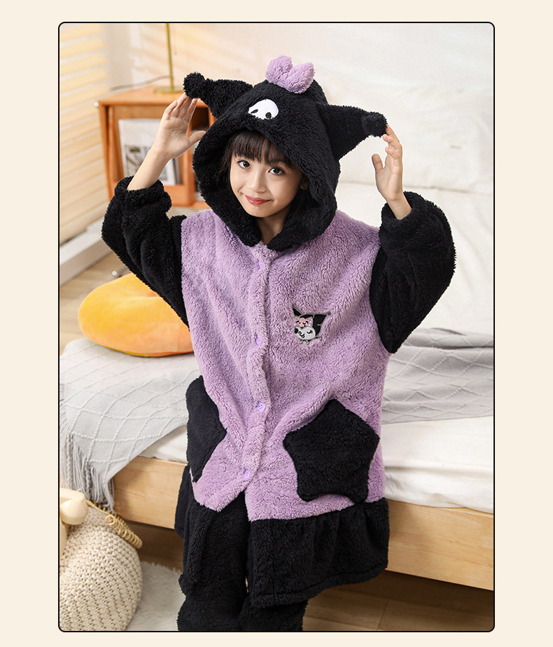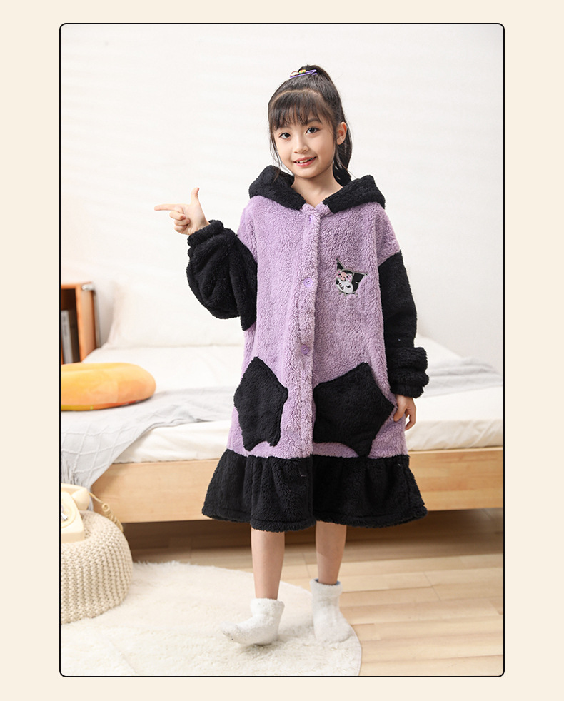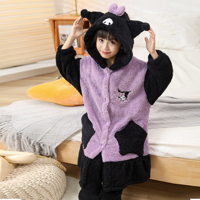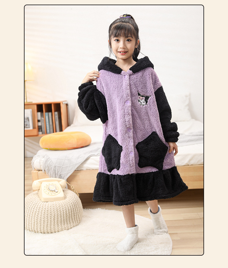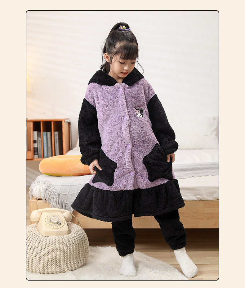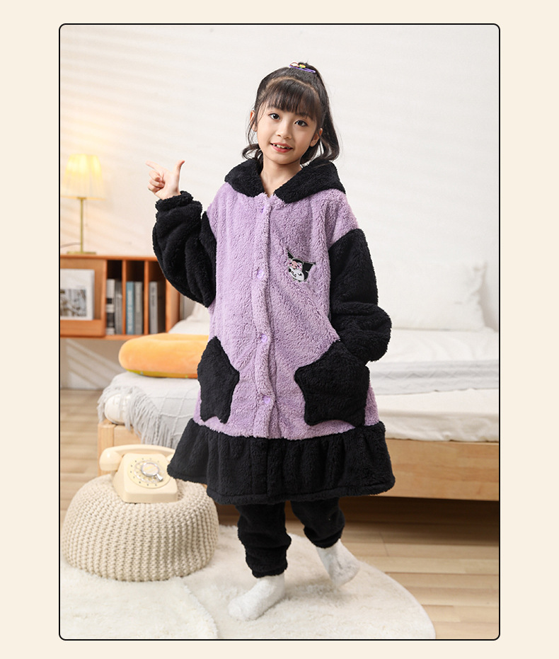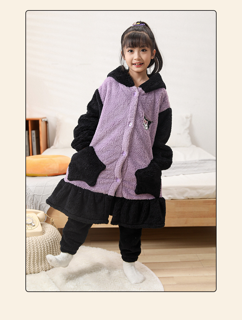 소녀 가을과 겨울 잠옷 쿠로미 플란넬 패딩 어린이 잠옷 산호 양털 대형 어린이 목욕 가운 가정용 옷