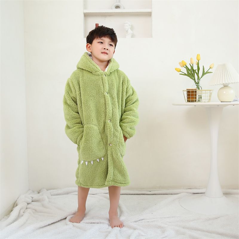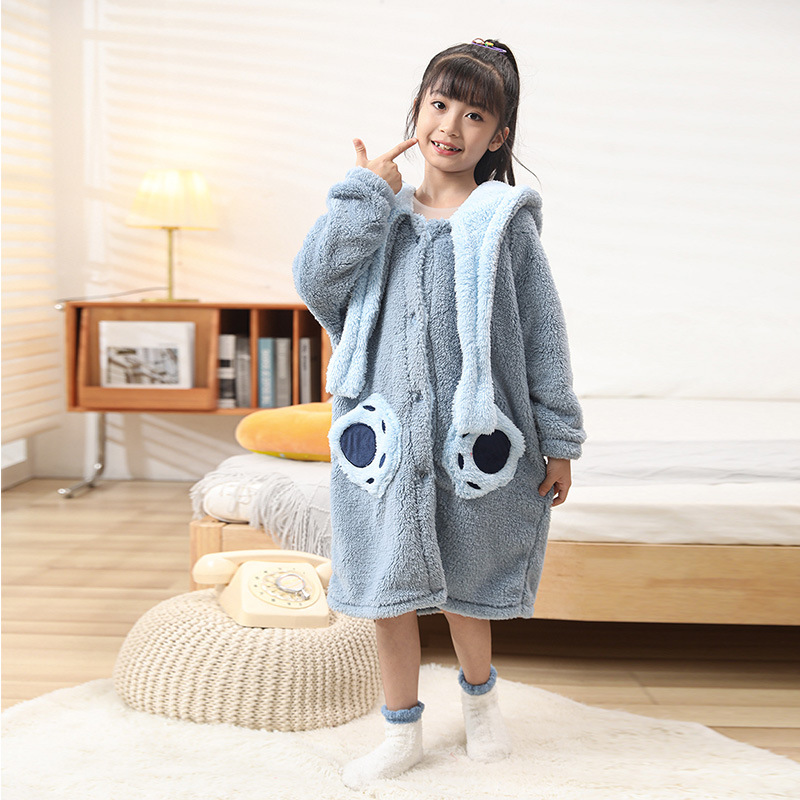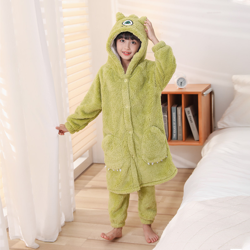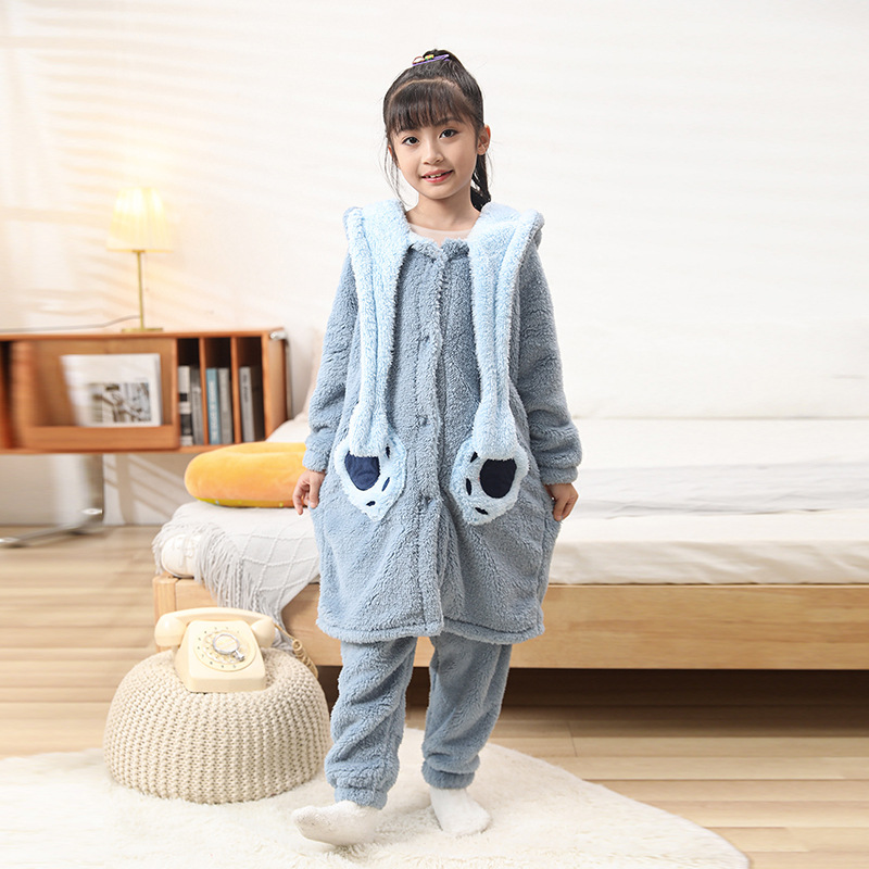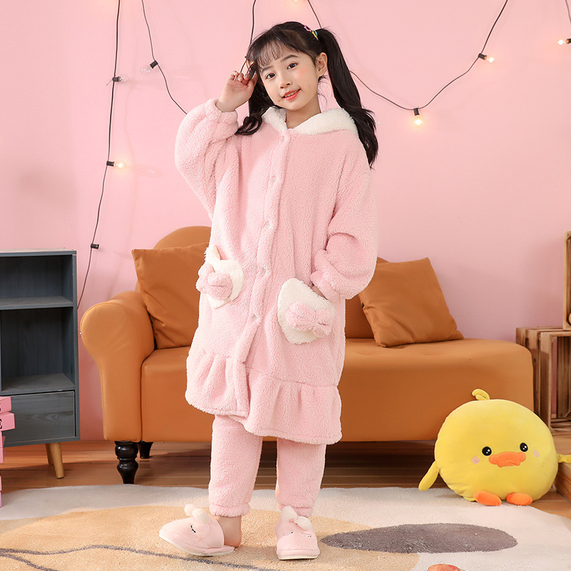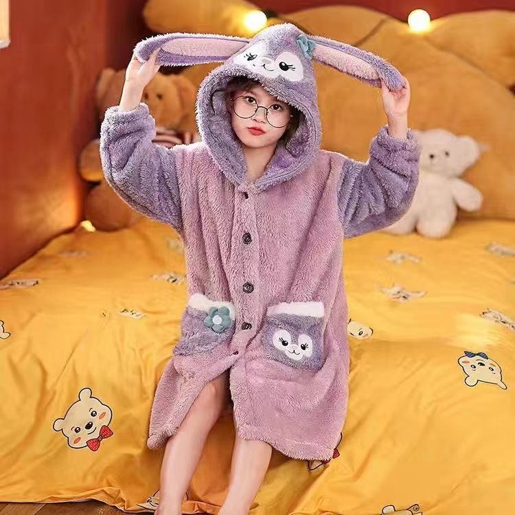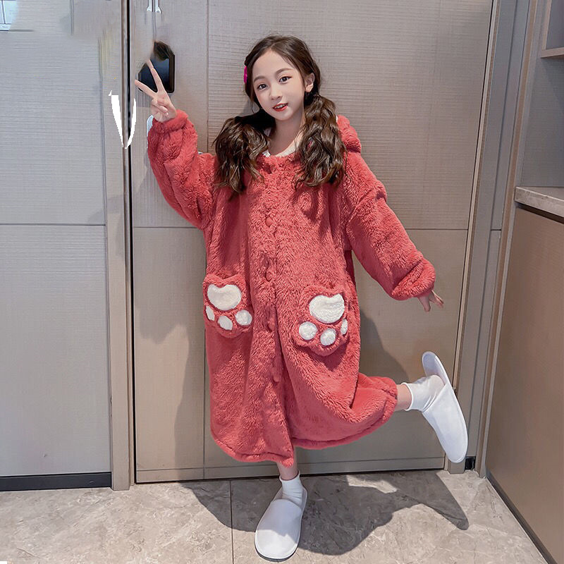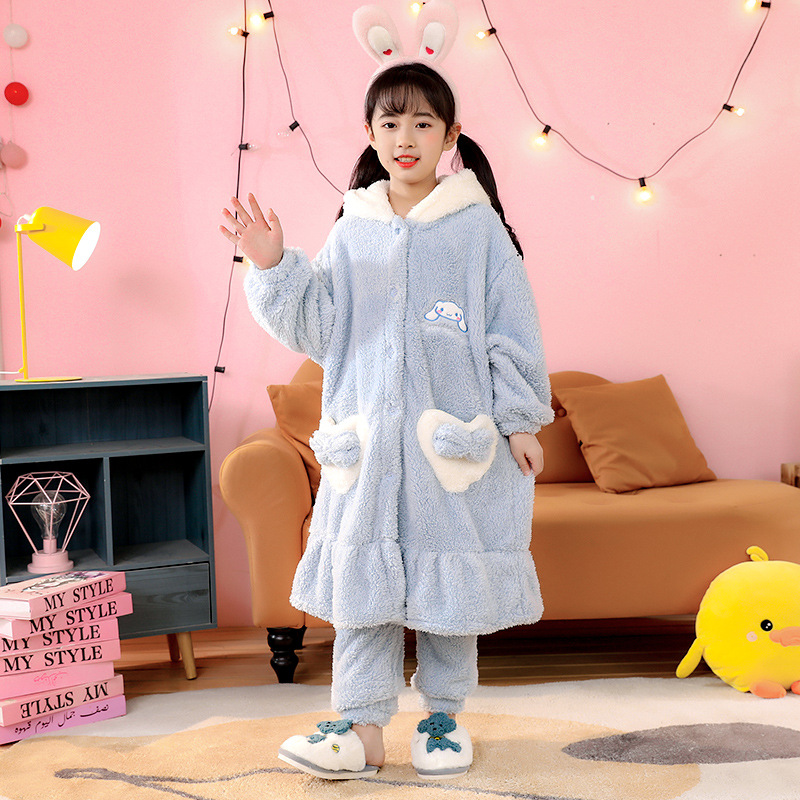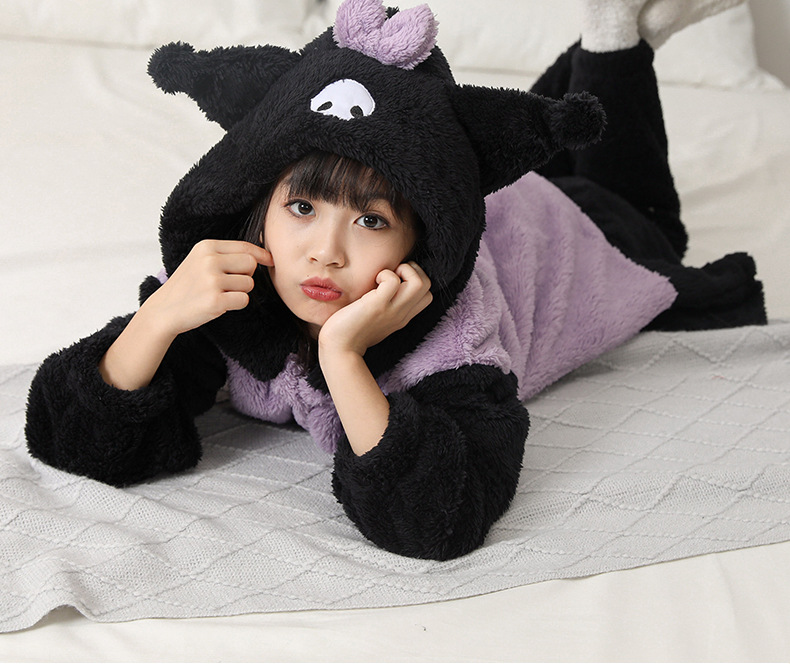 소녀 가을과 겨울 잠옷 쿠로미 플란넬 패딩 어린이 잠옷 산호 양털 대형 어린이 목욕 가운 가정용 옷