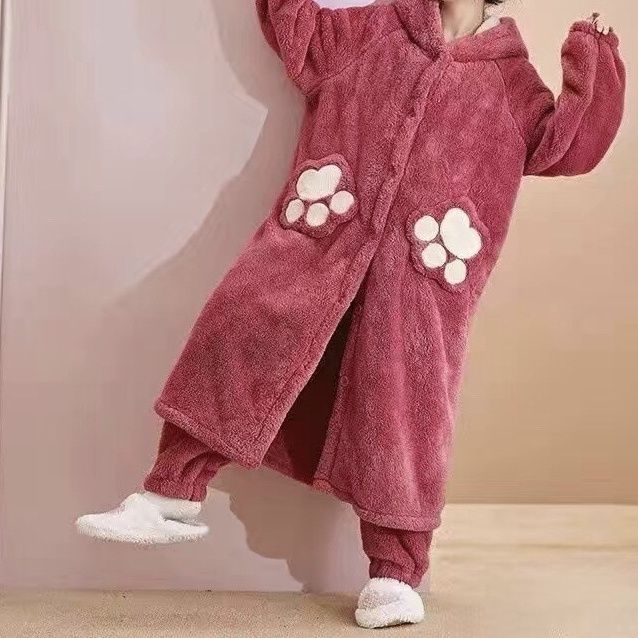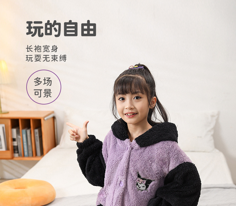 소녀 가을과 겨울 잠옷 쿠로미 플란넬 패딩 어린이 잠옷 산호 양털 대형 어린이 목욕 가운 가정용 옷스토어 가기