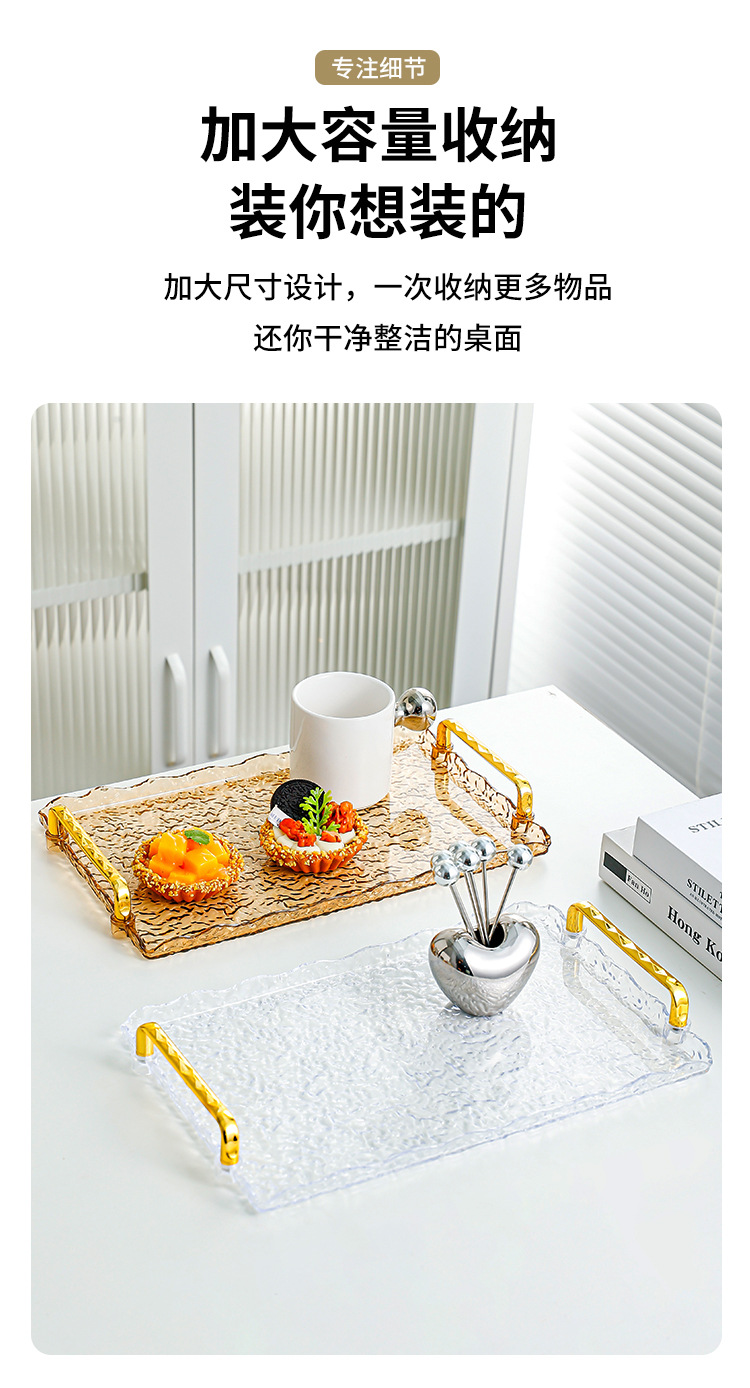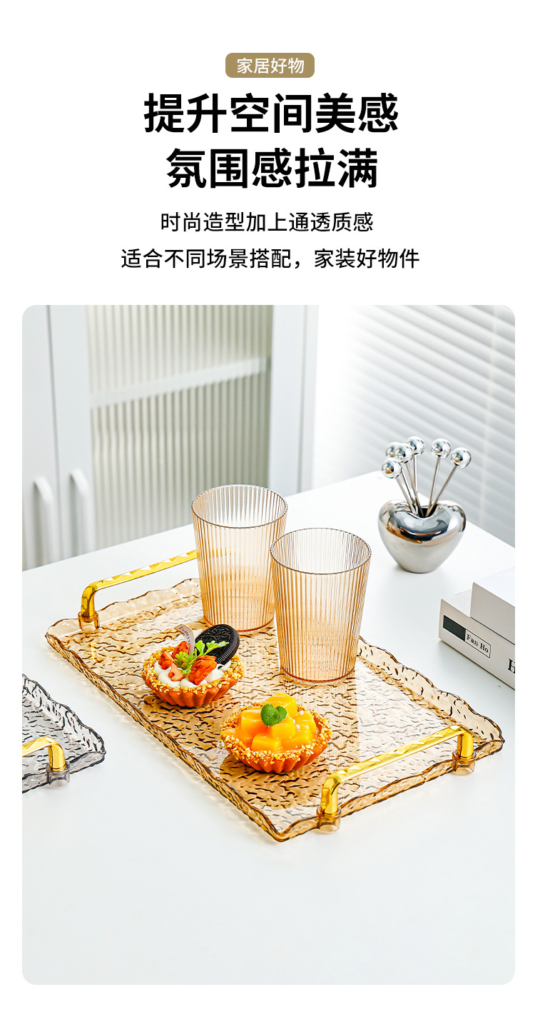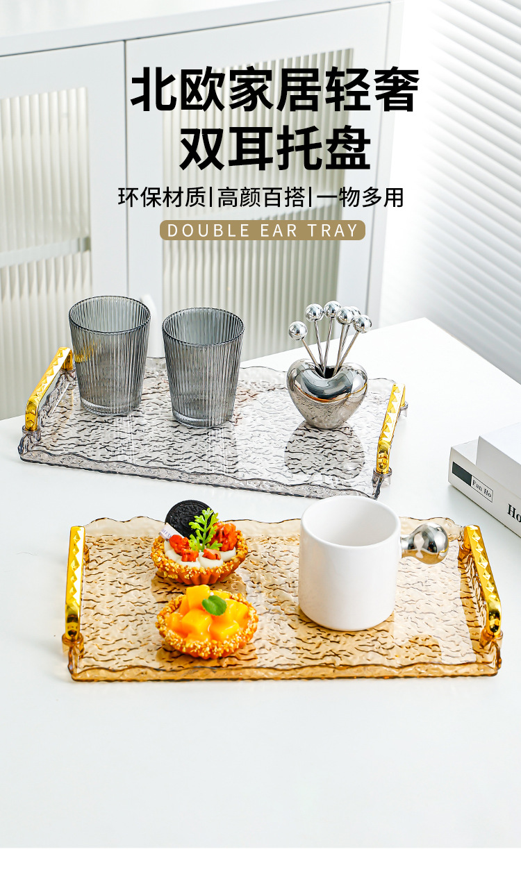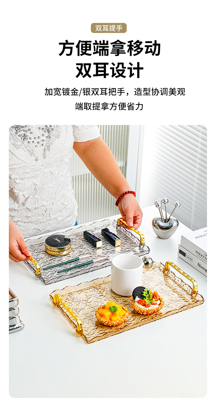 가벼운 럭셔리 직사각형 물 컵 뷰티 살롱 트레이 높은 아름다움 가치 가정용 찻잔 보관 향신료 접시 과일 케이크 디너 플레이트