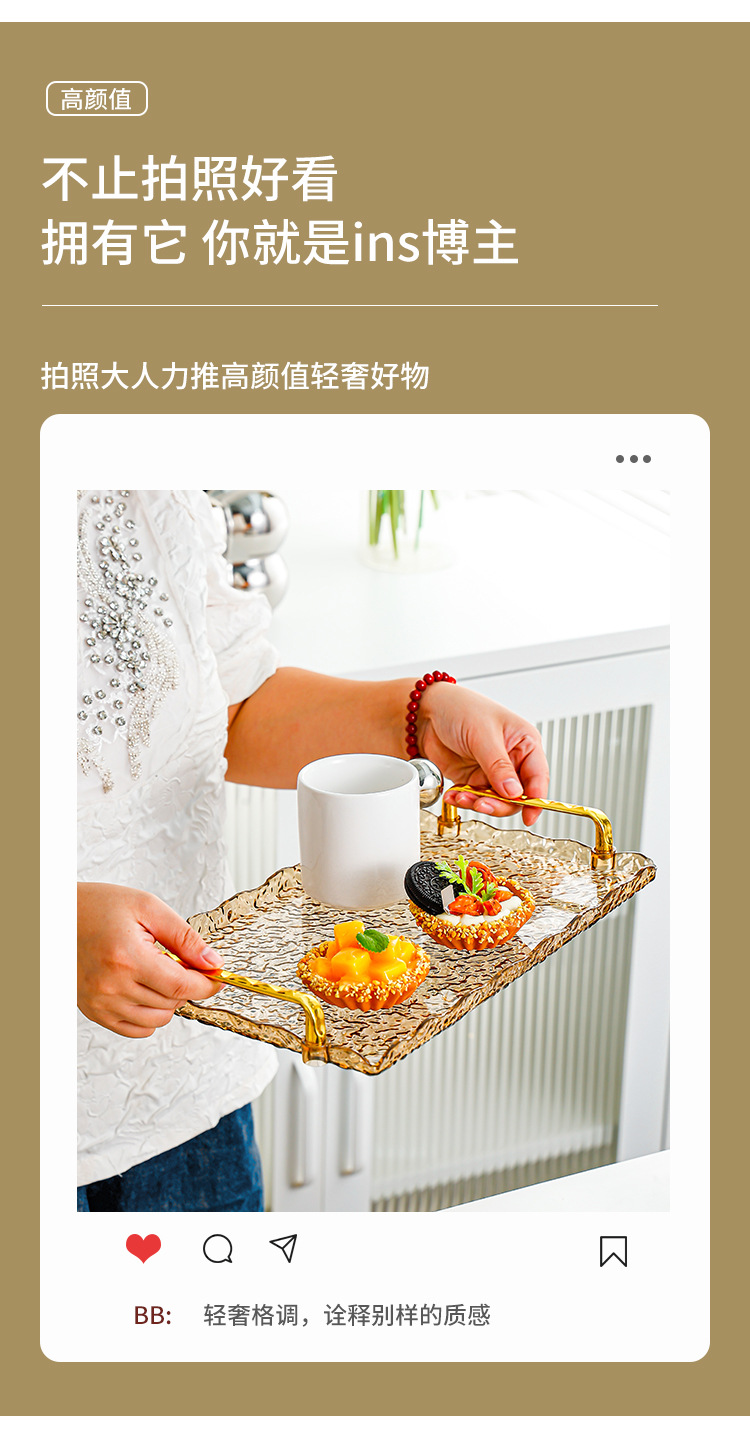 가벼운 럭셔리 직사각형 물 컵 뷰티 살롱 트레이 높은 아름다움 가치 가정용 찻잔 보관 향신료 접시 과일 케이크 디너 플레이트스토어 가기