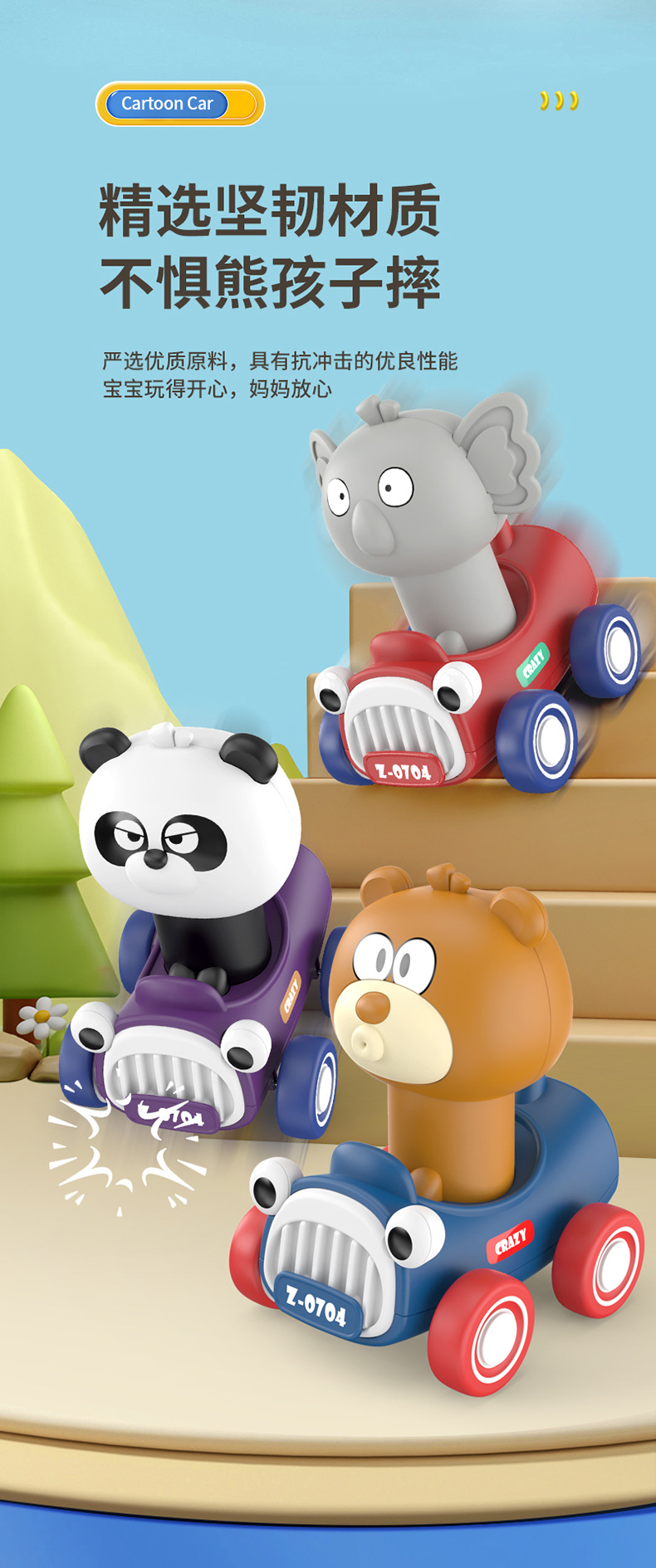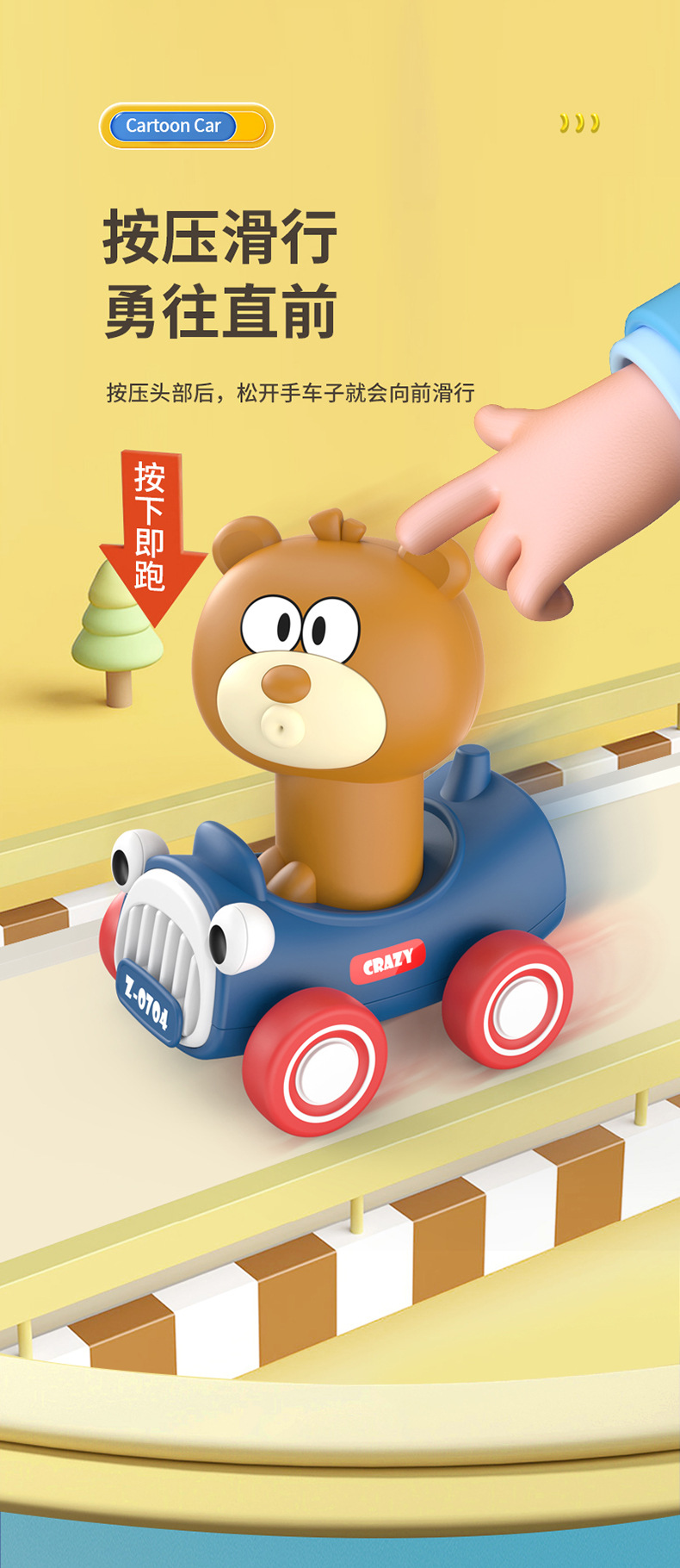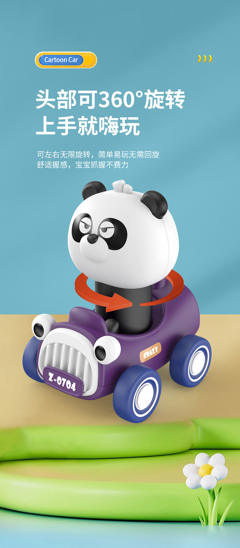 크로스 보더 뉴 프레스 슬라이딩 만화 동물 장난감 자동차 회전식 헤드 관성 자동차 낙하 방지 어린이 소년 소녀