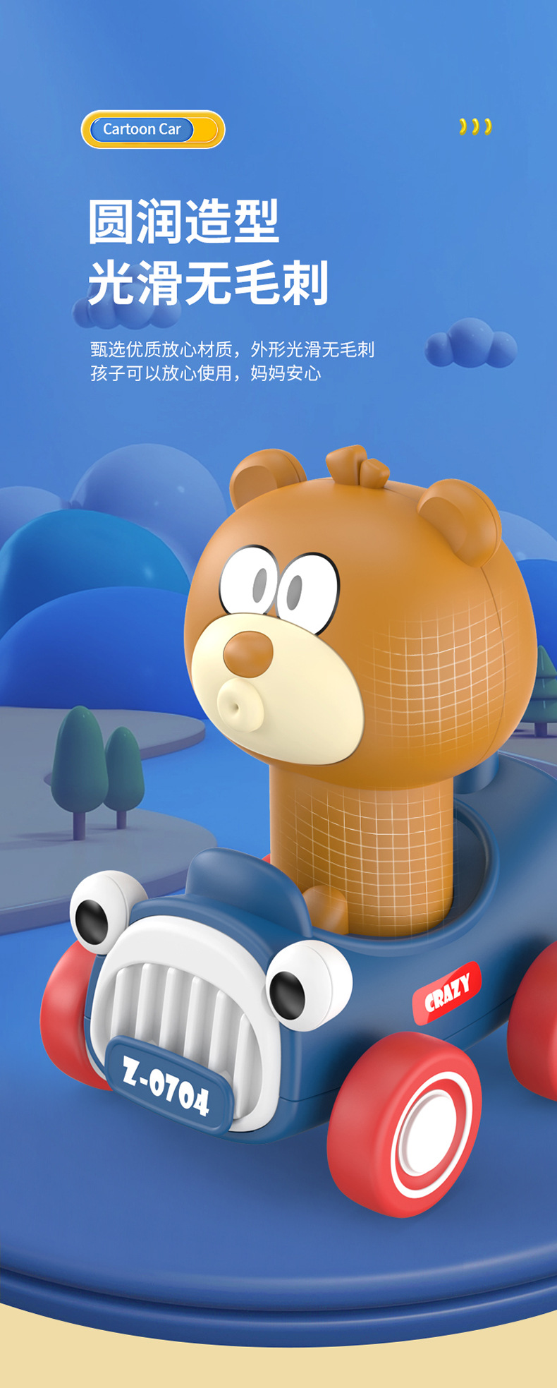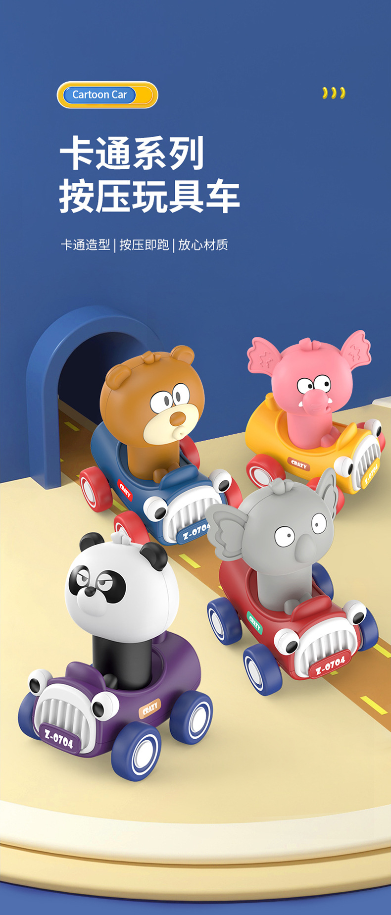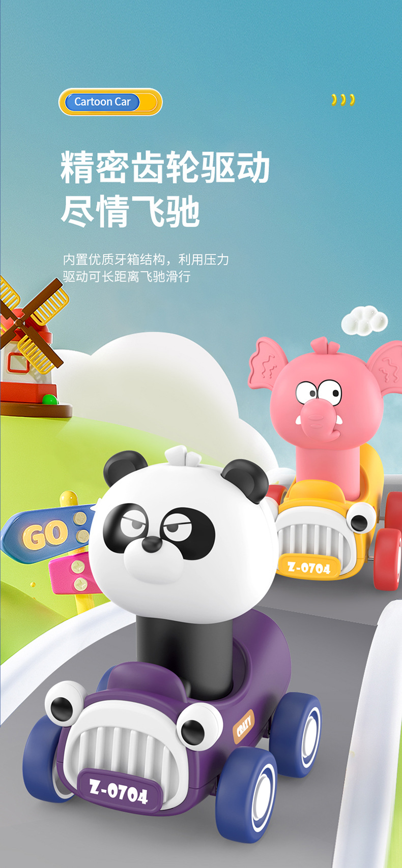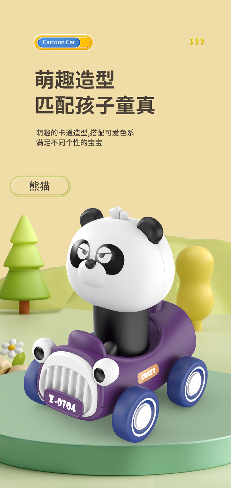 크로스 보더 뉴 프레스 슬라이딩 만화 동물 장난감 자동차 회전식 헤드 관성 자동차 낙하 방지 어린이 소년 소녀