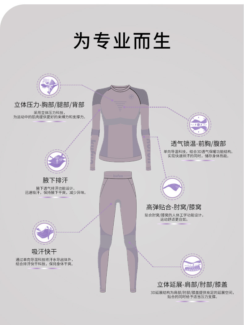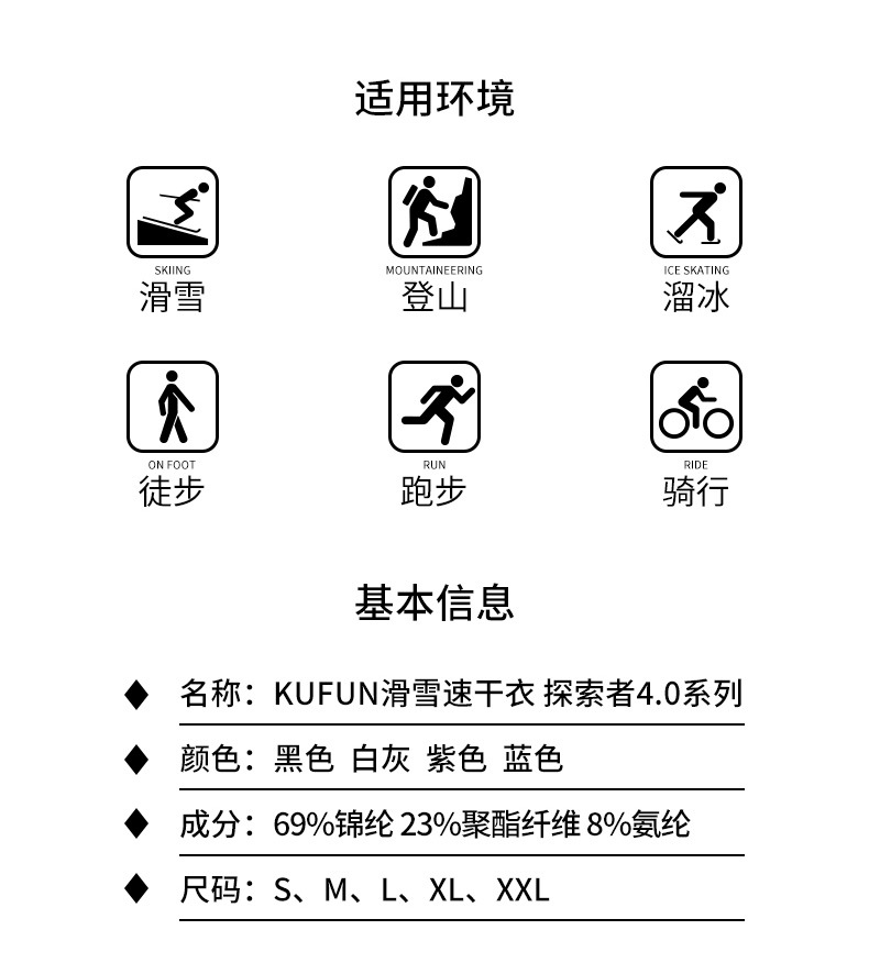 Kufeng 스키 속건 의류 따뜻한 압축 기능베이스 속옷 여성용 남성용 야외 등산 땀을 흘리는 전문 스타킹스토어 가기