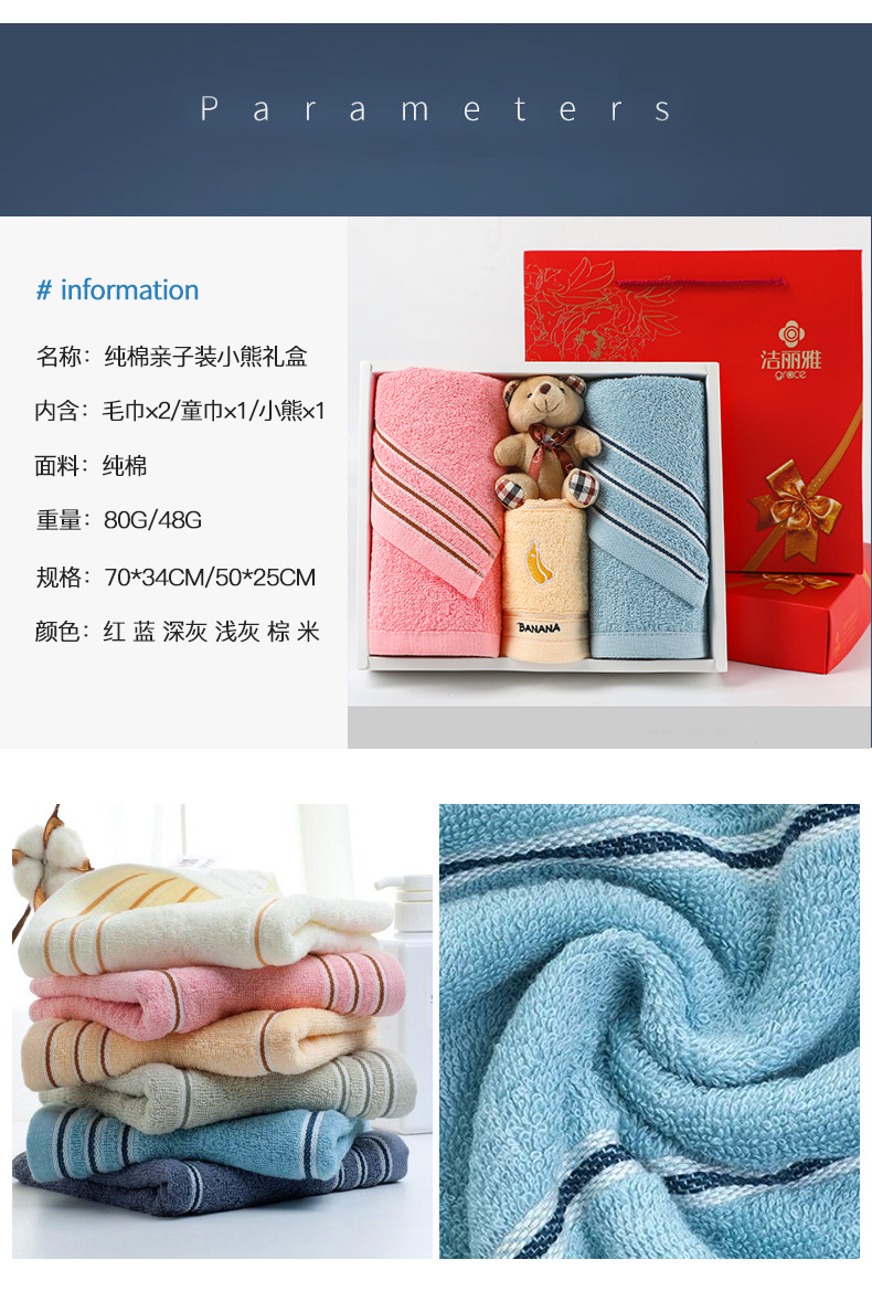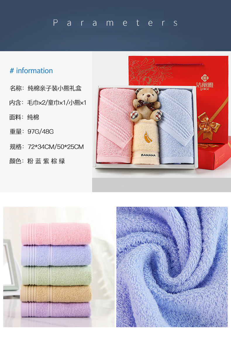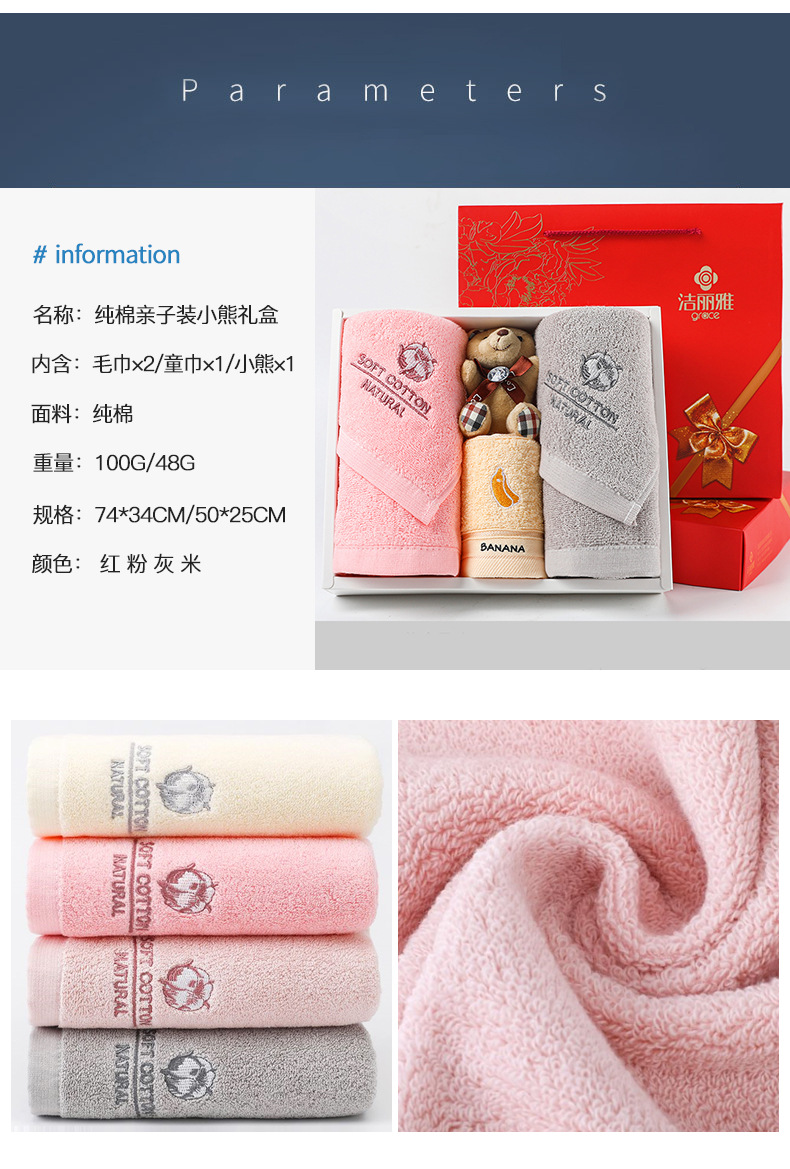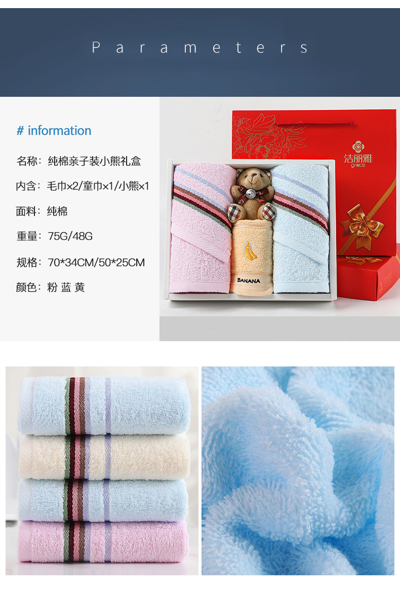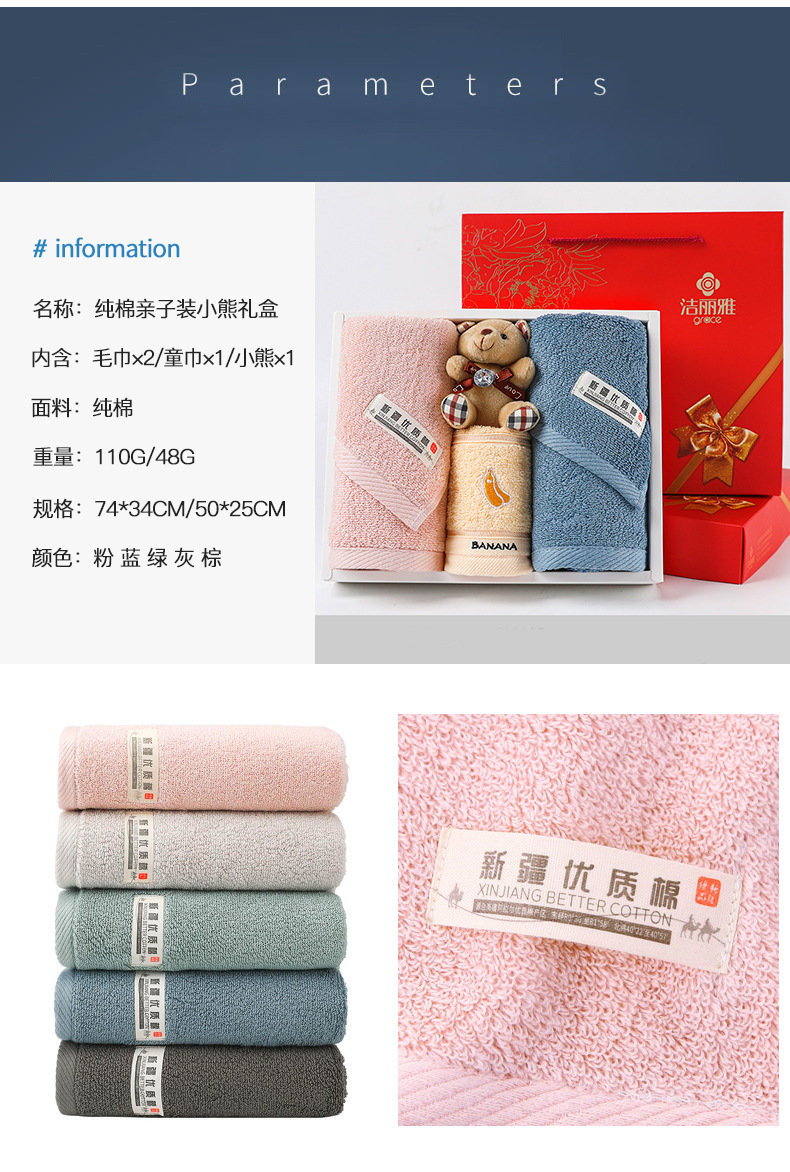 지아리야 3종 타월 선물세트, 순면 가정용 부모자식 세트, 결혼 답례품, 회의 기념품스토어 가기