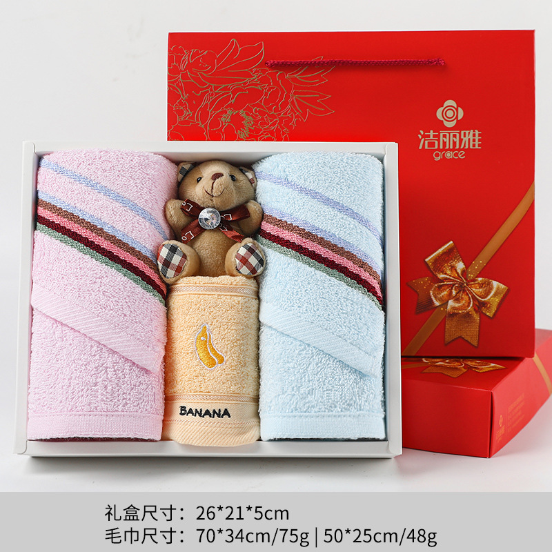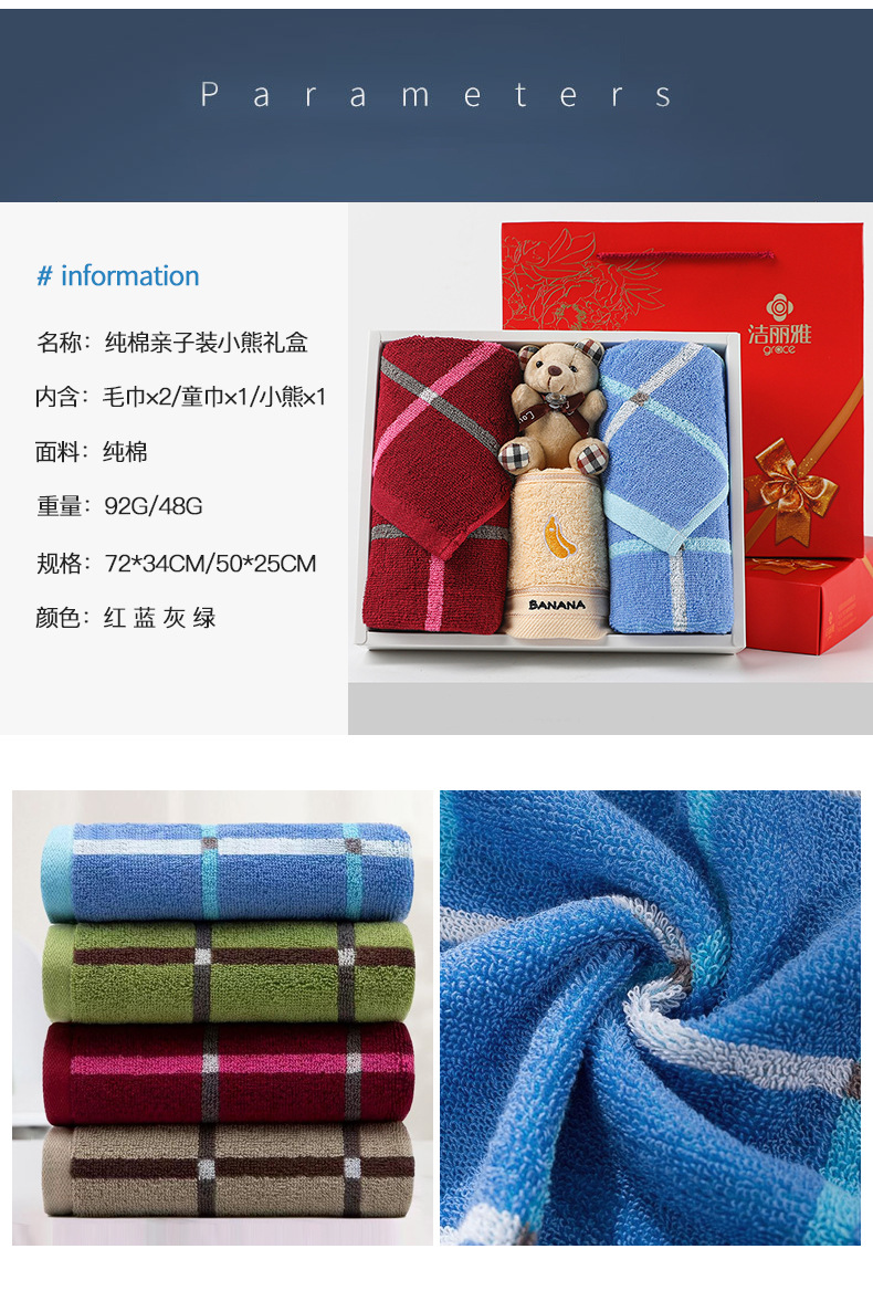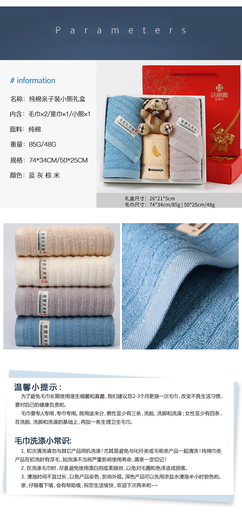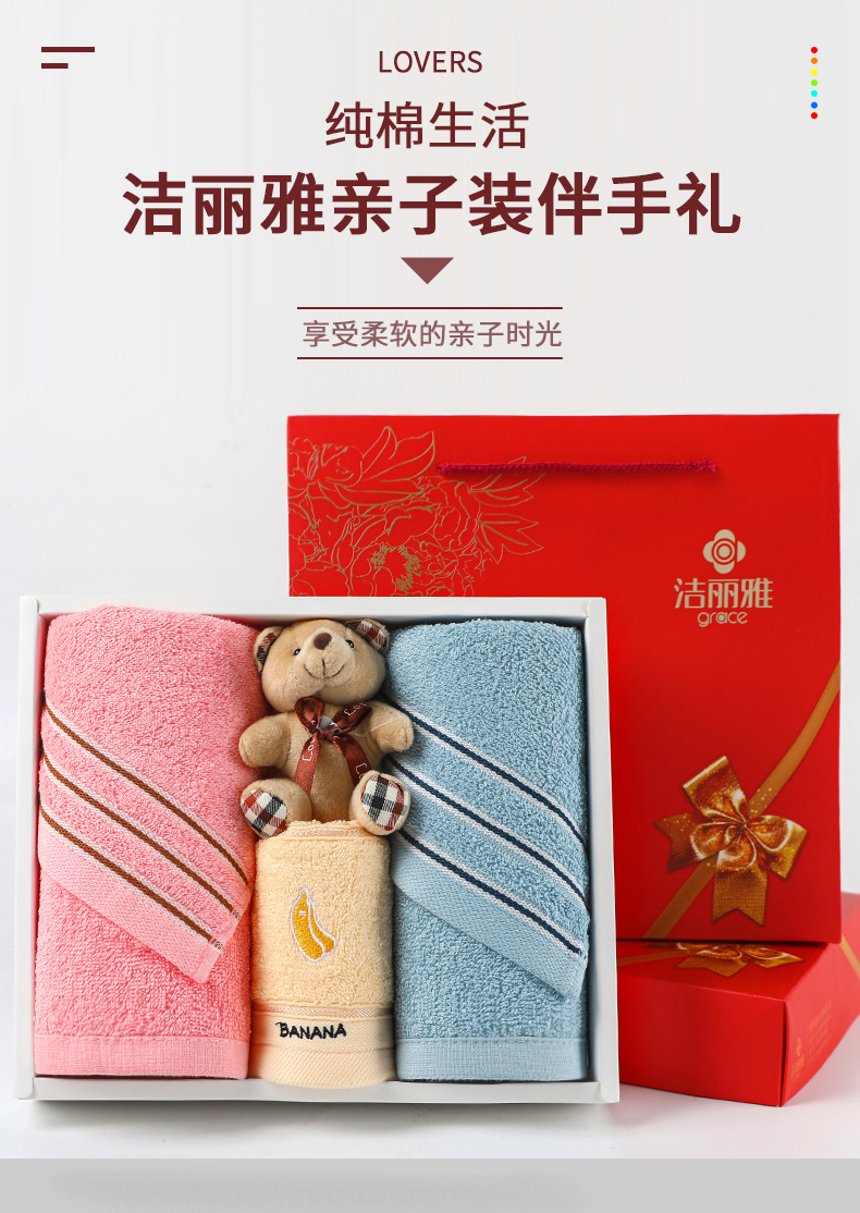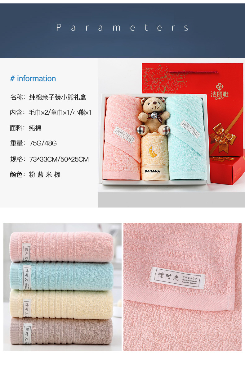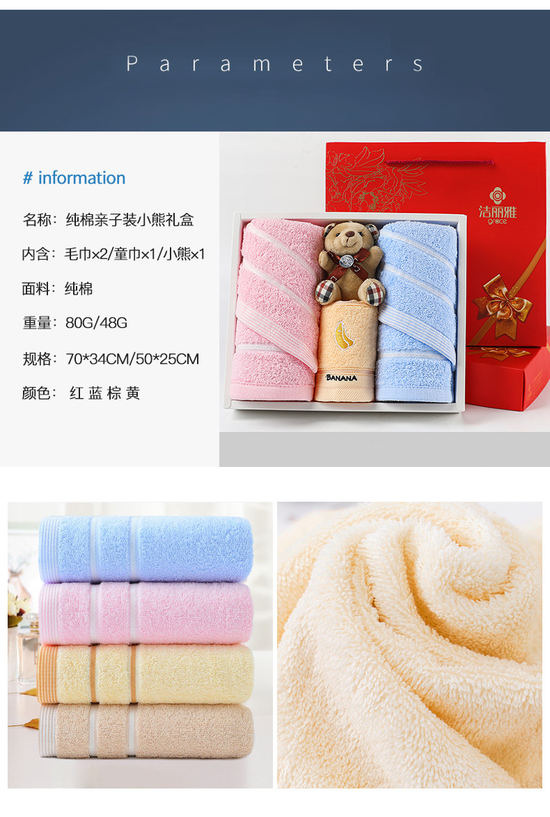 지아리야 3종 타월 선물세트, 순면 가정용 부모자식 세트, 결혼 답례품, 회의 기념품스토어 가기