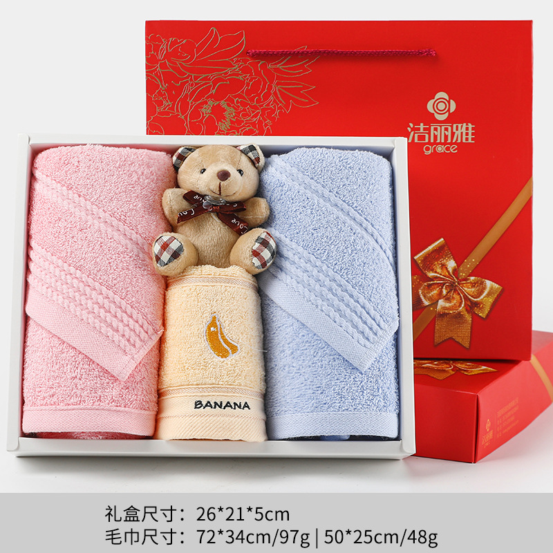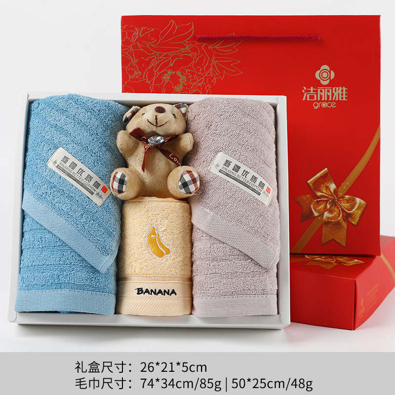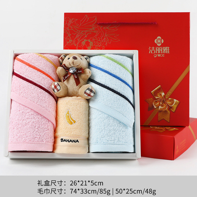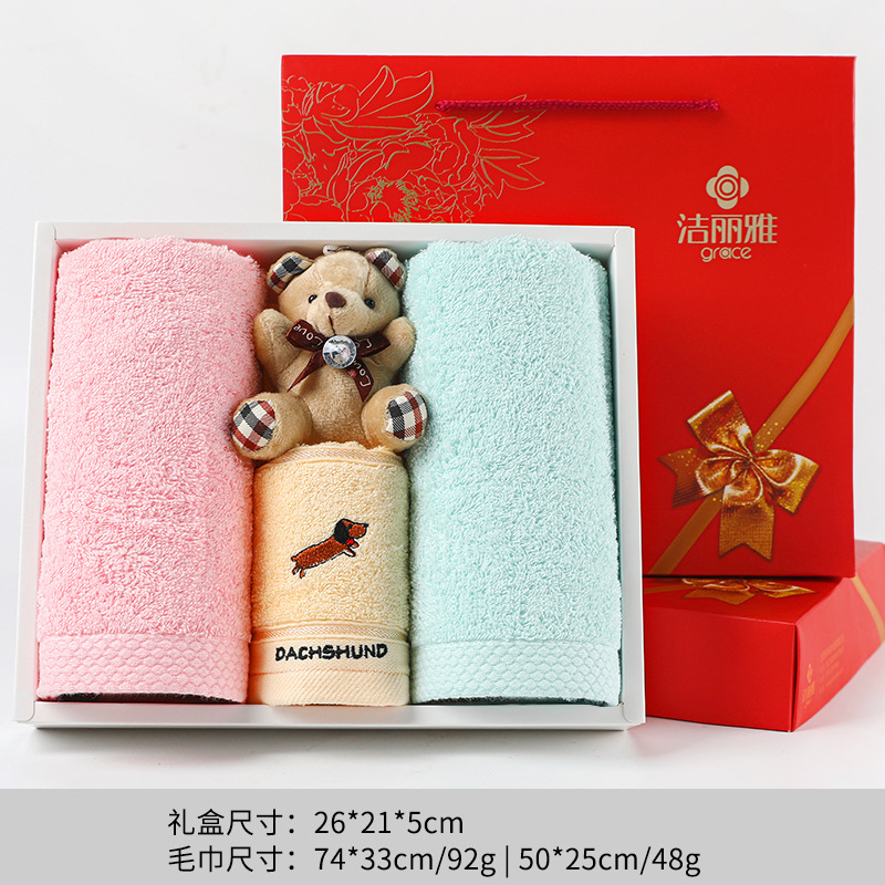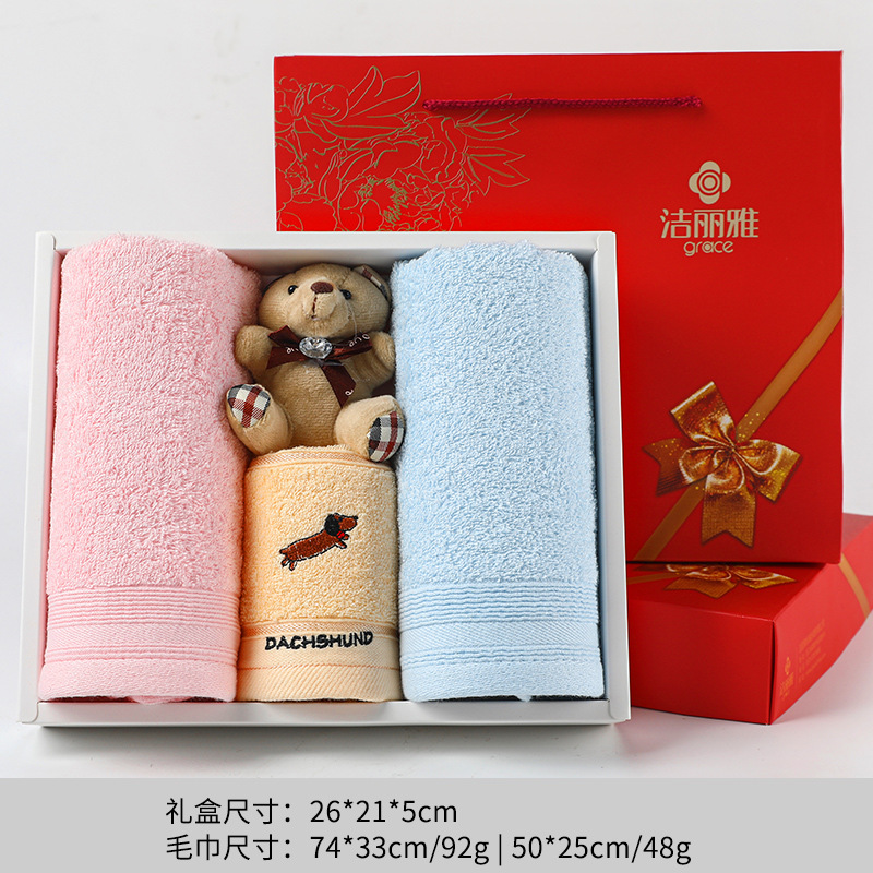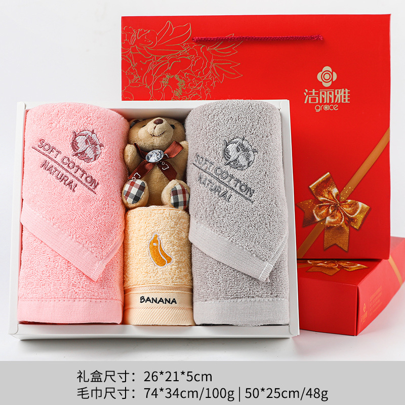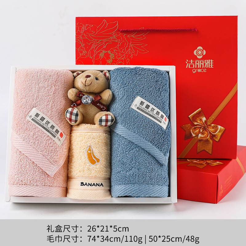 지아리야 3종 타월 선물세트, 순면 가정용 부모자식 세트, 결혼 답례품, 회의 기념품스토어 가기