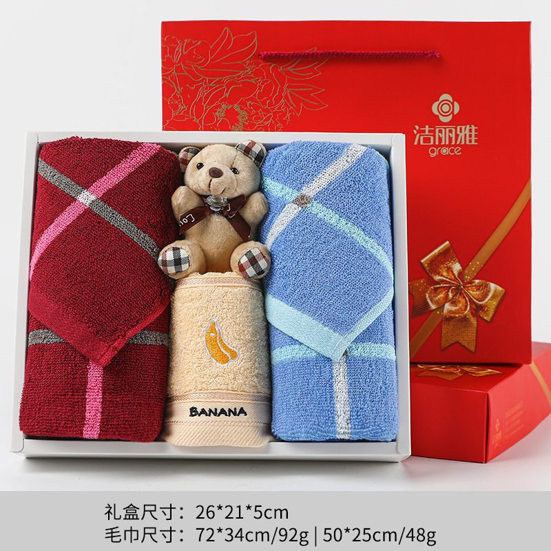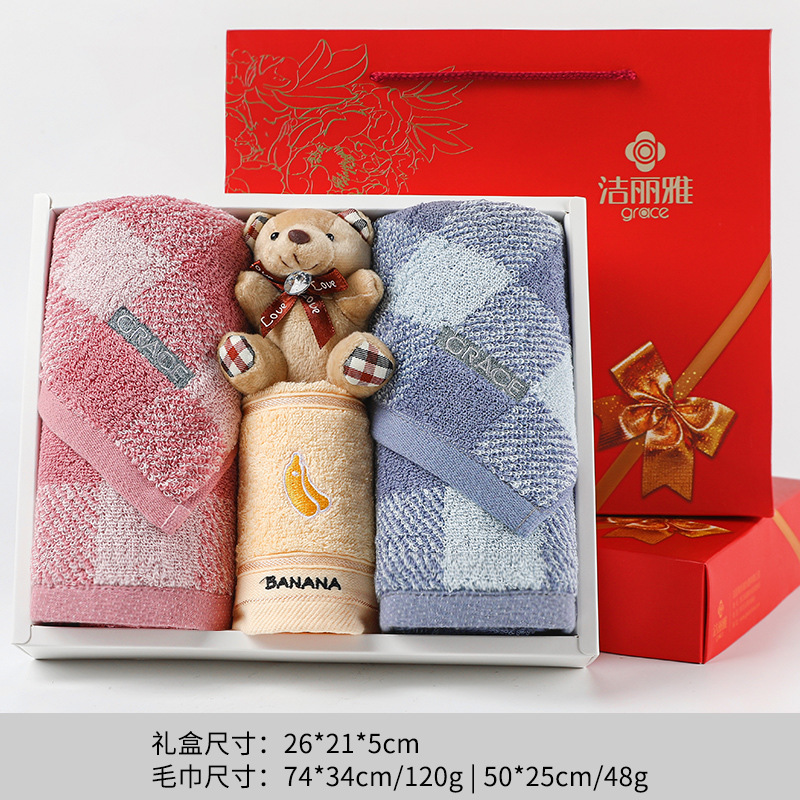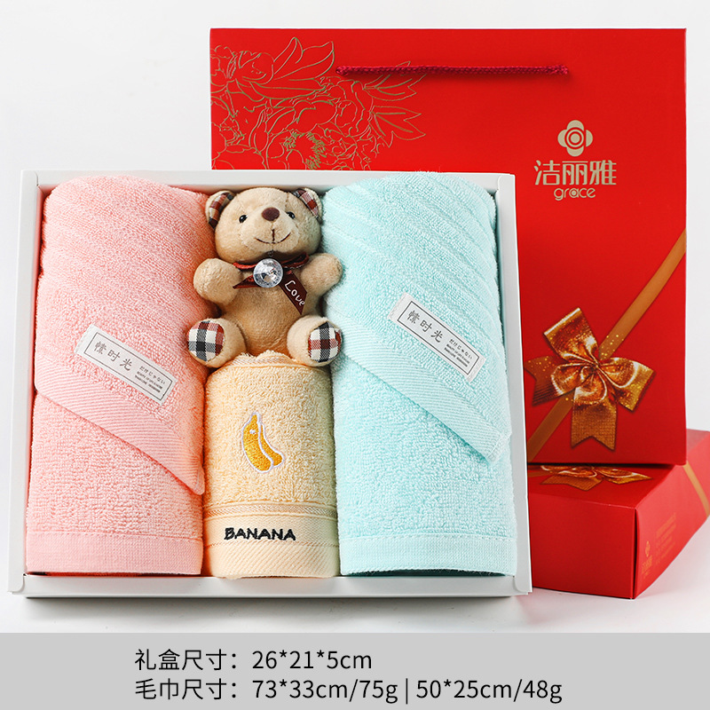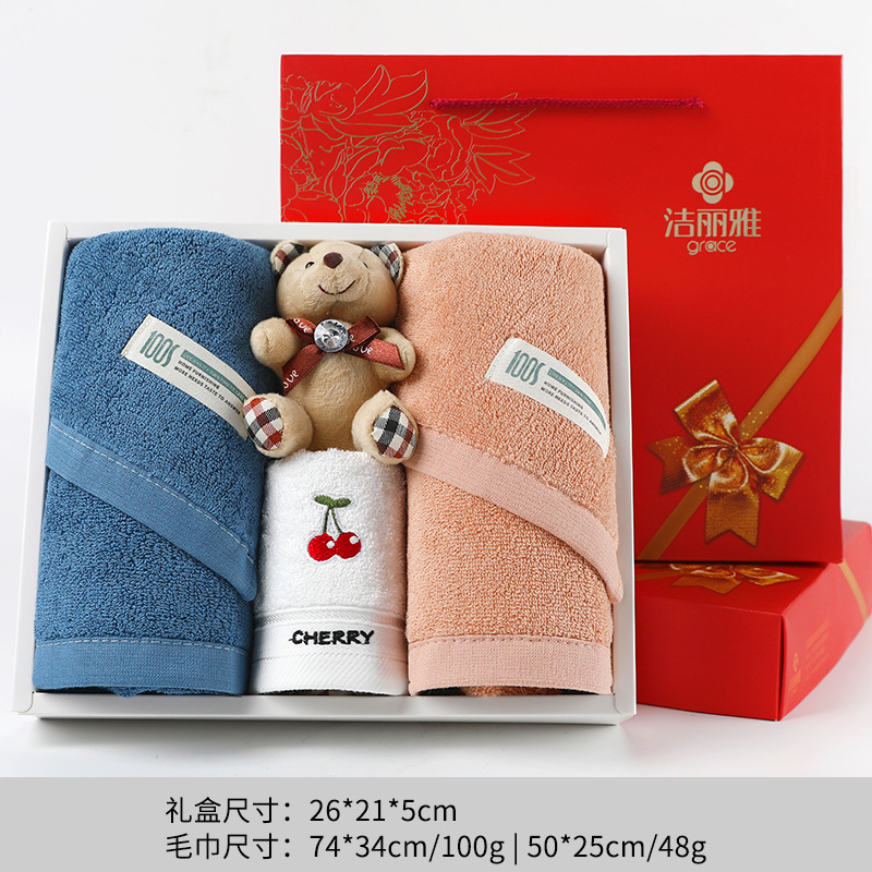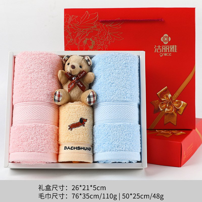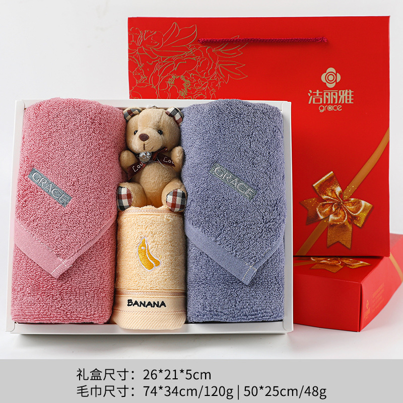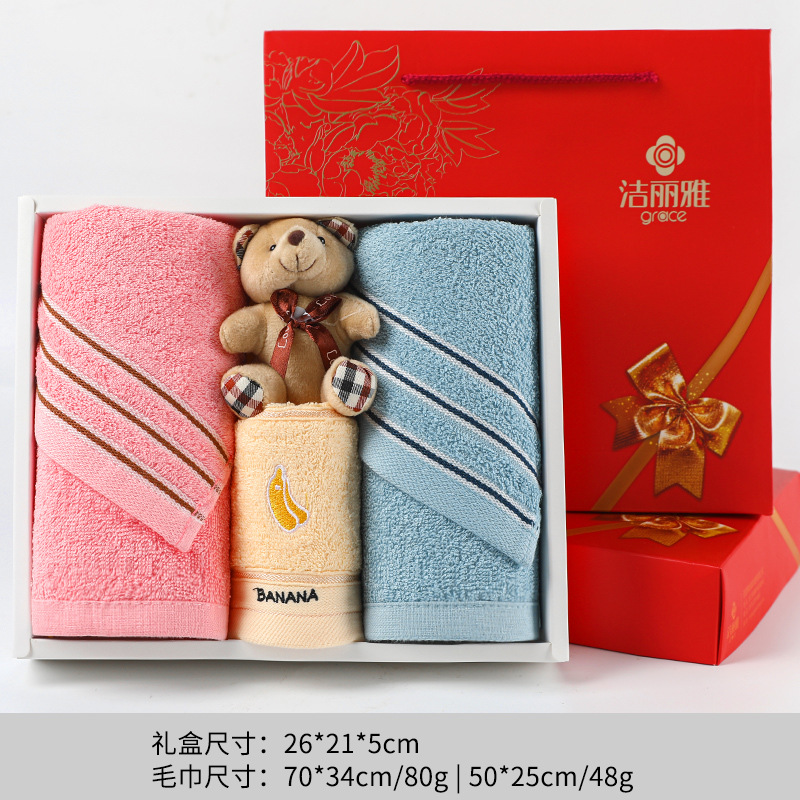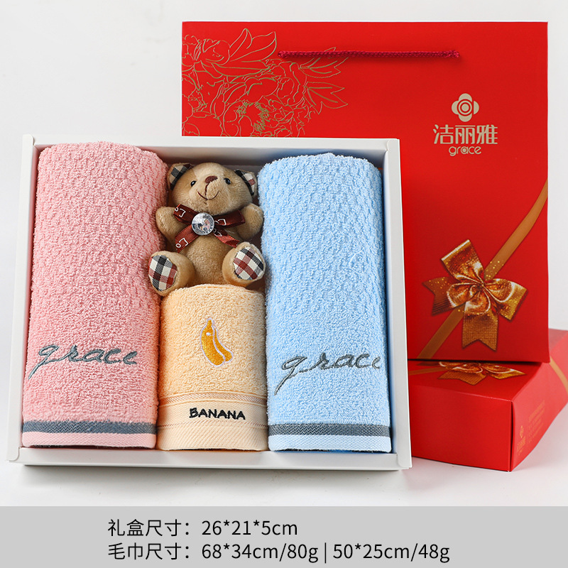 지아리야 3종 타월 선물세트, 순면 가정용 부모자식 세트, 결혼 답례품, 회의 기념품스토어 가기