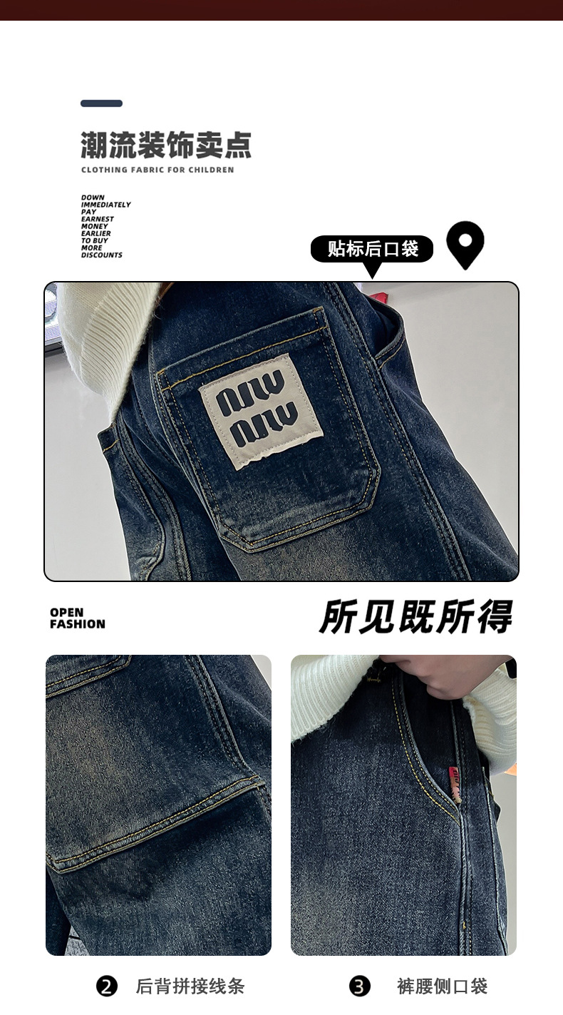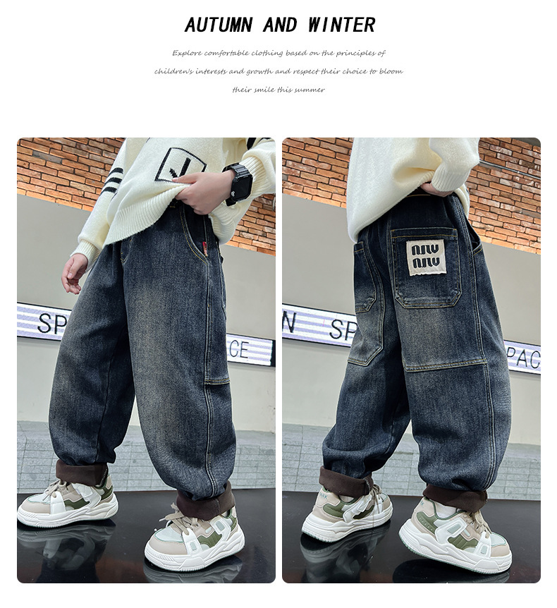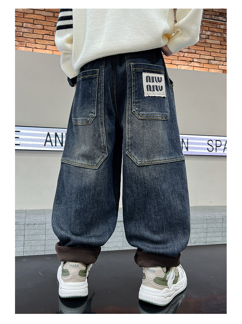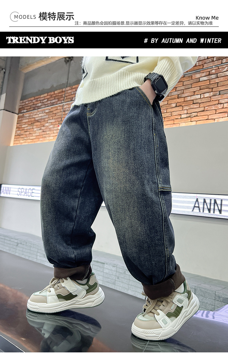 아동복 남아 겨울옷 기모 안감 두꺼운 청바지 2025 신상 남자아이 겨울 일체형 기모 바지 캐주얼 트렌디스토어 가기
