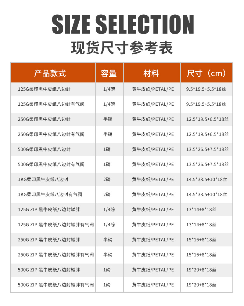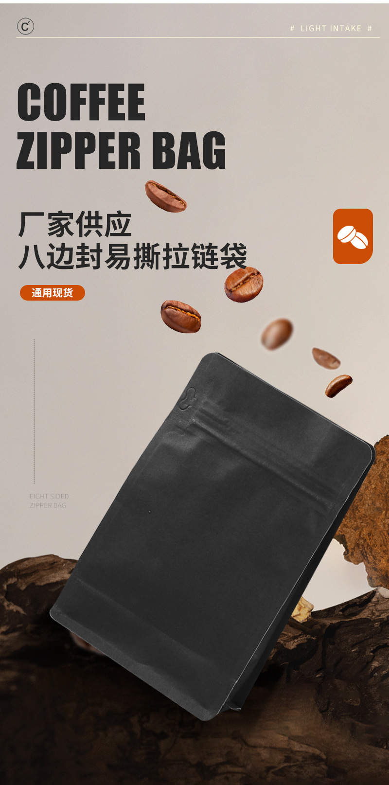 • 500g ZIP 검정 크라프트지 팔각 접착 봉투 (19X20+8, 기포 발생 밸브 포함)