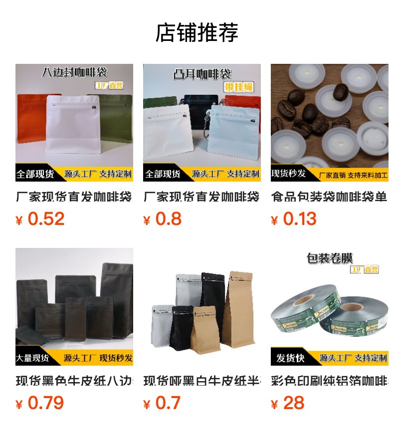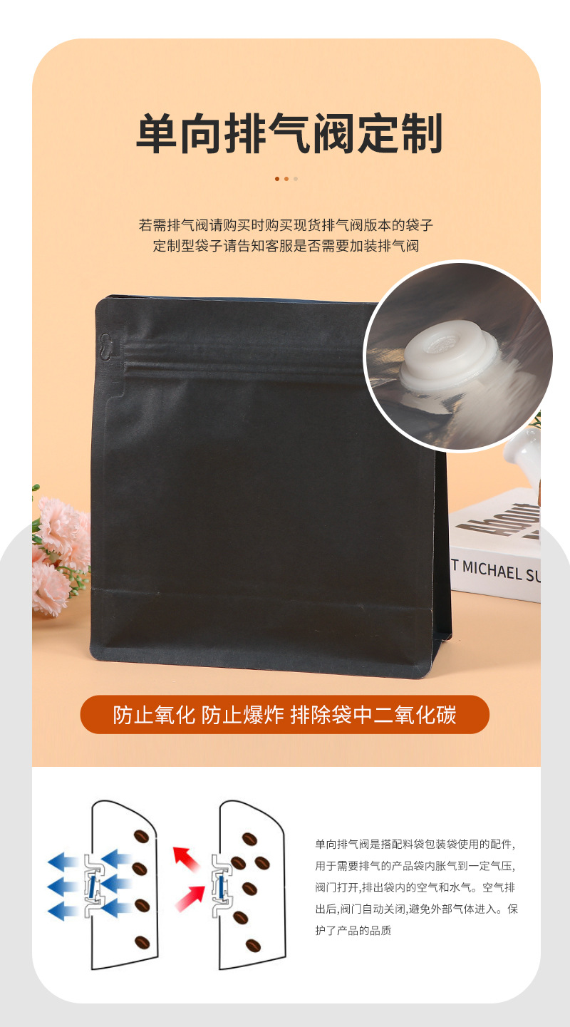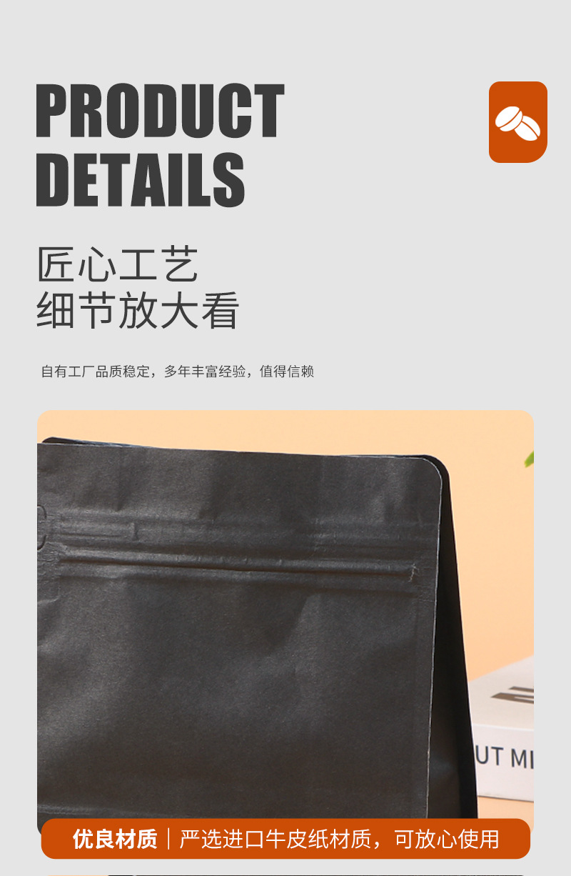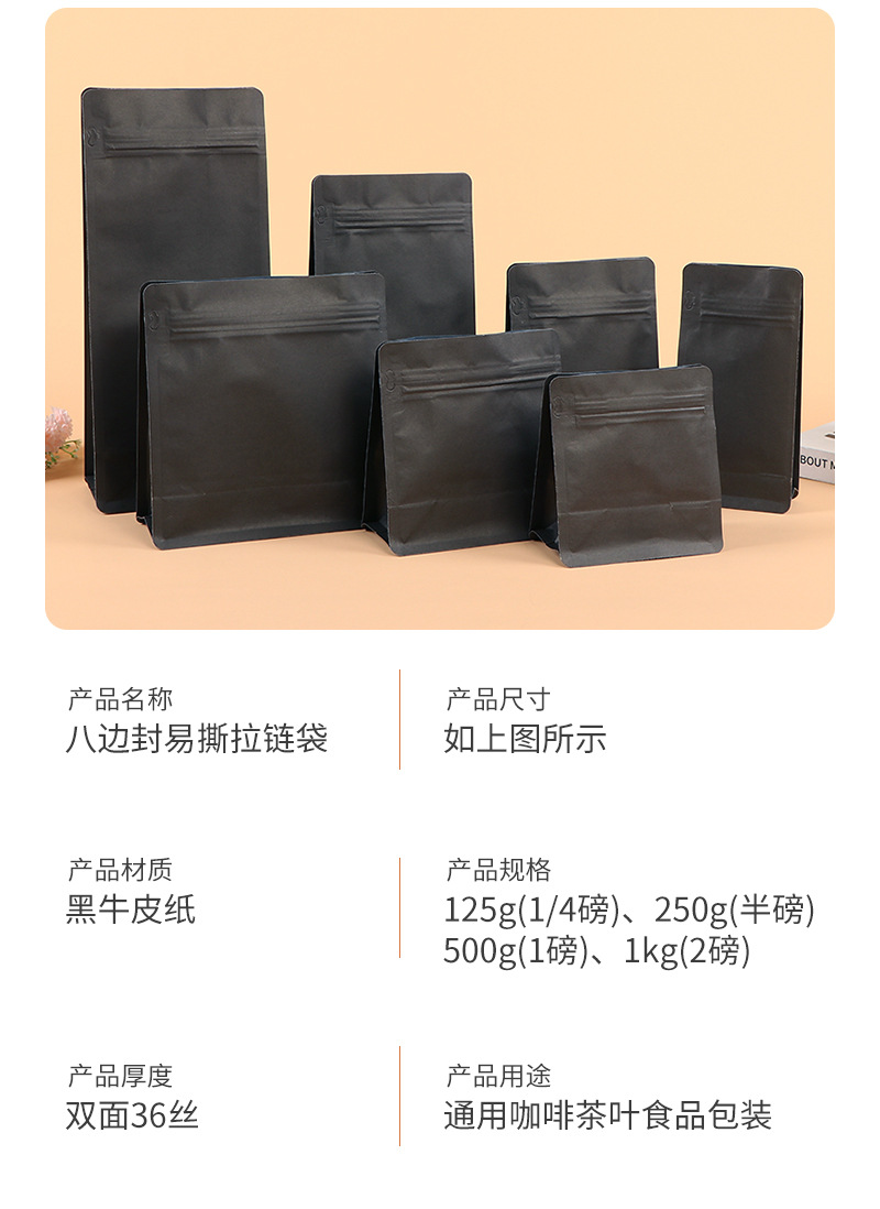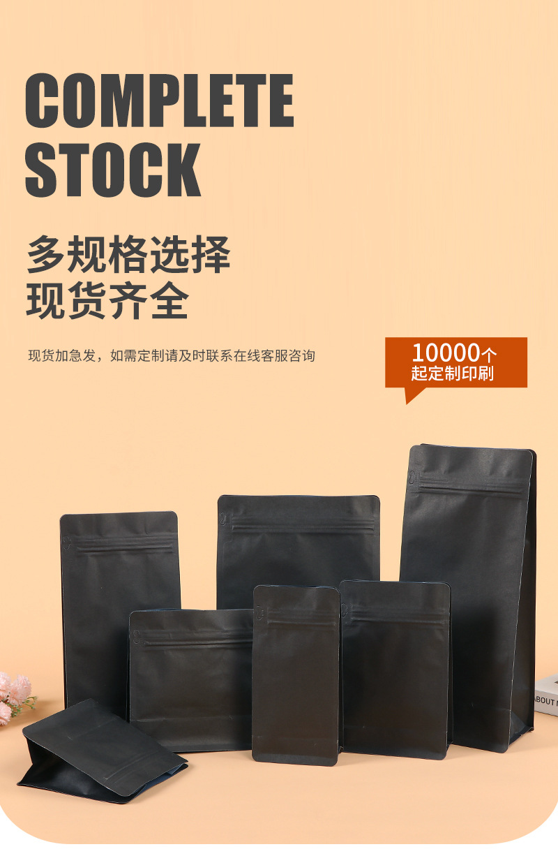 스팟 블랙 크래프트 종이 8 면 밀봉 된 커피 포장 백 밀봉 된 알루미늄 호일 백 습기 방지 자체 씰링 백 도매스토어 가기