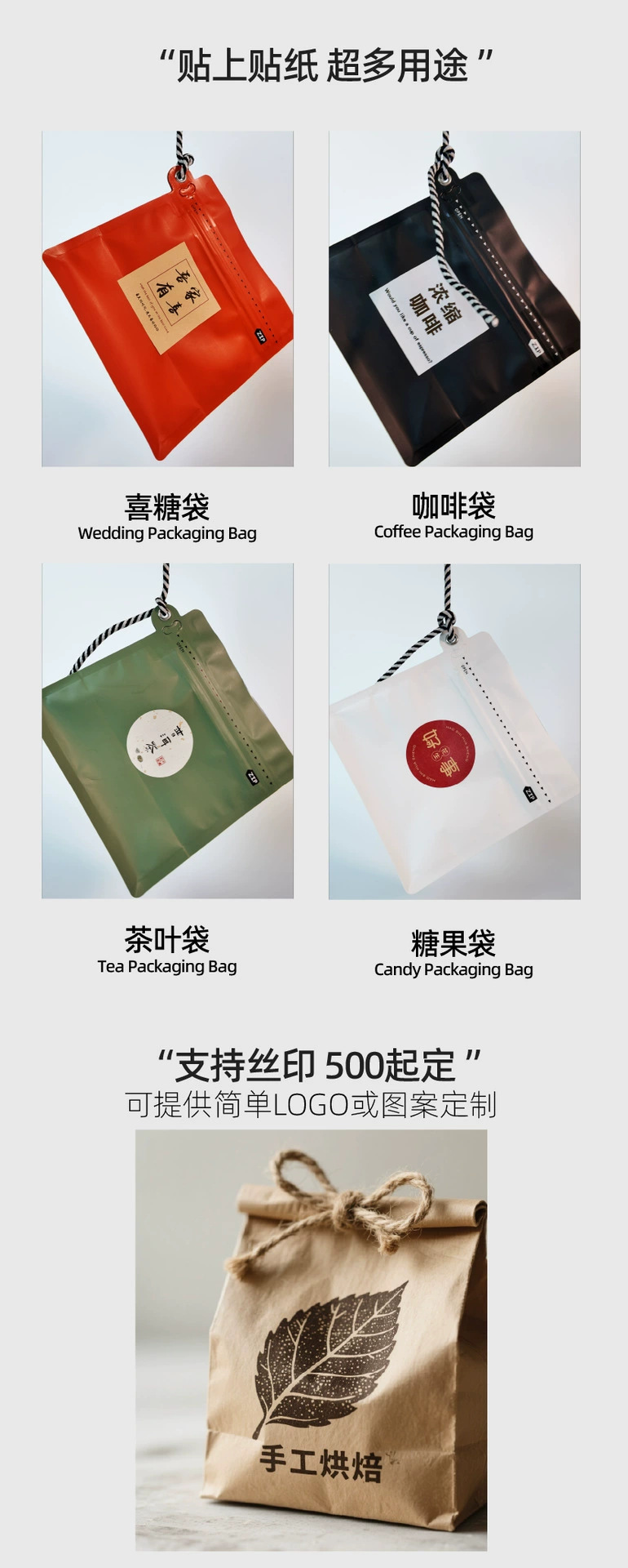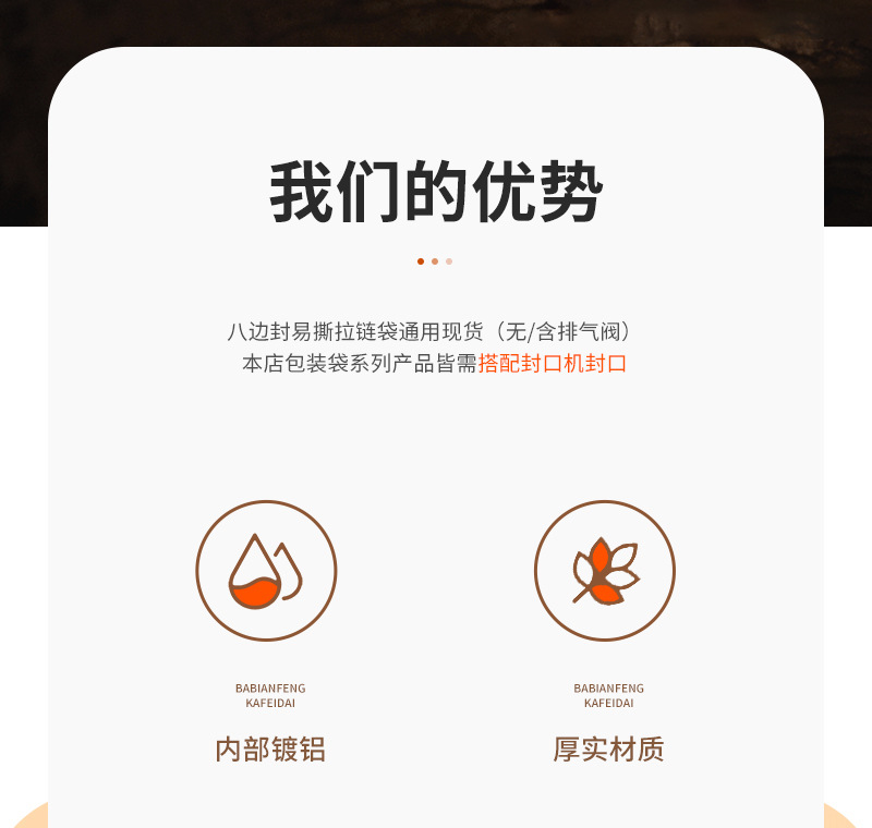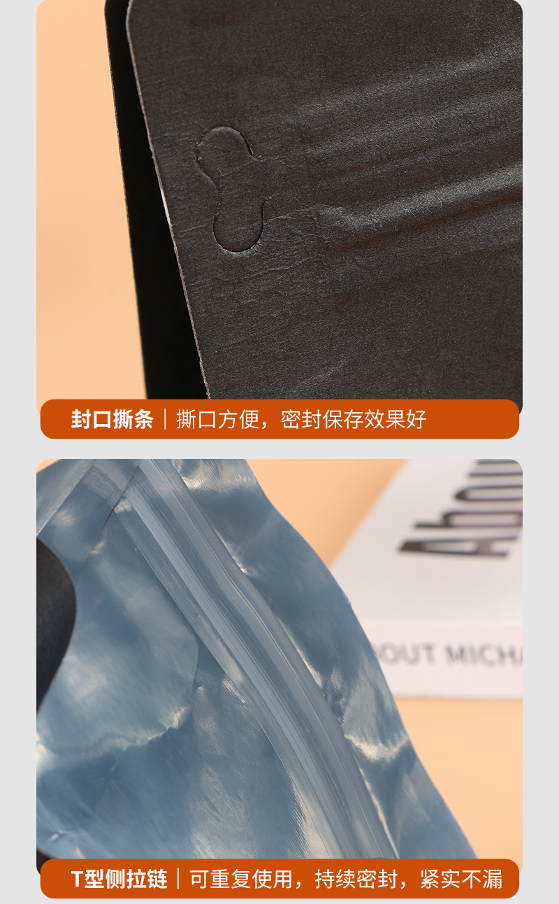 스팟 블랙 크래프트 종이 8 면 밀봉 된 커피 포장 백 밀봉 된 알루미늄 호일 백 습기 방지 자체 씰링 백 도매