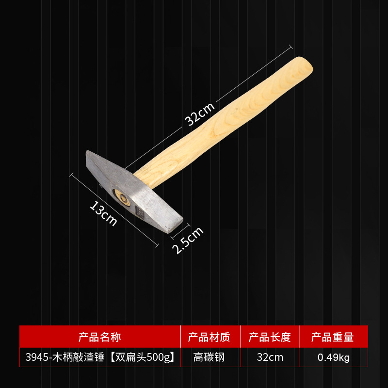 • 3944-나무 손잡이 슬래그 해머 팁 플랫 헤드 500g