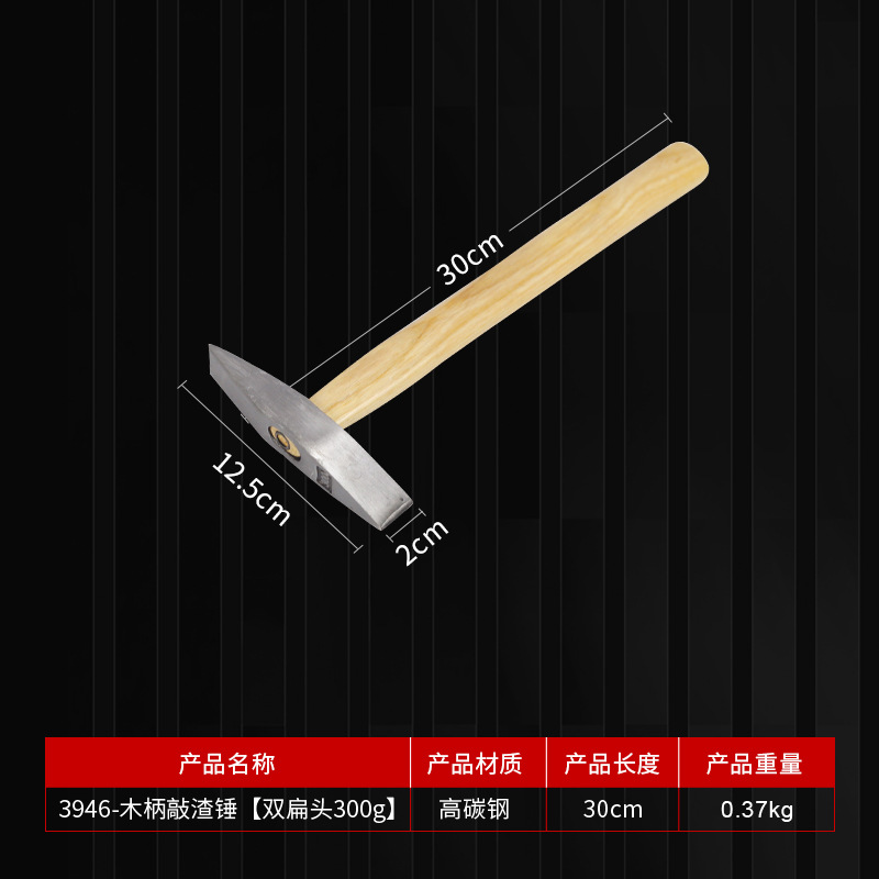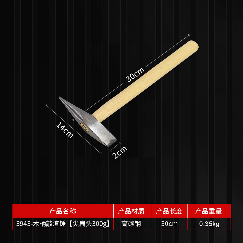 • 3943-나무 손잡이 슬래그 해머 팁 플랫 헤드 300g