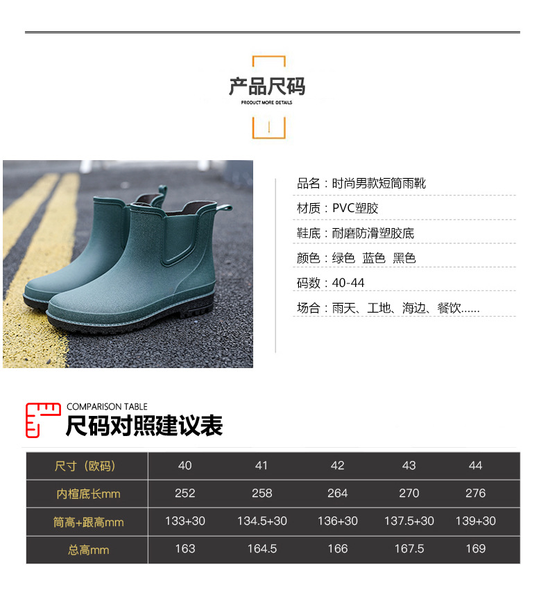 짧은 튜브 워터 슈즈 남성용 레인 슈즈 사계절 패션 내마모성 미끄럼 방지 레인 부츠 주방 작업 낚시 세차 신발 도매