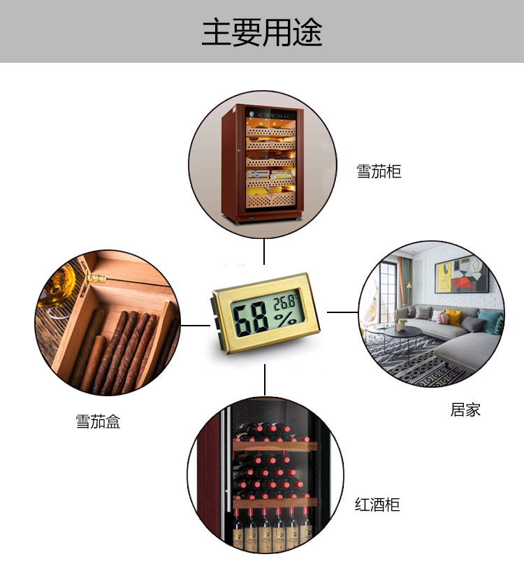 - 雪茄柜湿度计:适用于雪茄柜或露天储存,确保雪茄的湿度保持稳定。