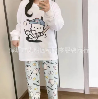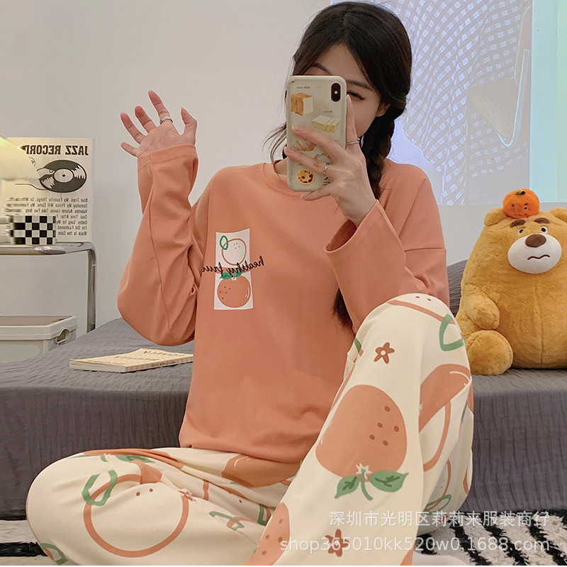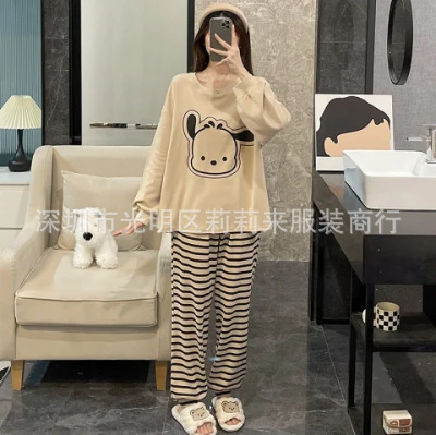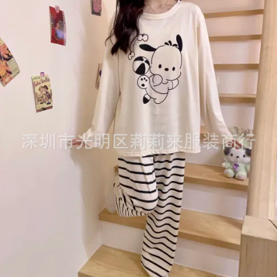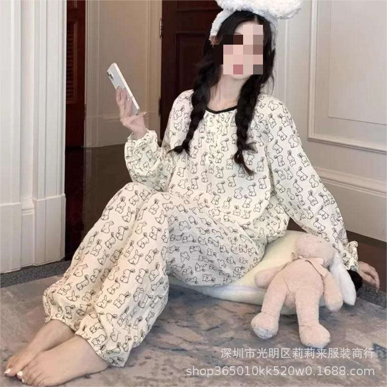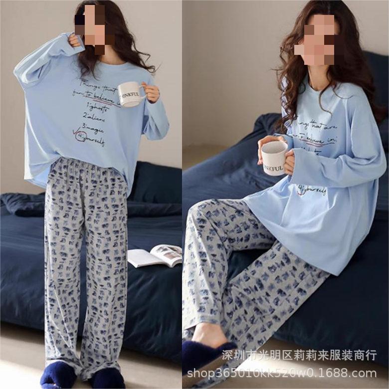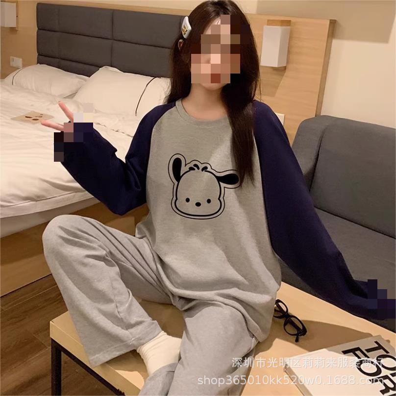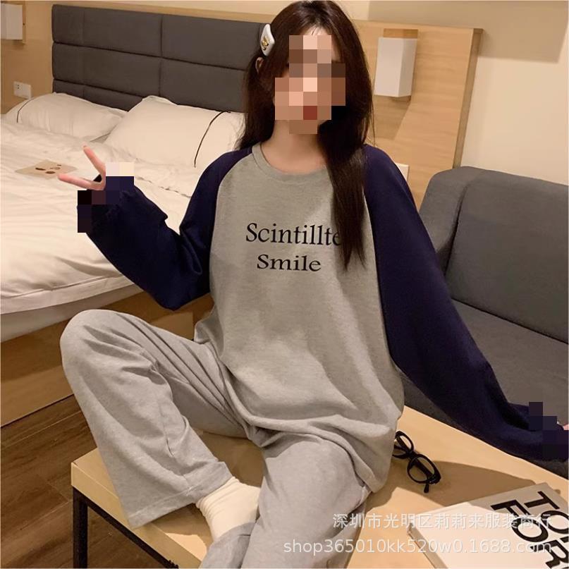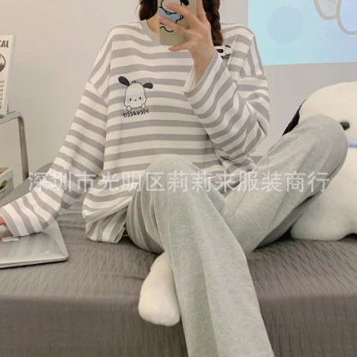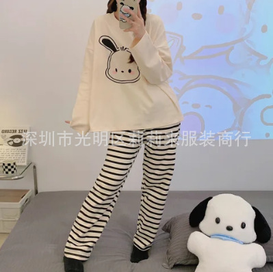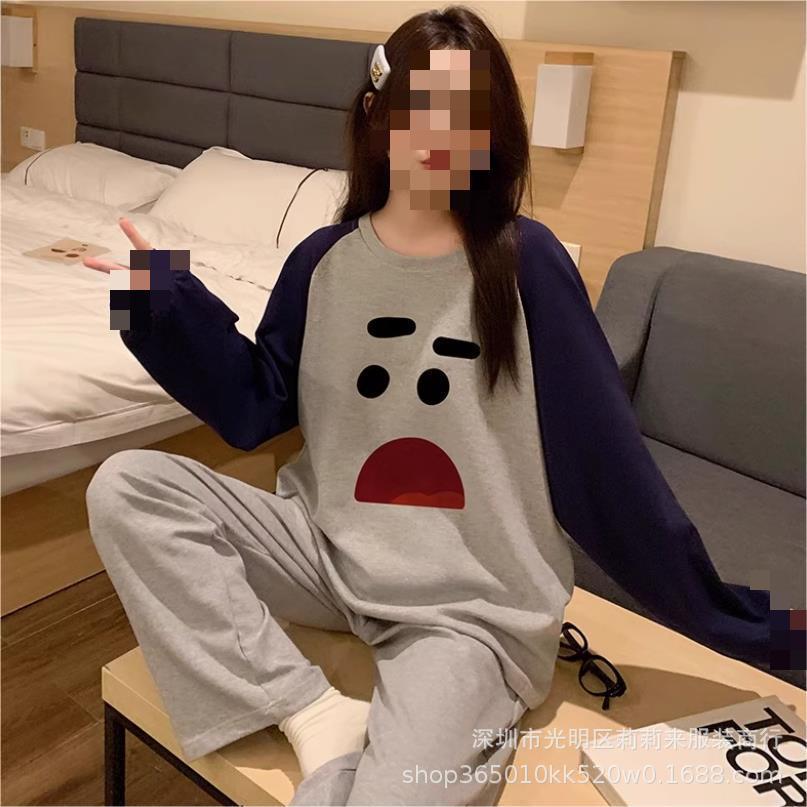 제조 업체 도매 봄과 가을 캐주얼 긴팔 만화 잠옷 여성 유행 한국 잠옷 소녀를위한 가정 의류 세트스토어 가기