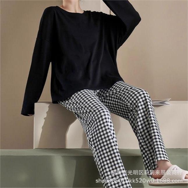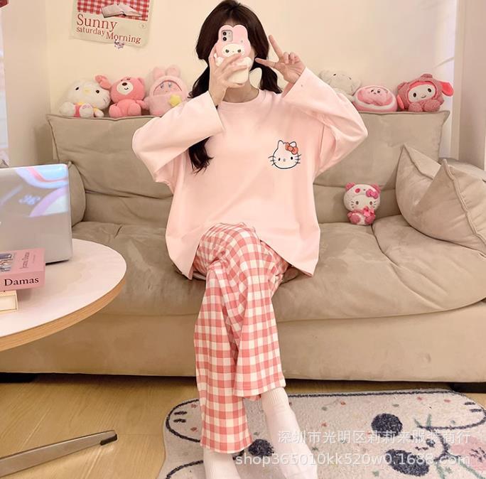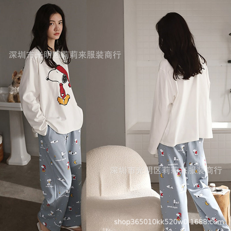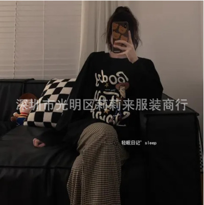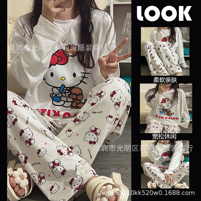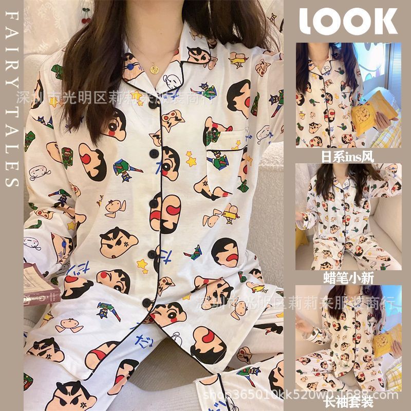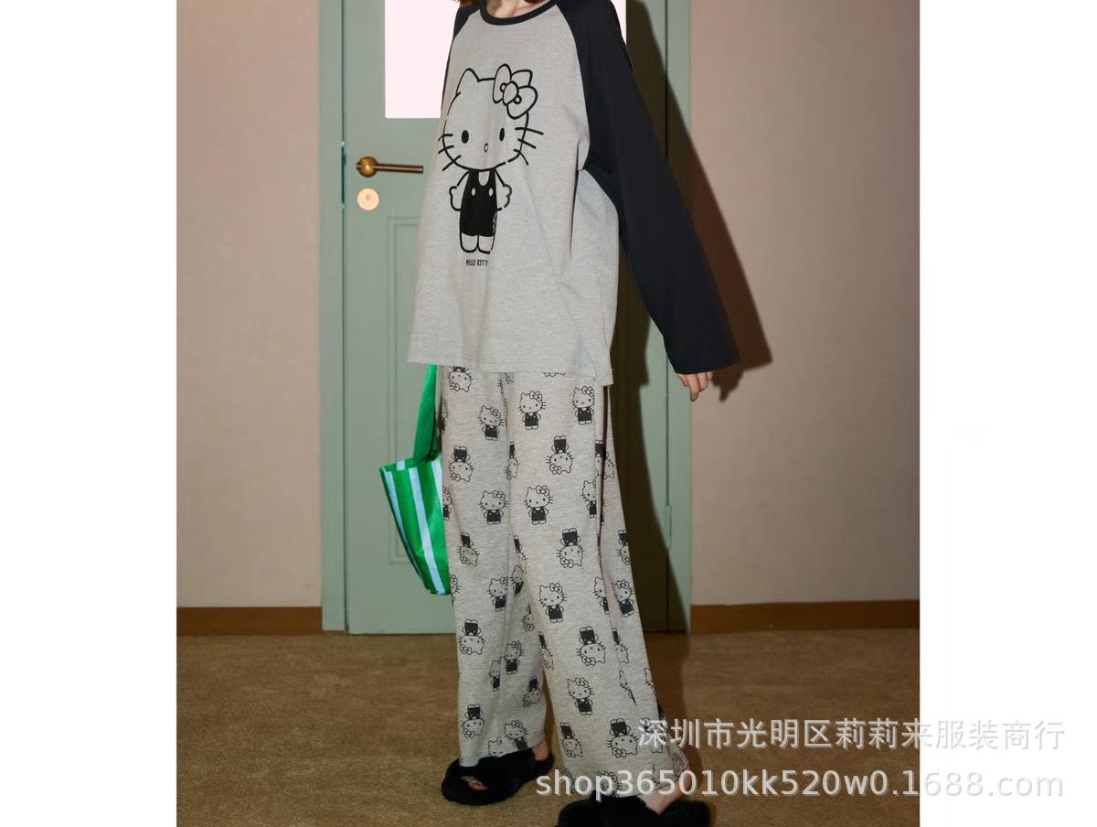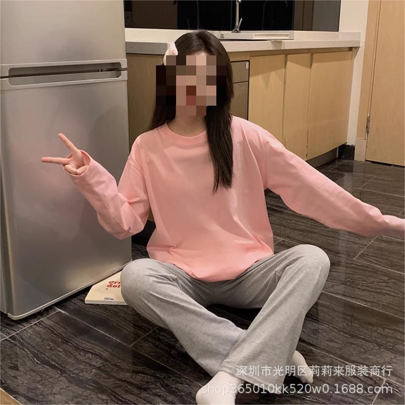 제조 업체 도매 봄과 가을 캐주얼 긴팔 만화 잠옷 여성 유행 한국 잠옷 소녀를위한 가정 의류 세트스토어 가기