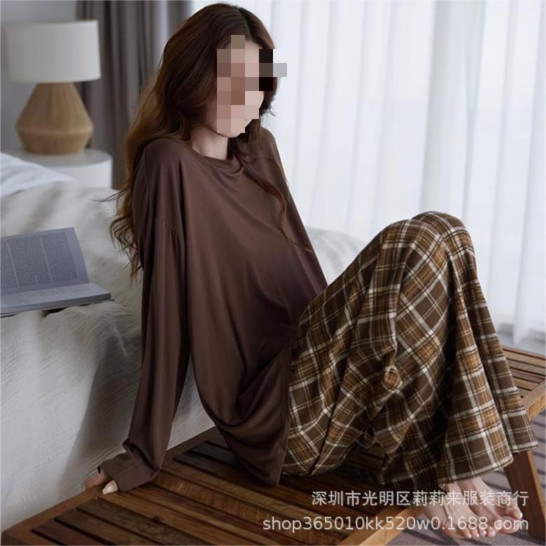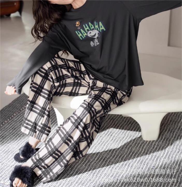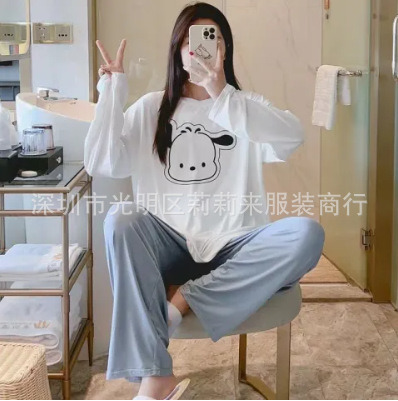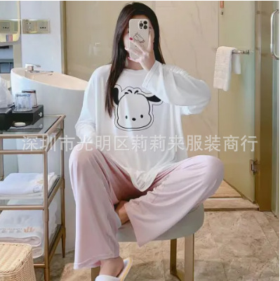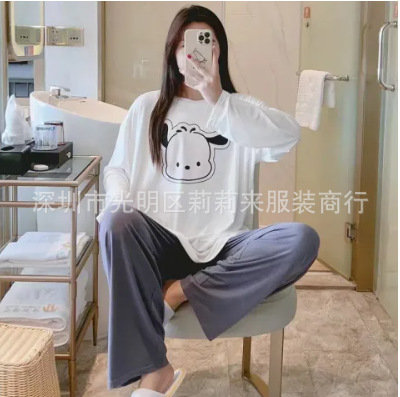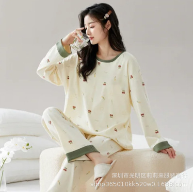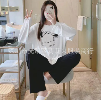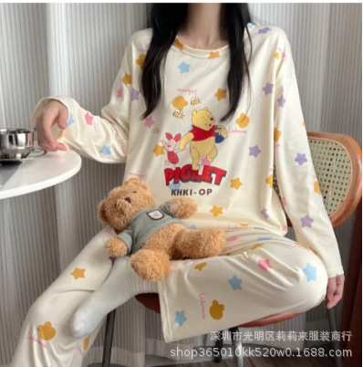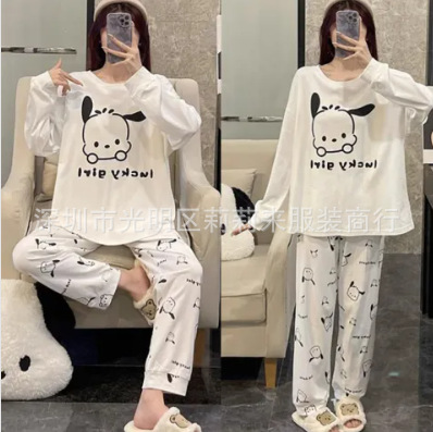 제조 업체 도매 봄과 가을 캐주얼 긴팔 만화 잠옷 여성 유행 한국 잠옷 소녀를위한 가정 의류 세트
