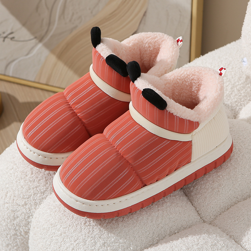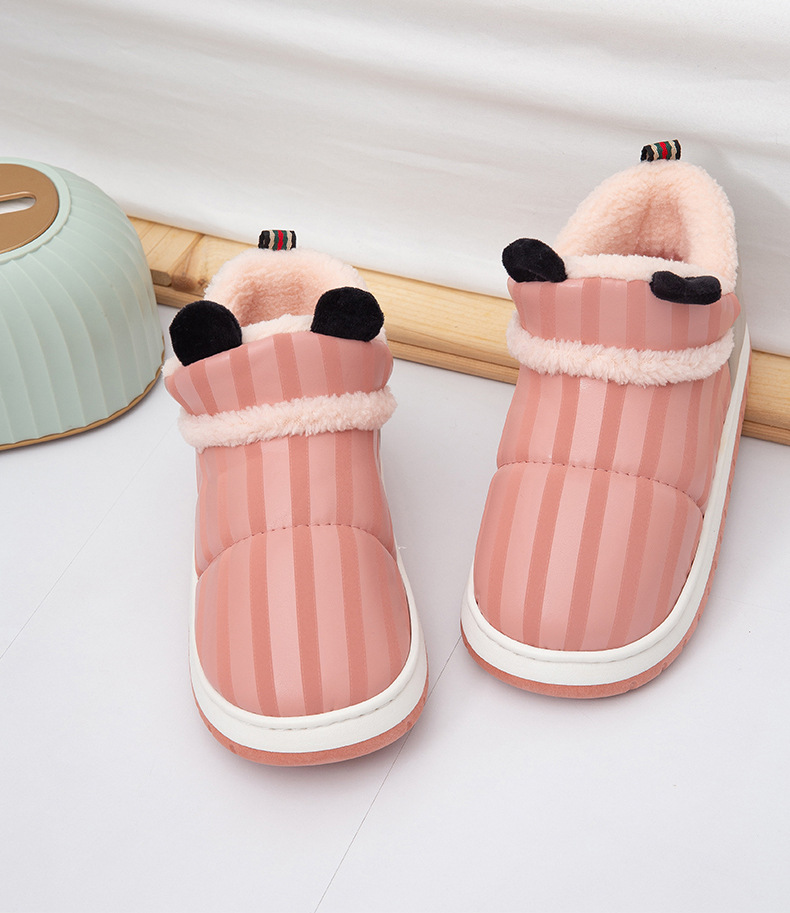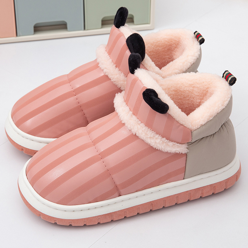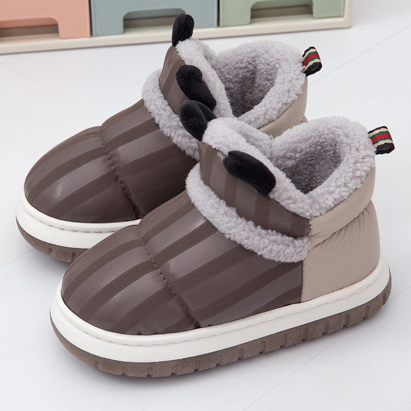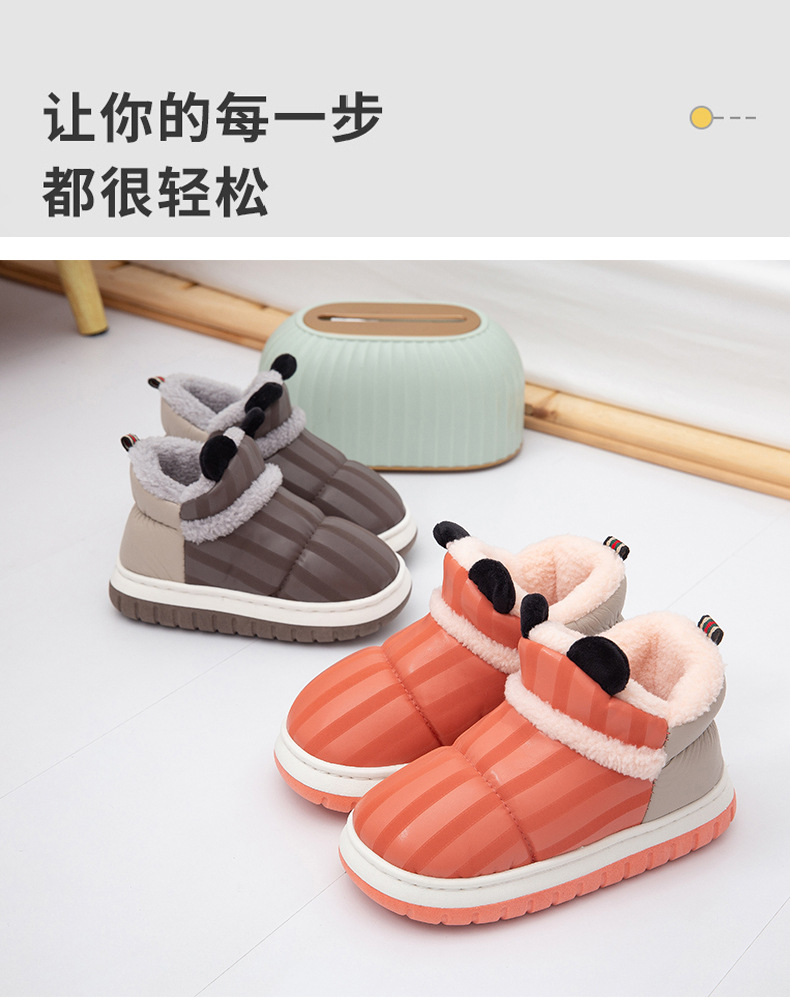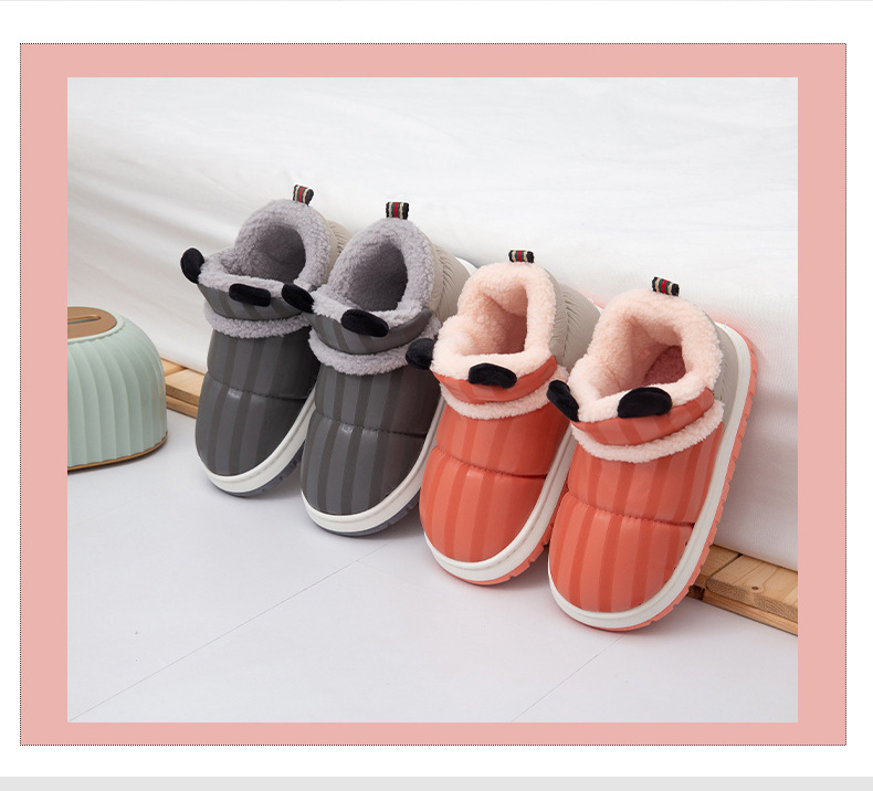 부모-어린이 하이탑 아동면 슬리퍼 소년과 소녀를위한 올 인클루시브 힐 겨울 신발 만화 아기 따뜻한 양모 면화 신발 겨울