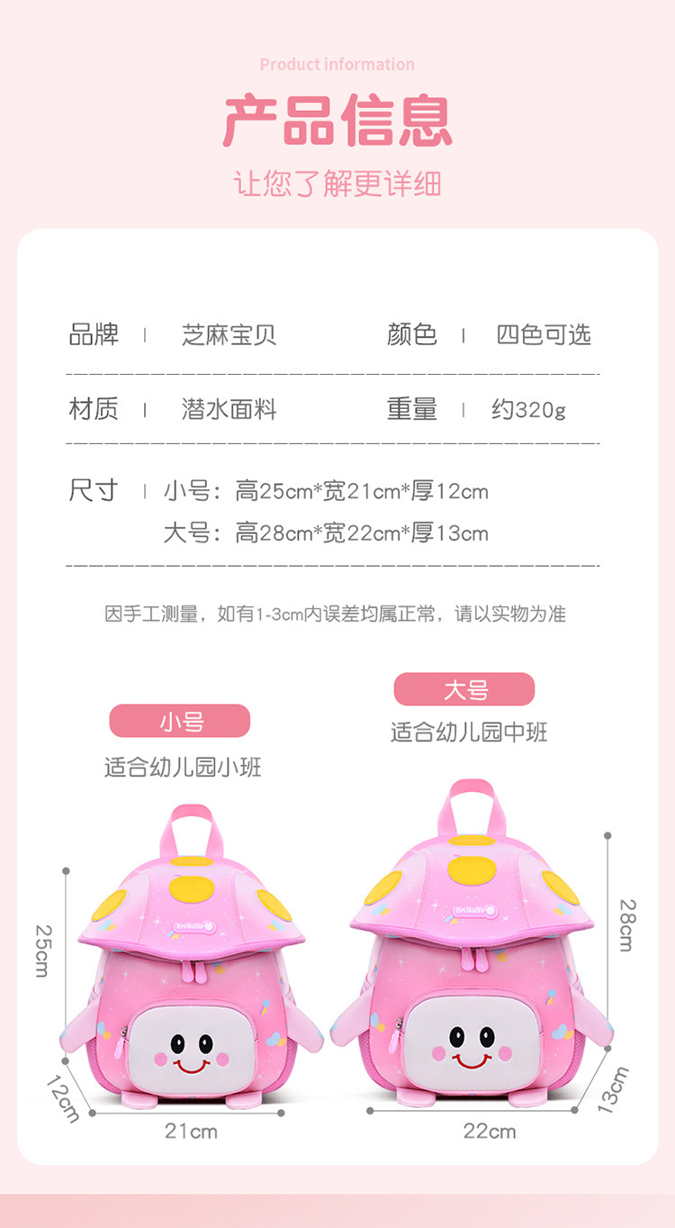 새로운 유치원 학교 가방 남자의 귀여운 버섯 가방 다이빙 재료 어린이 학교 가방 여아 배낭 미니 작은 가방