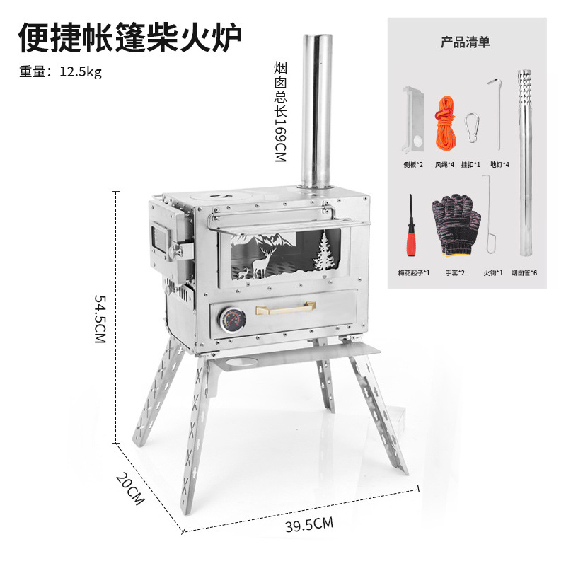 야외 캠핑 텐트 유리 스토브 캠핑 숯 굽기 화재 스테인레스 스틸 휴대용 접이식 분할 난방 오븐