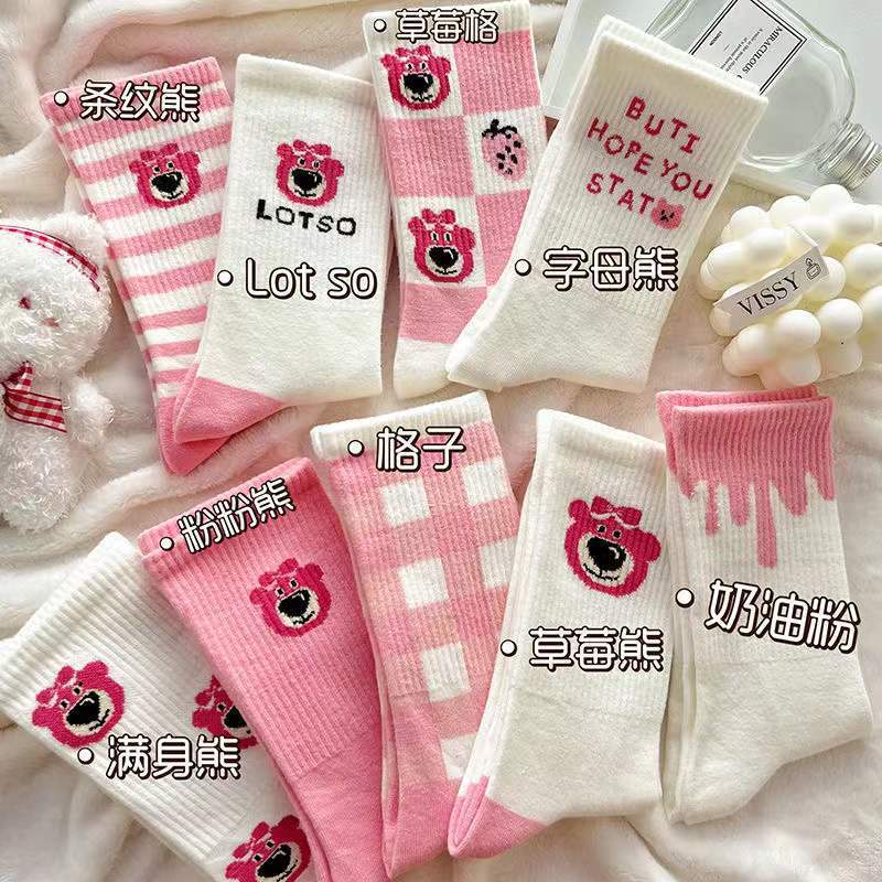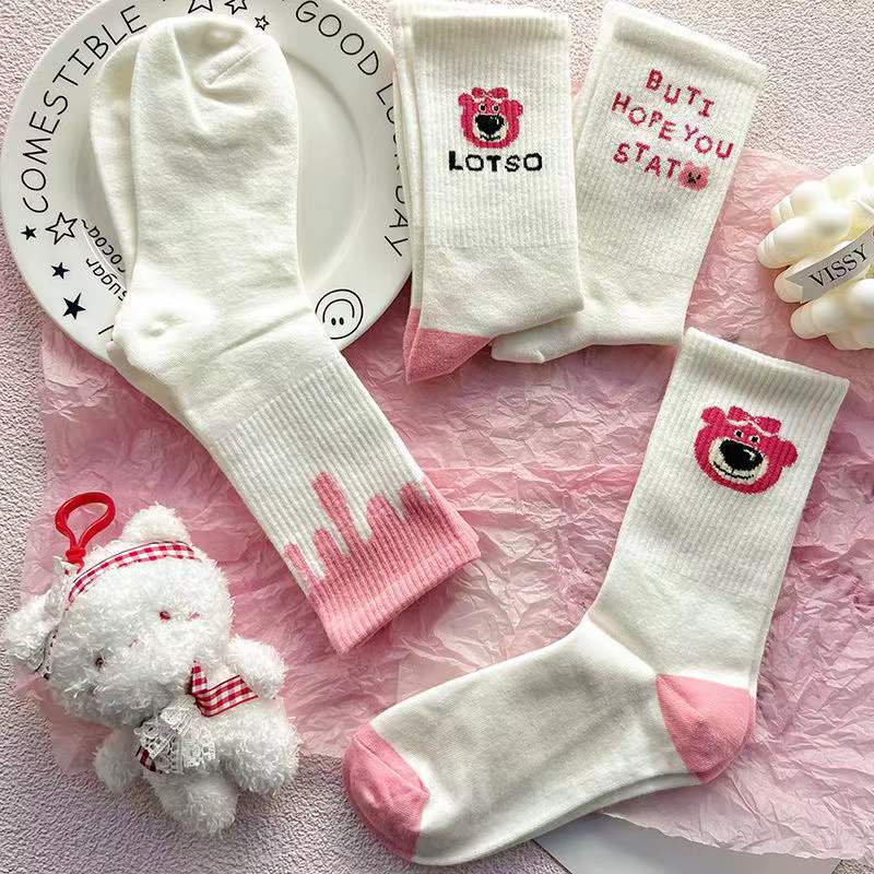핑크 양말 여성용 한국식 미드 배럴 인 트렌디 한 모든 경기 대학 스타일 귀여운 일본식 만화 가을과 겨울 학생 스타킹스토어 가기
