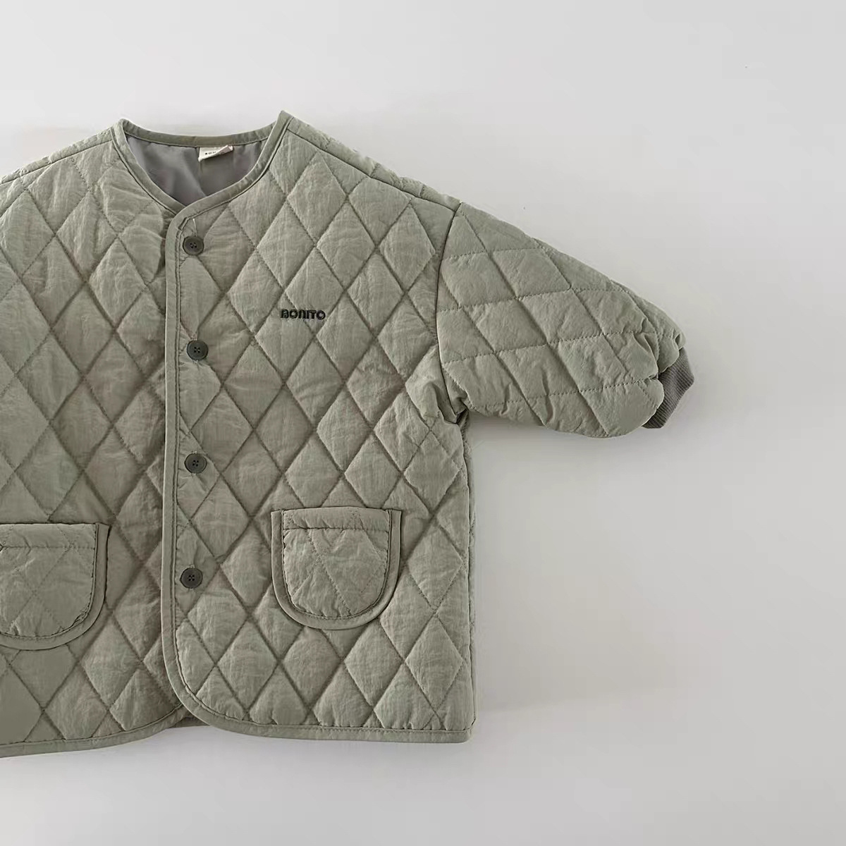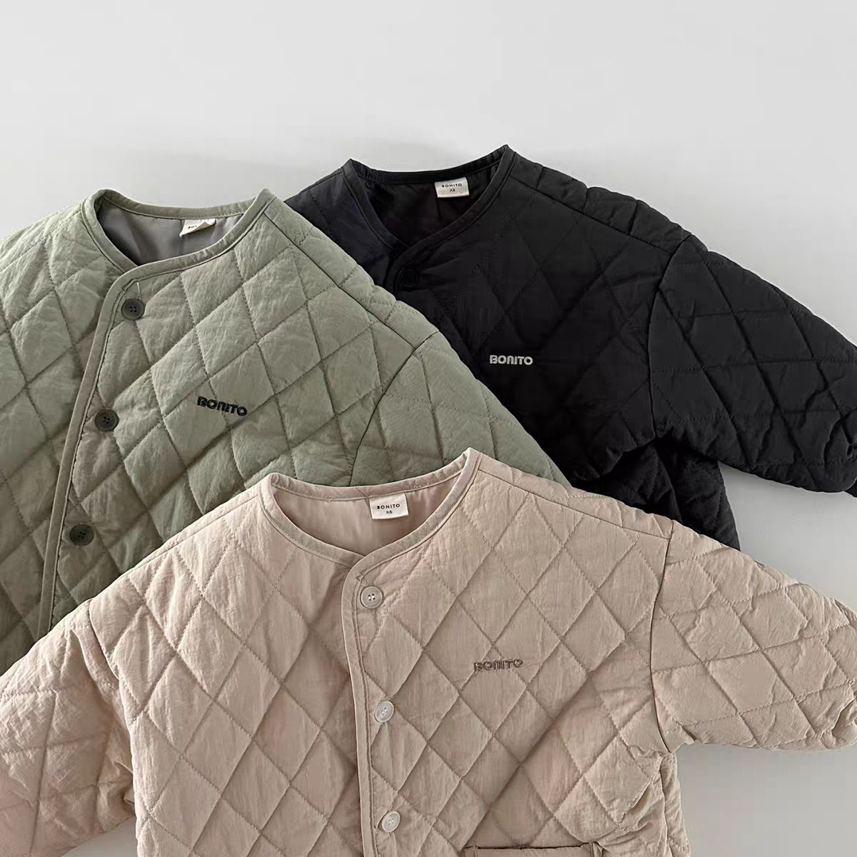 한국 스타일의 중간 길이 라운드 넥 퀼트 코튼 패딩 재킷 방풍 코트 소년과 소녀를위한 따뜻한 아기 마름모꼴 가을과 겨울 새 셔츠