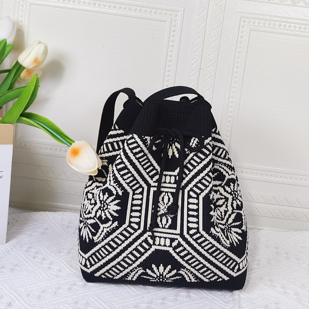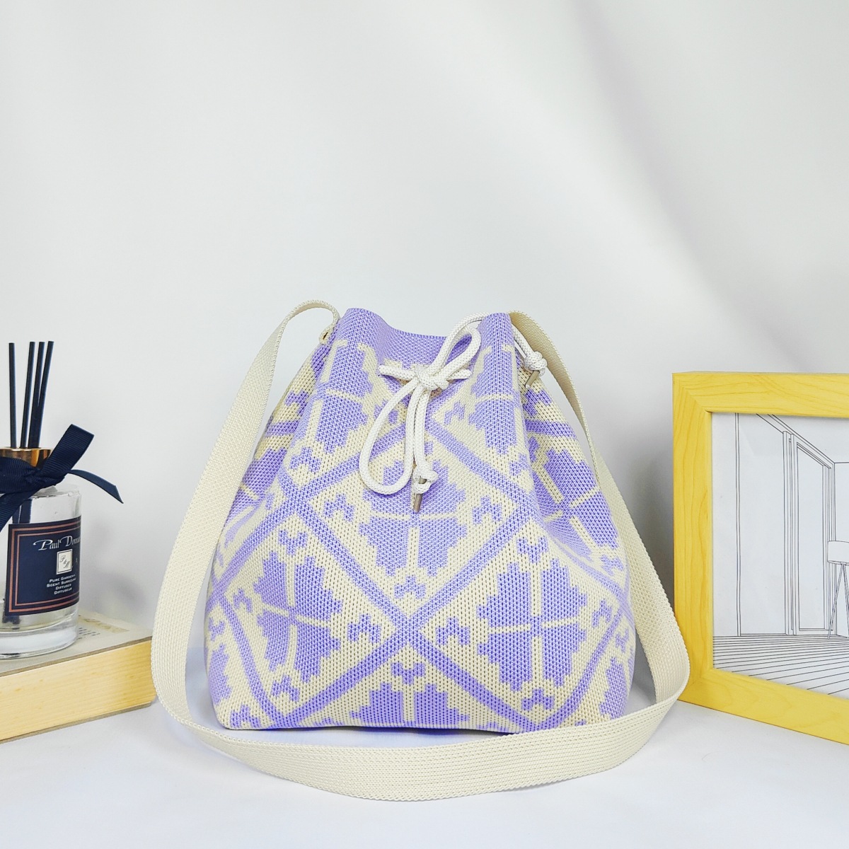 In 인터넷 연예인 핸드백 여성용 니트 울 버킷 백 일본과 한국 스타일 모든 매치 핸드 캐주얼 토트 백 도시락 가방