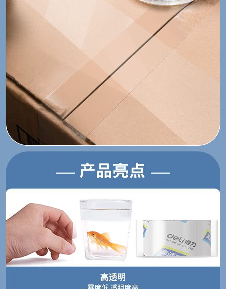 델리 30247 슈퍼마켓 밀봉 테이프 48mm * 60y * 50um (롤) (높은 투과성) 투명 포장 테이프