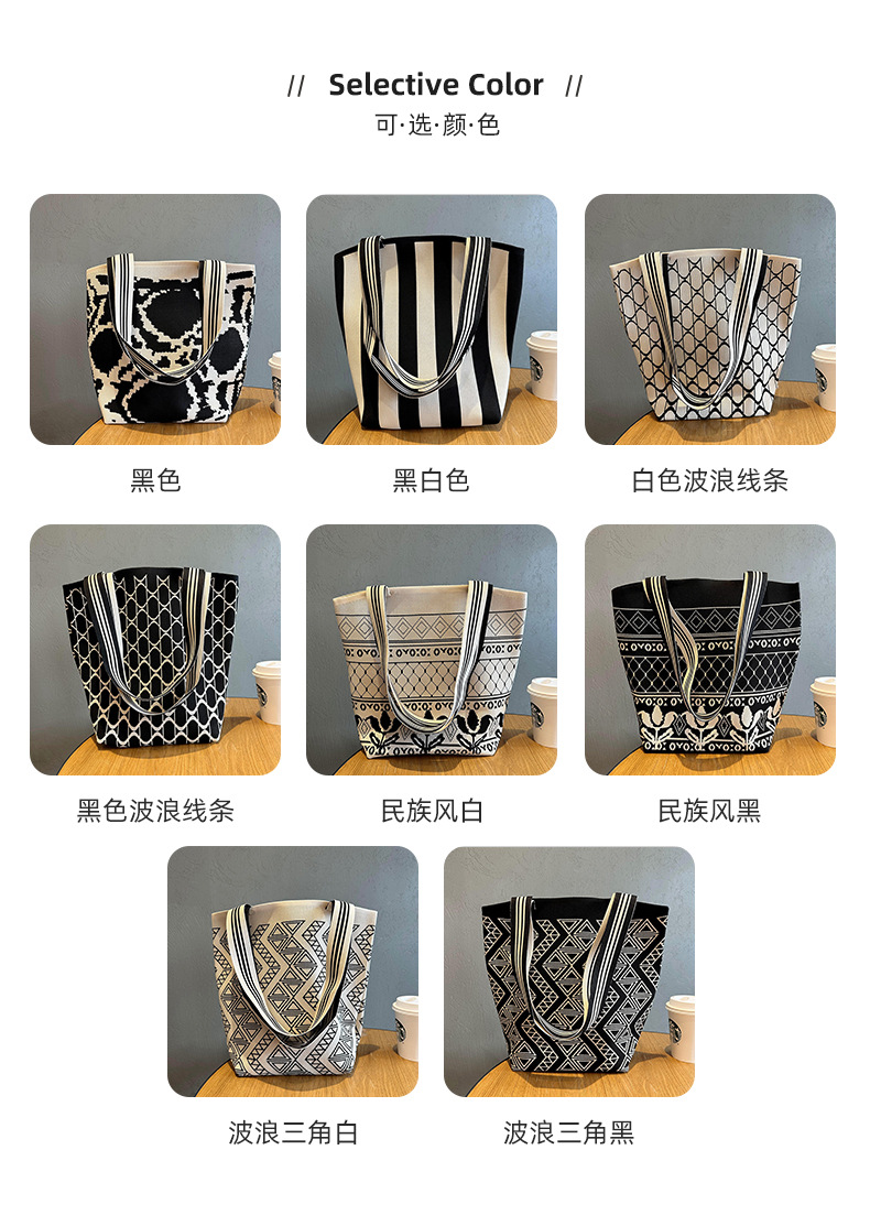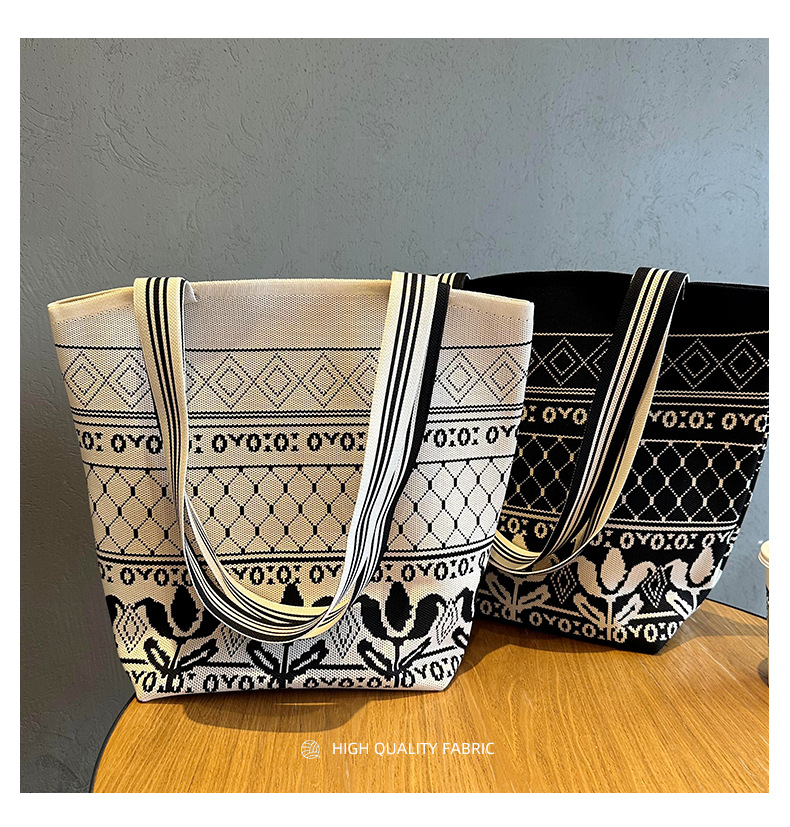새로운 기하학적 패턴 대용량 숄더백 여성용 고급 올매치 학생 캐주얼 니트 크로스바디 백 토트백스토어 가기