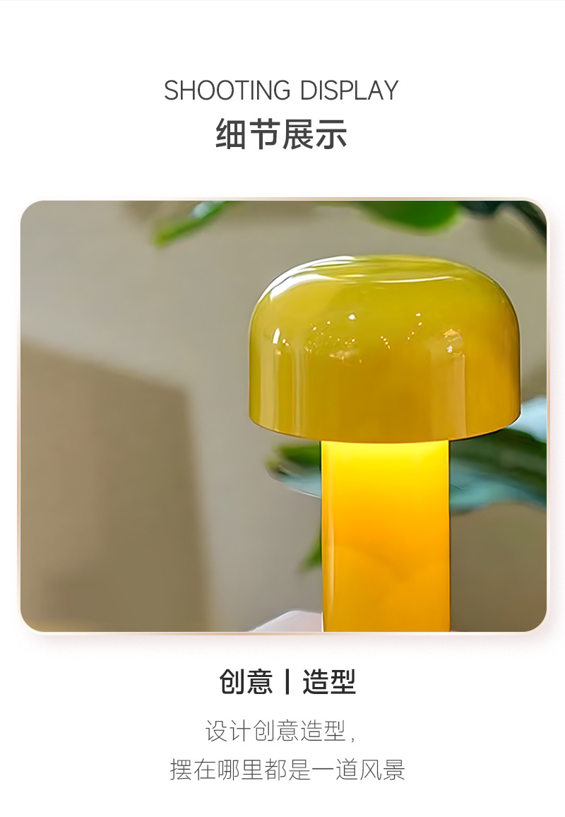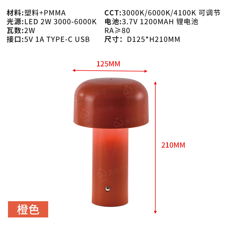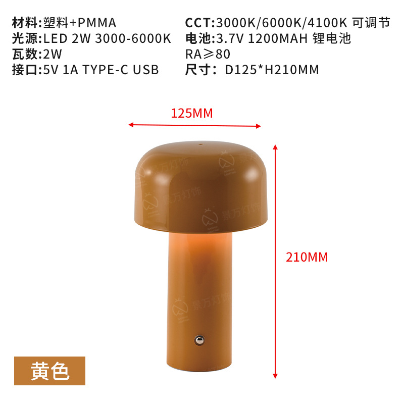 버섯 작은 테이블 램프 Type-C 충전 바 레스토랑 3 색 무한 디밍 그물 빨간색 크리 에이 티브 버섯 테이블 램프 도매스토어 가기