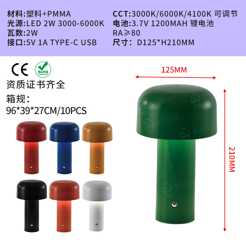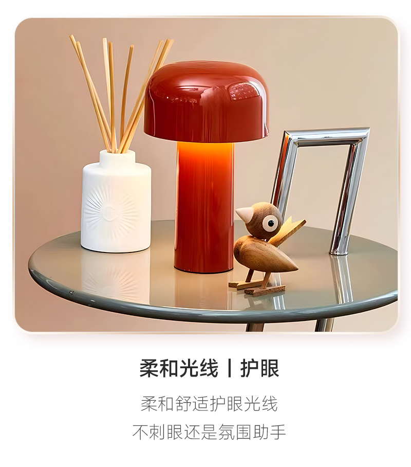 버섯 작은 테이블 램프 Type-C 충전 바 레스토랑 3 색 무한 디밍 그물 빨간색 크리 에이 티브 버섯 테이블 램프 도매