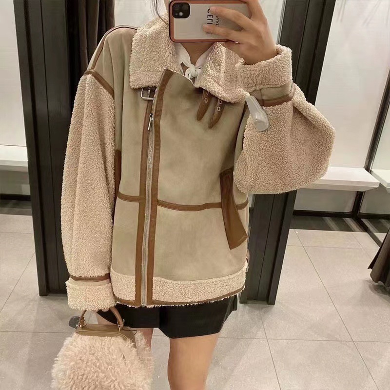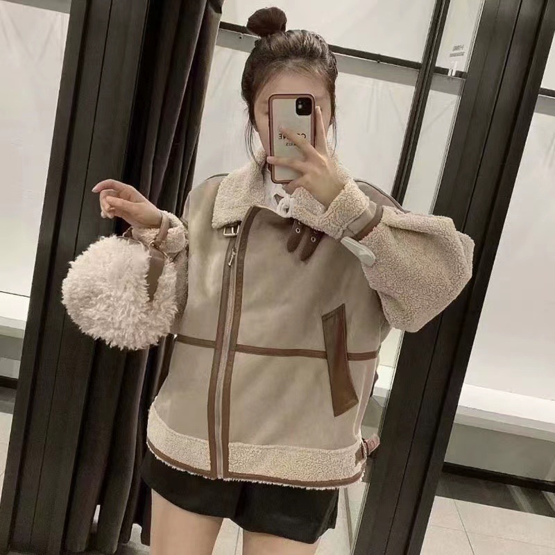 스티칭 모피 원 재킷 이른 봄 대외 무역 여성의 가을과 겨울 기질 폭발 마오 마오 오토바이 스타일 재킷스토어 가기