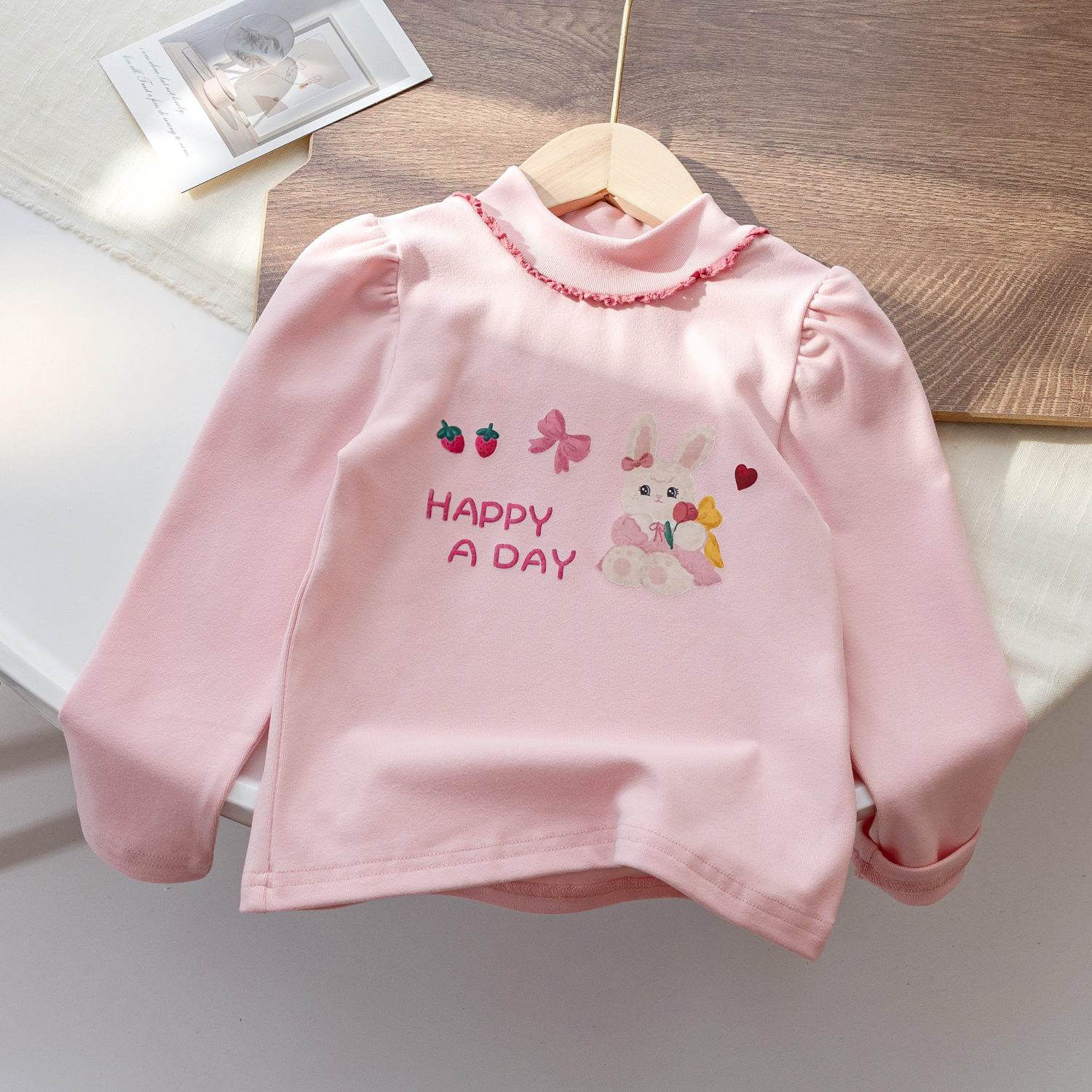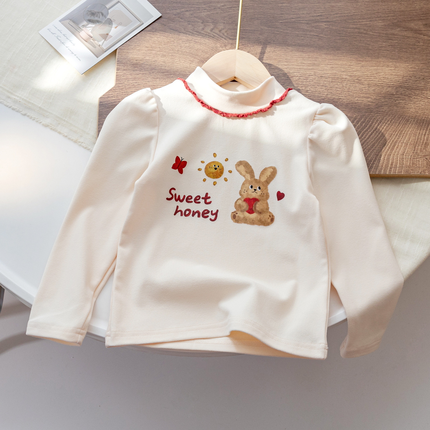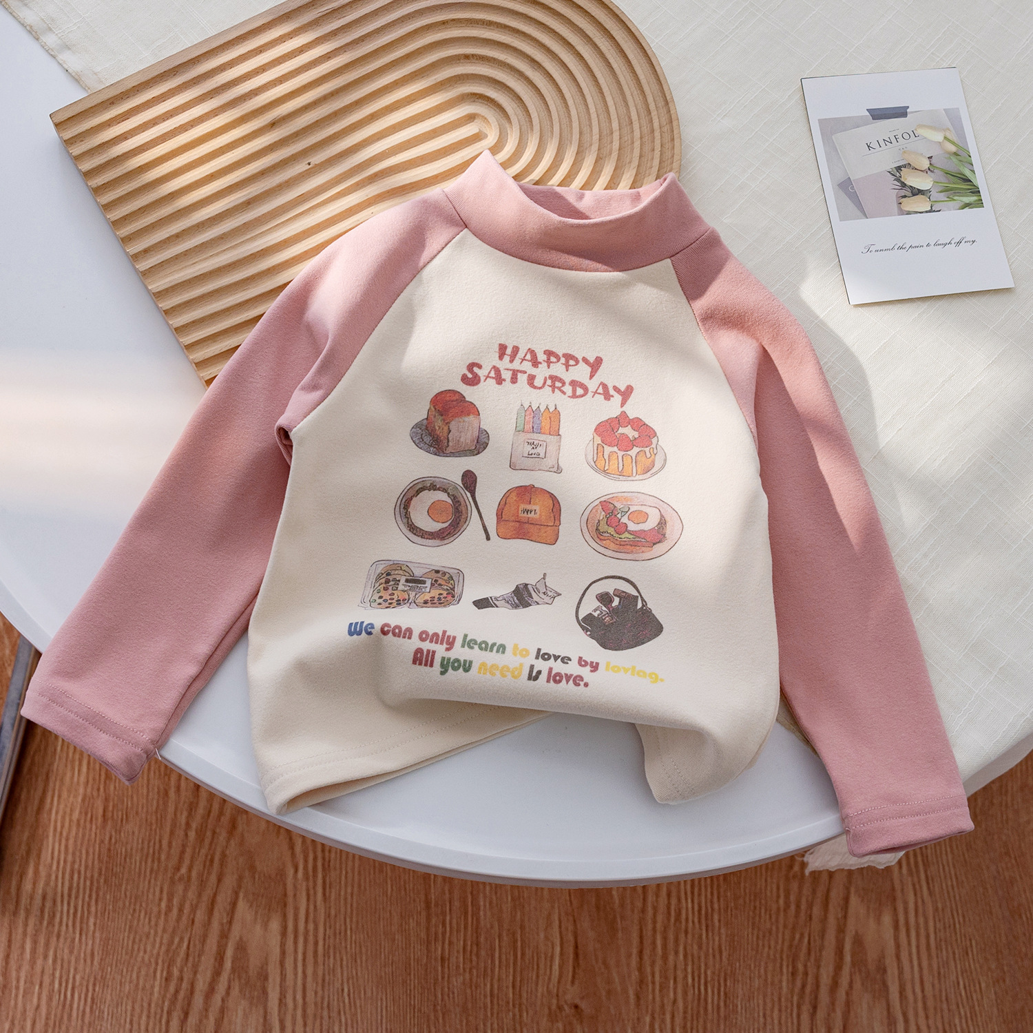 여자 가을과 겨울 새로운 스타일 탑 신선한 꽃 기모 레이스 베이스 셔츠 아기 소녀 겨울 서양 스타일 두꺼운 티셔츠