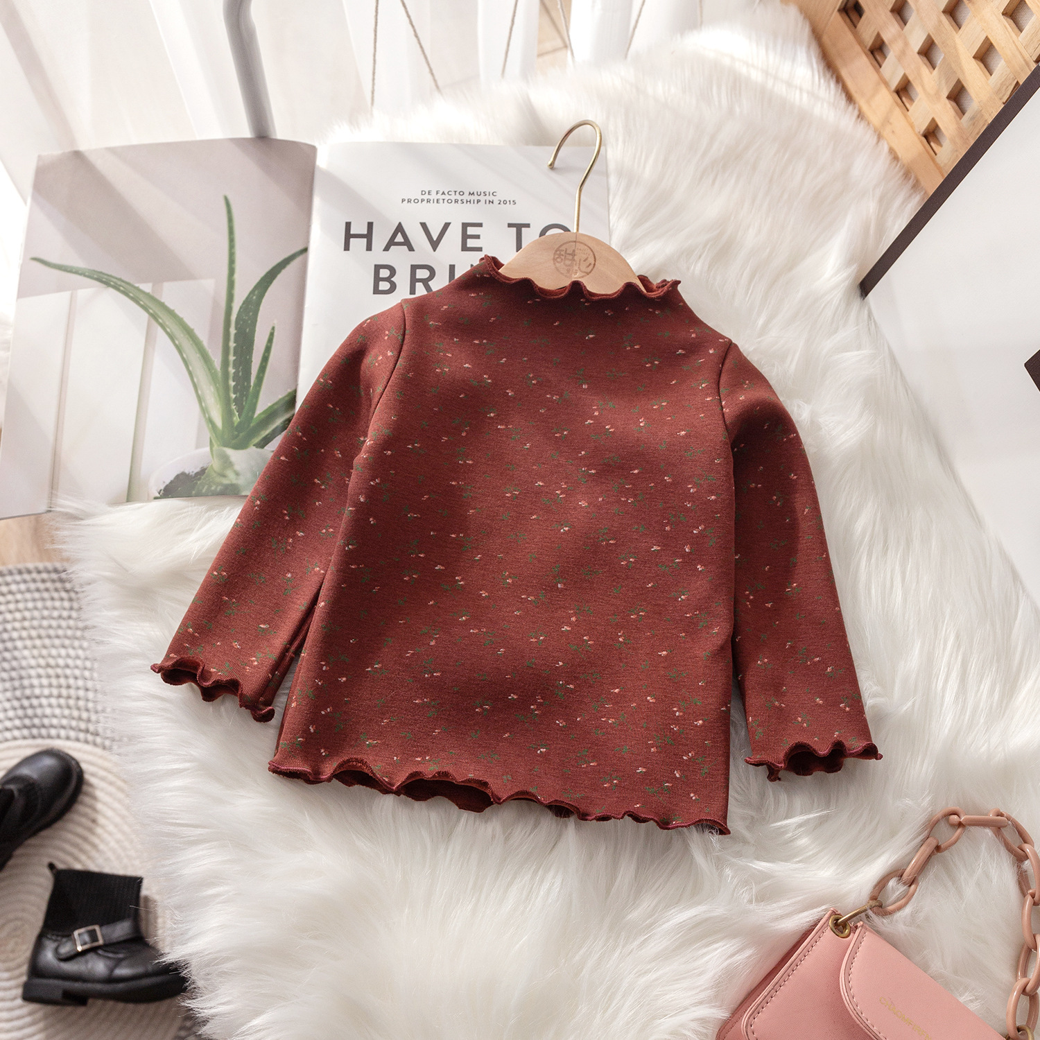 여자 가을과 겨울 새로운 스타일 탑 신선한 꽃 기모 레이스 베이스 셔츠 아기 소녀 겨울 서양 스타일 두꺼운 티셔츠스토어 가기