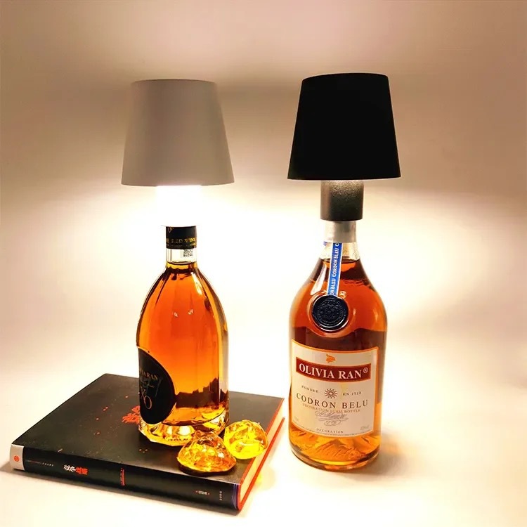 국경 간 와인 병 램프 탈착식 창조적 인 테이블 램프 USB 충전 바 클리어 바 와인 헤드 라이트 높은 발 테이블 램프스토어 가기