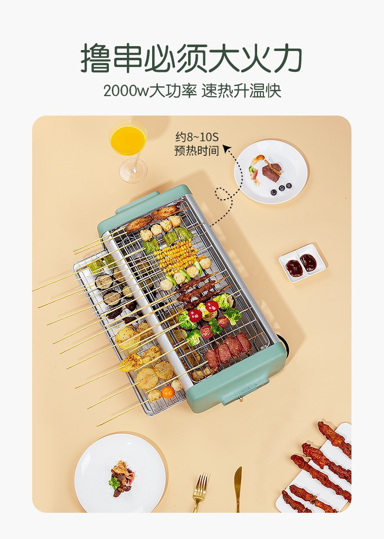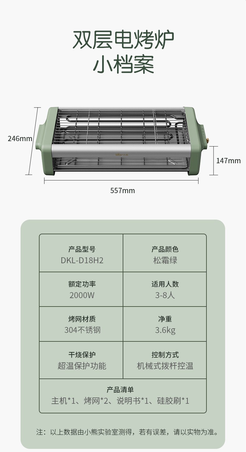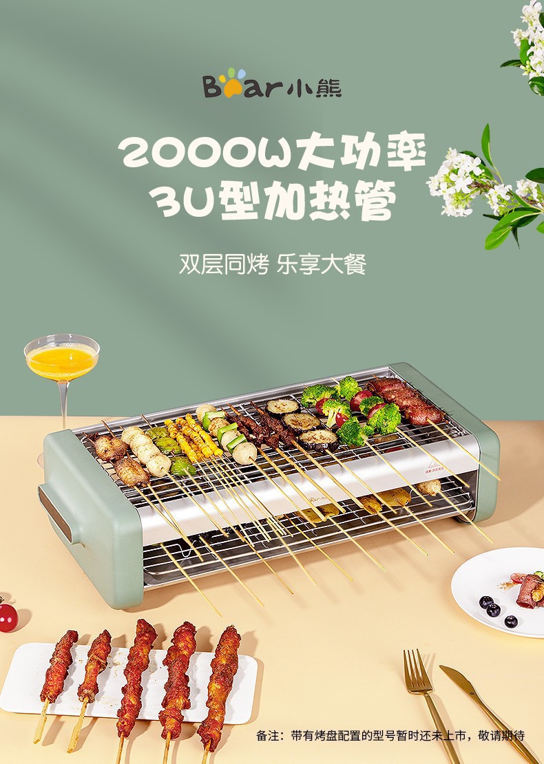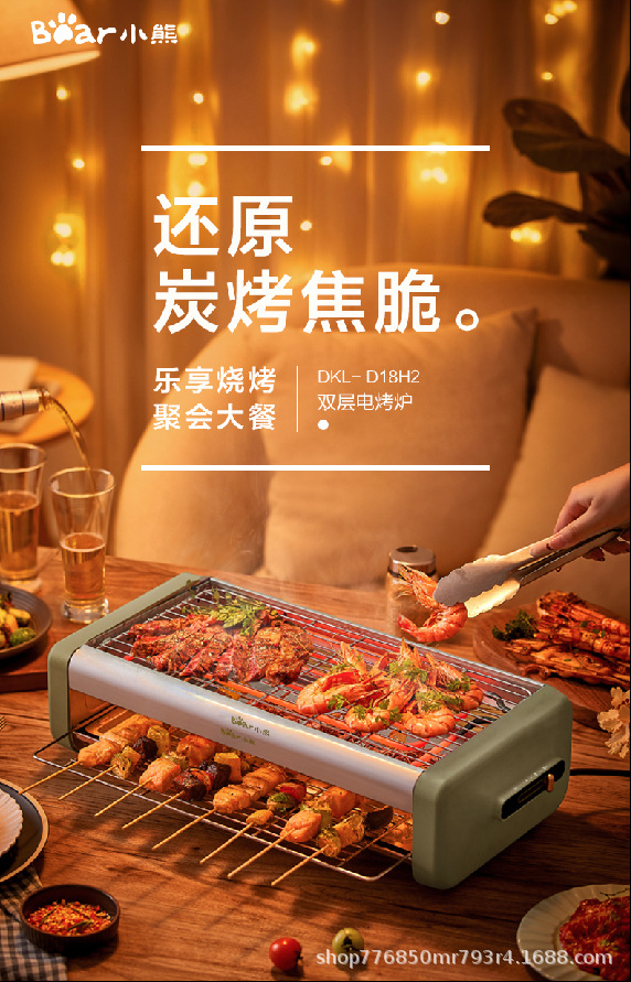 곰 전기 바베큐 스토브 랙 더블 레이어 비 스틱 금연 가정용 바베큐 팬 전기 베이킹 트레이 꼬치 기계 DKL-D18H2스토어 가기