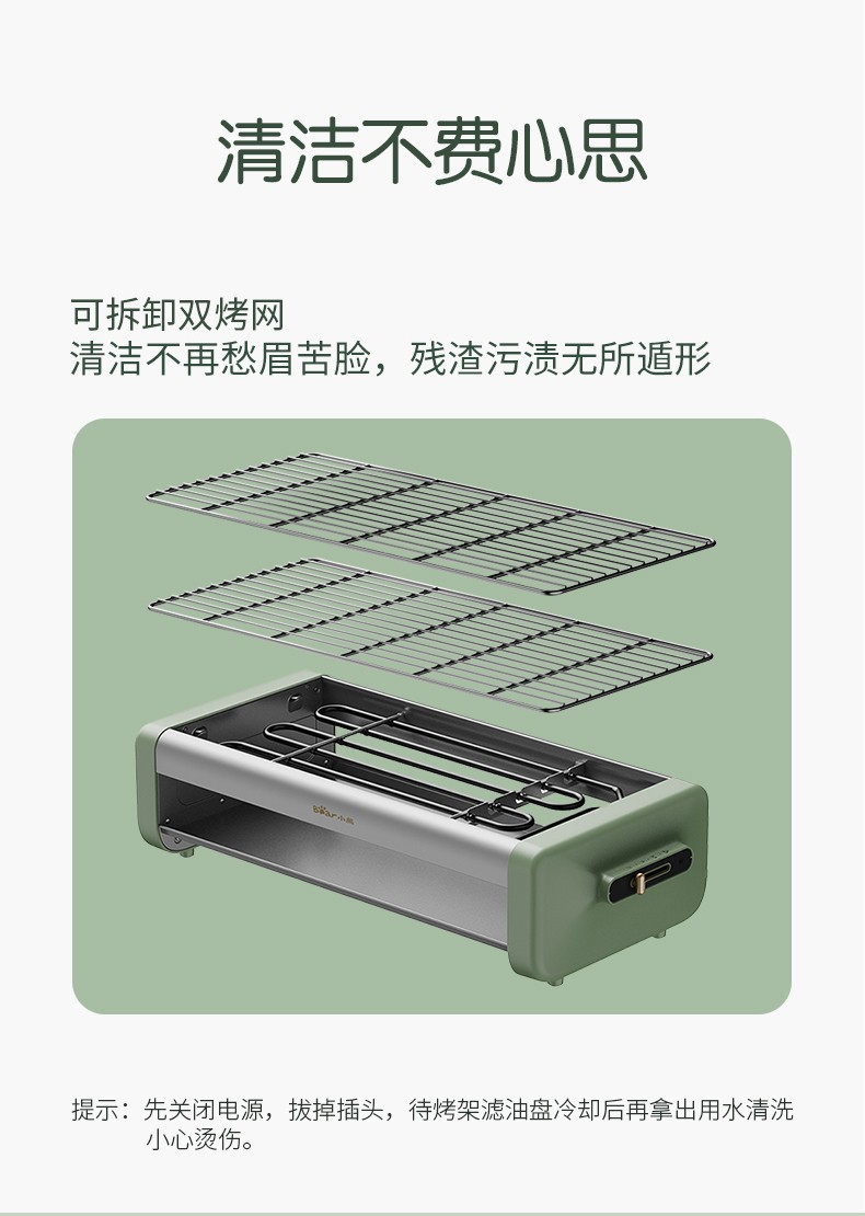 곰 전기 바베큐 스토브 랙 더블 레이어 비 스틱 금연 가정용 바베큐 팬 전기 베이킹 트레이 꼬치 기계 DKL-D18H2