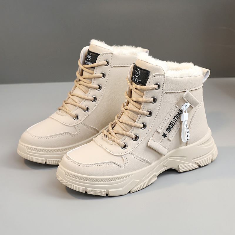 W2557 마틴 부츠 여성 패션 2023 겨울 새로운 영국 학생 두꺼운 단독 기모 면 신발 증가 거리 신발스토어 가기
