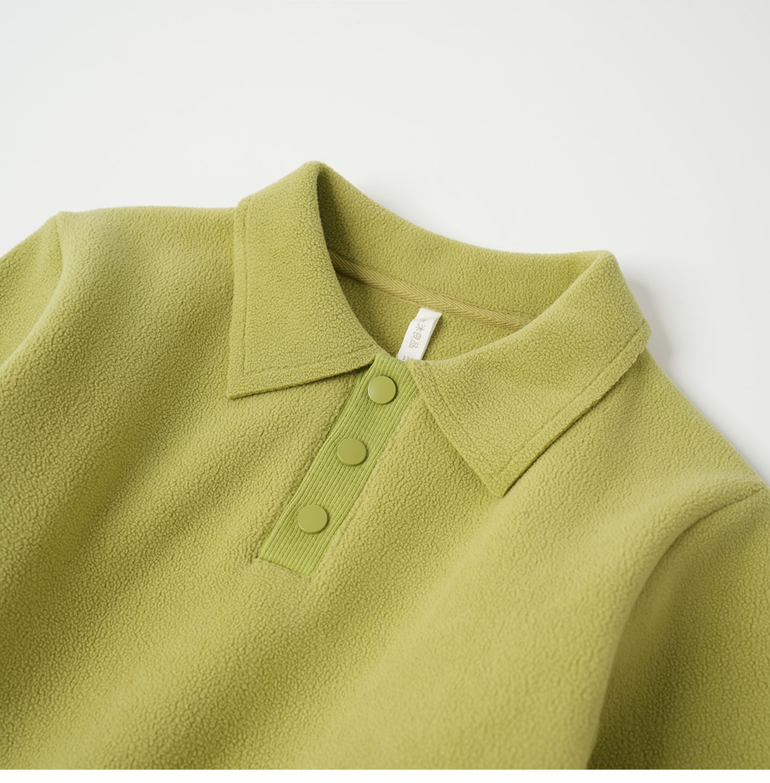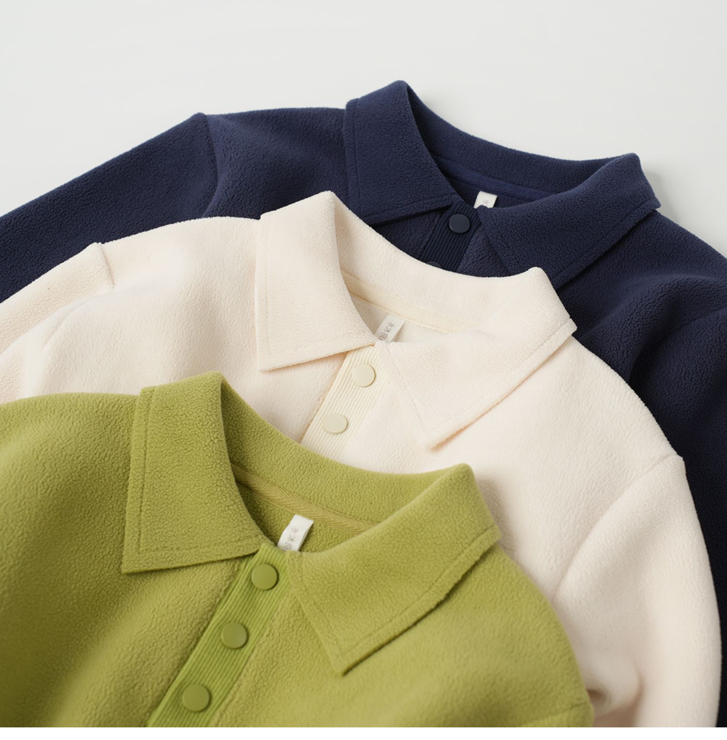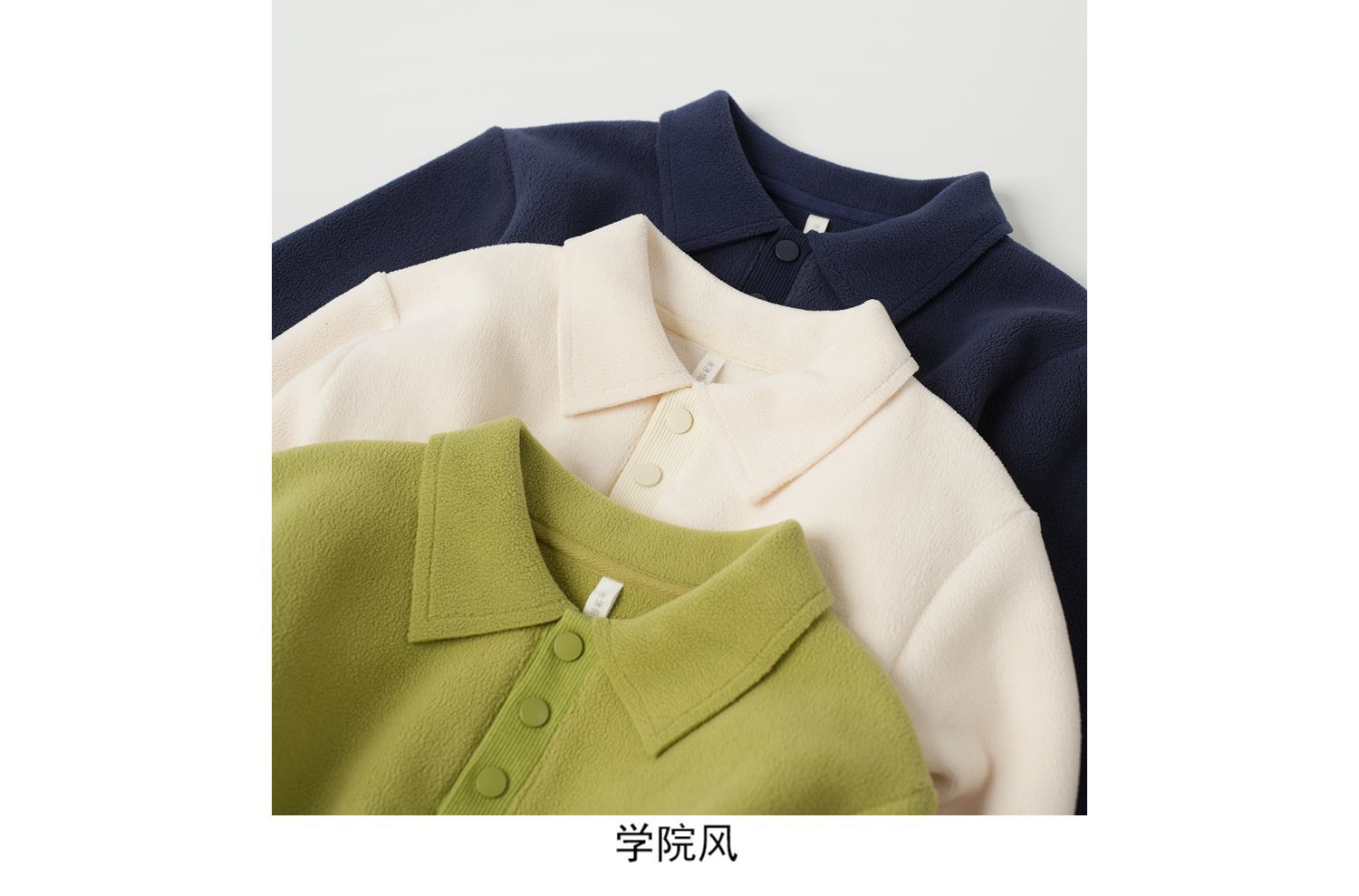 学院风的POLO领剪裁,领前半开扣,穿脱方便