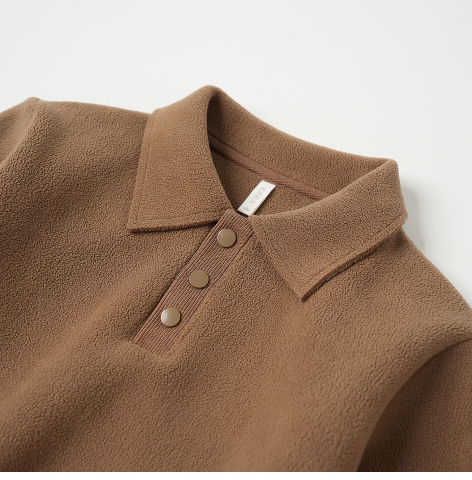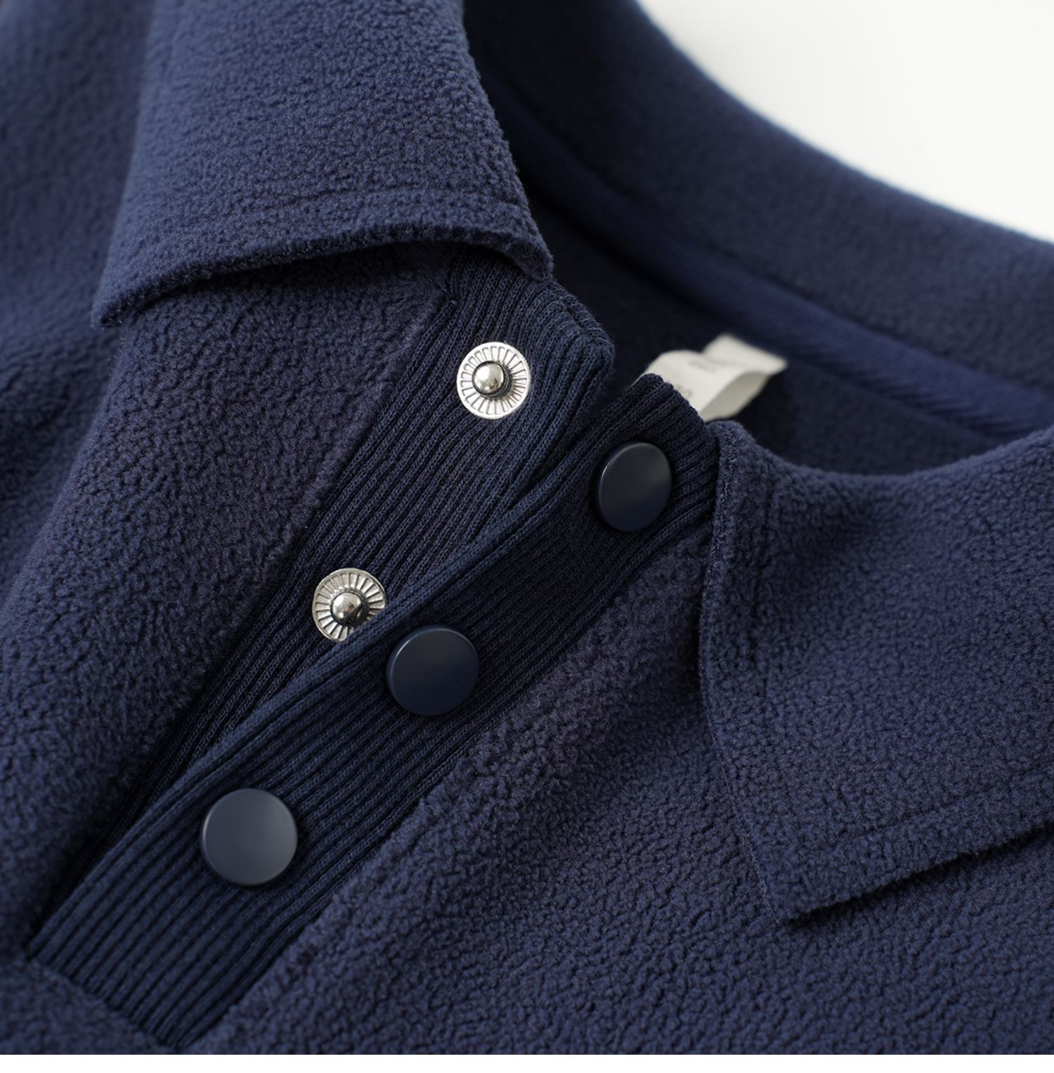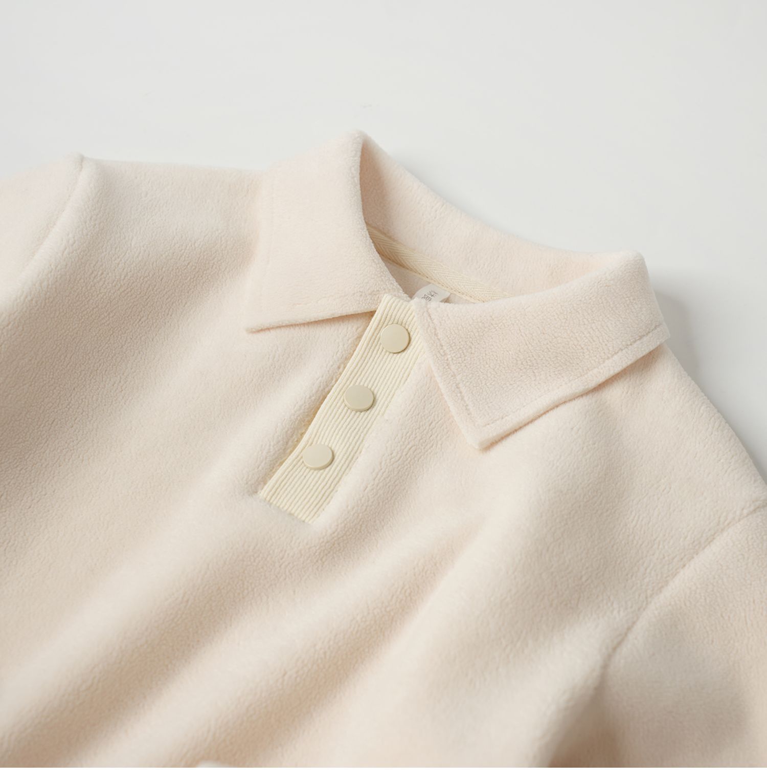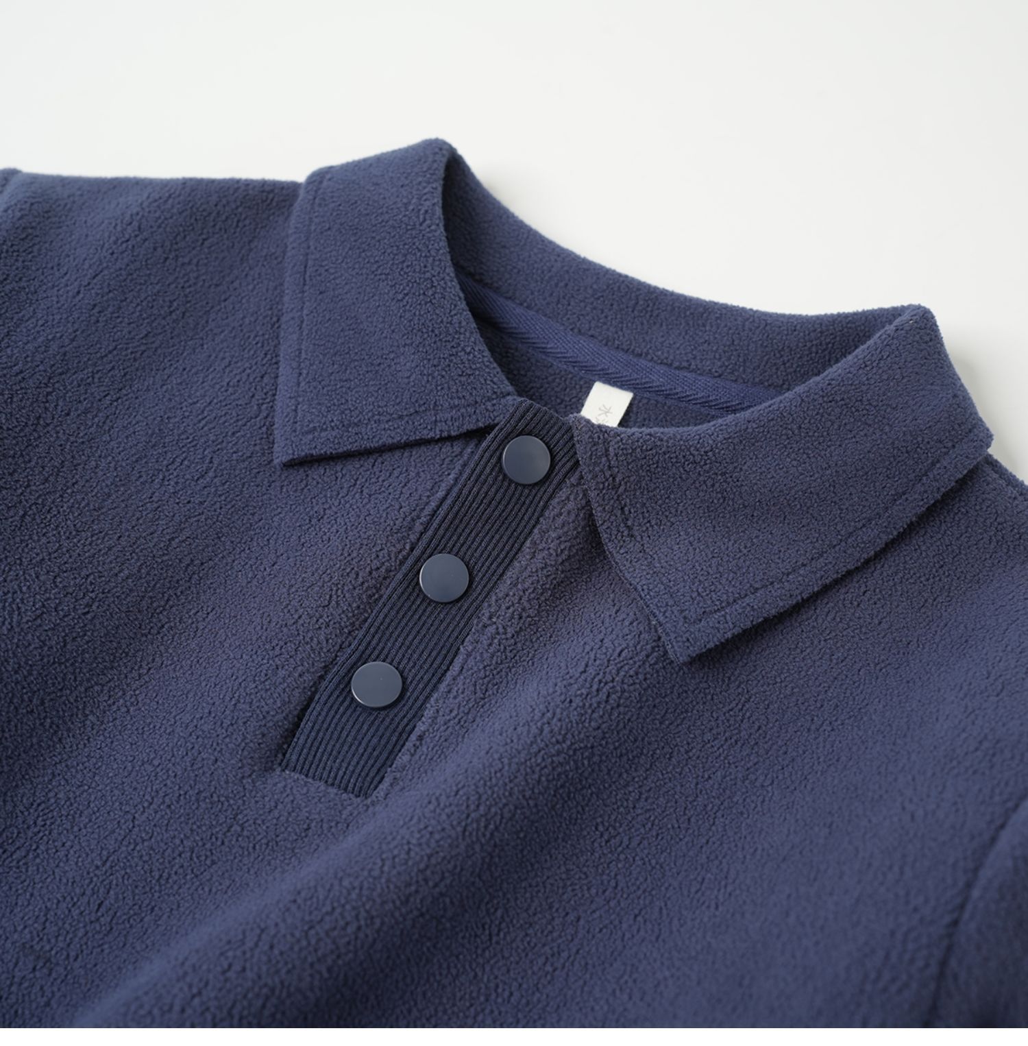 学院风的POLO领剪裁,领前半开扣,穿脱方便