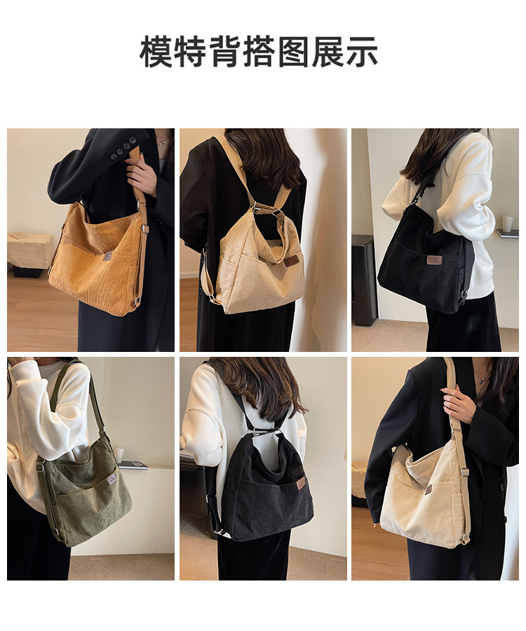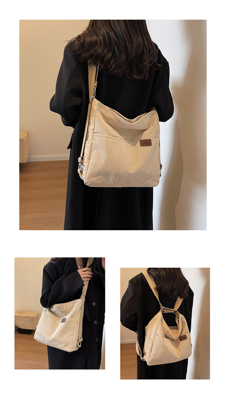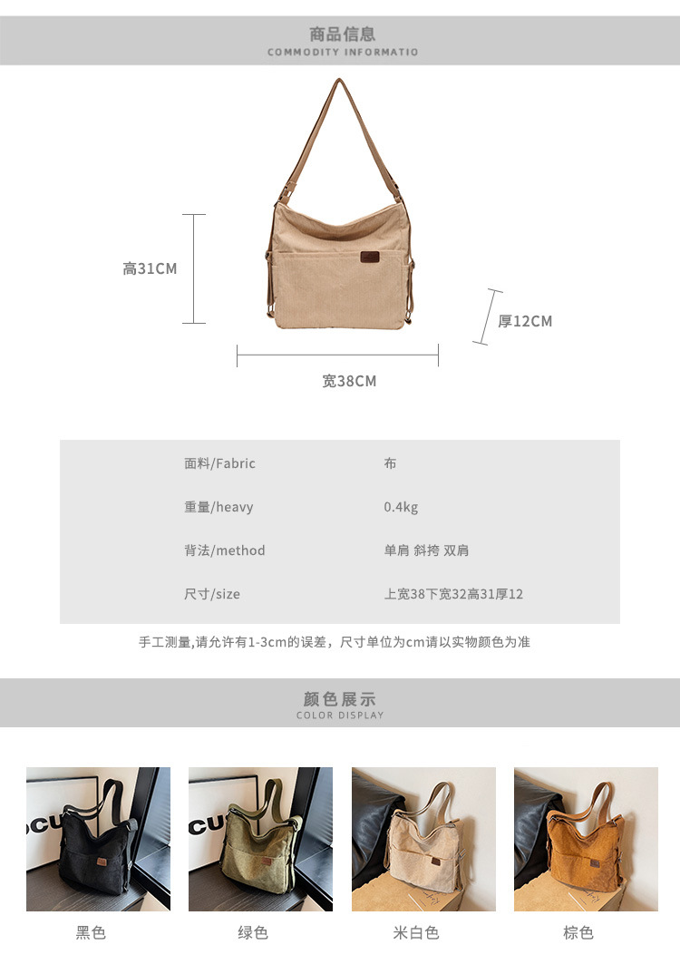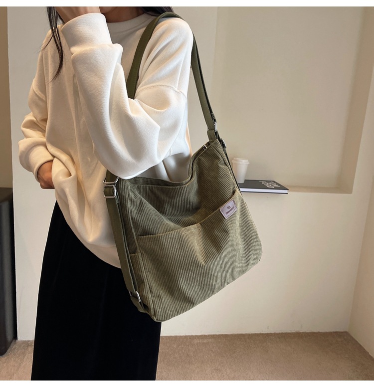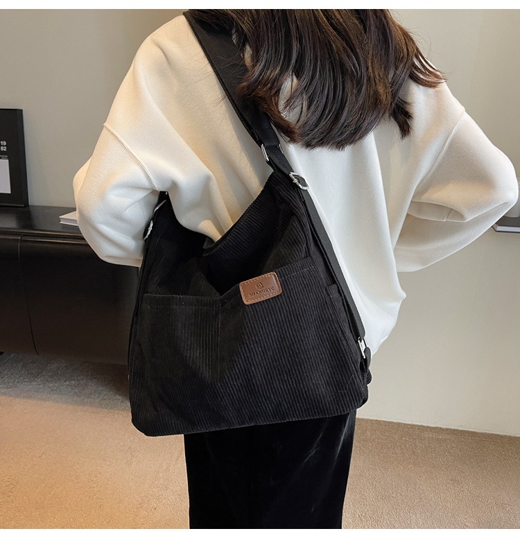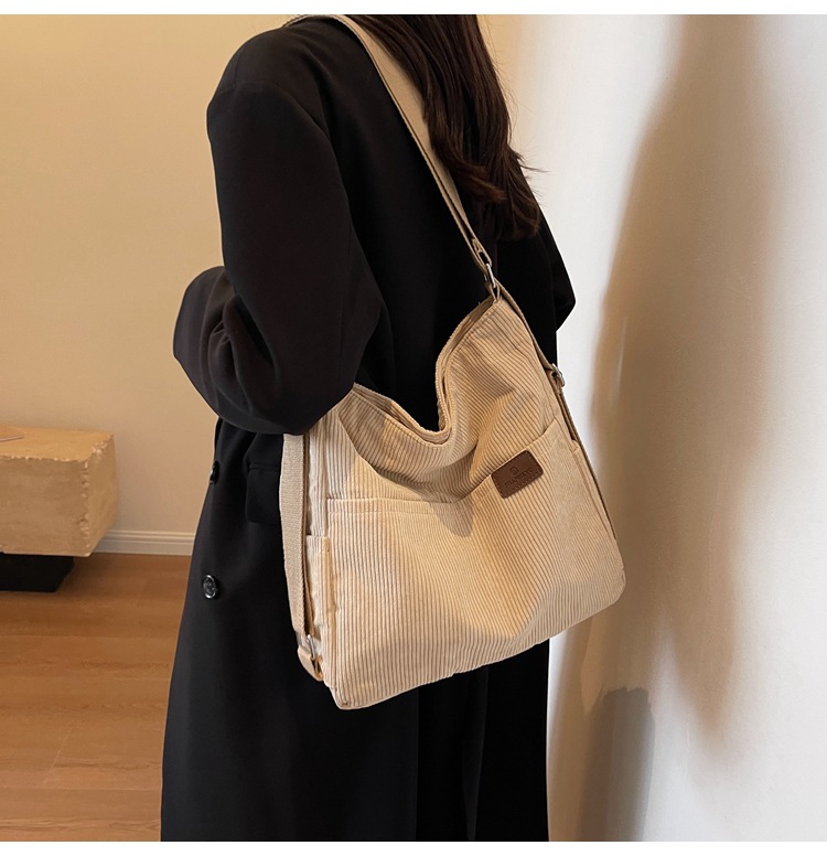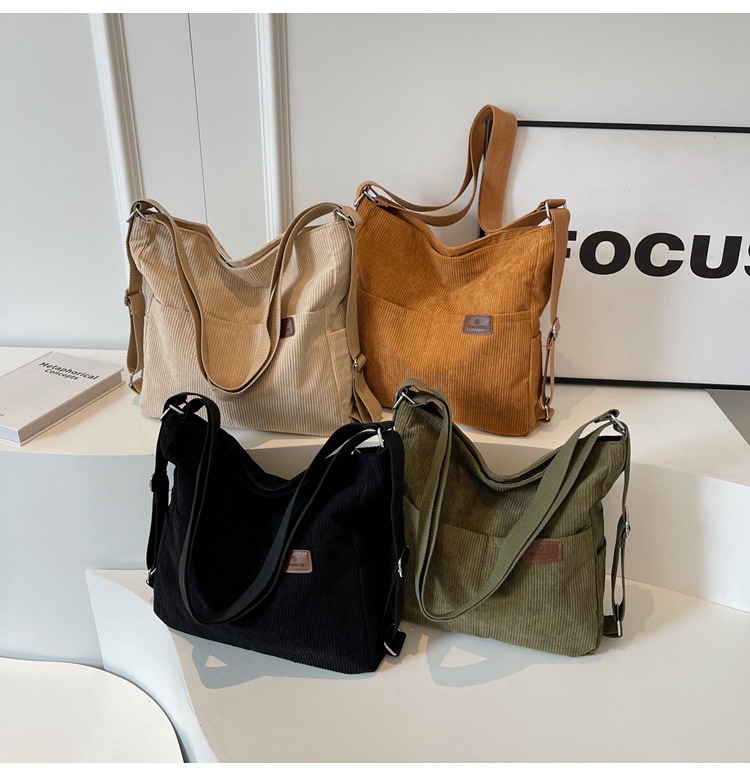 크로스보더 새로운 대용량 코듀로이 백 여성용 레트로 크로스바디 숄더백 더블 숄더 올매치 토트백 다용도 백스토어 가기