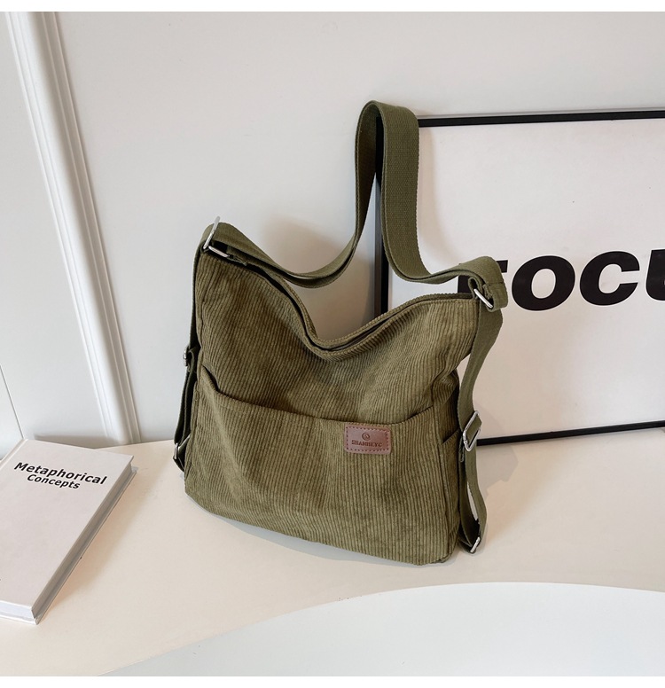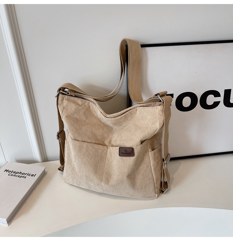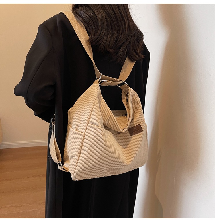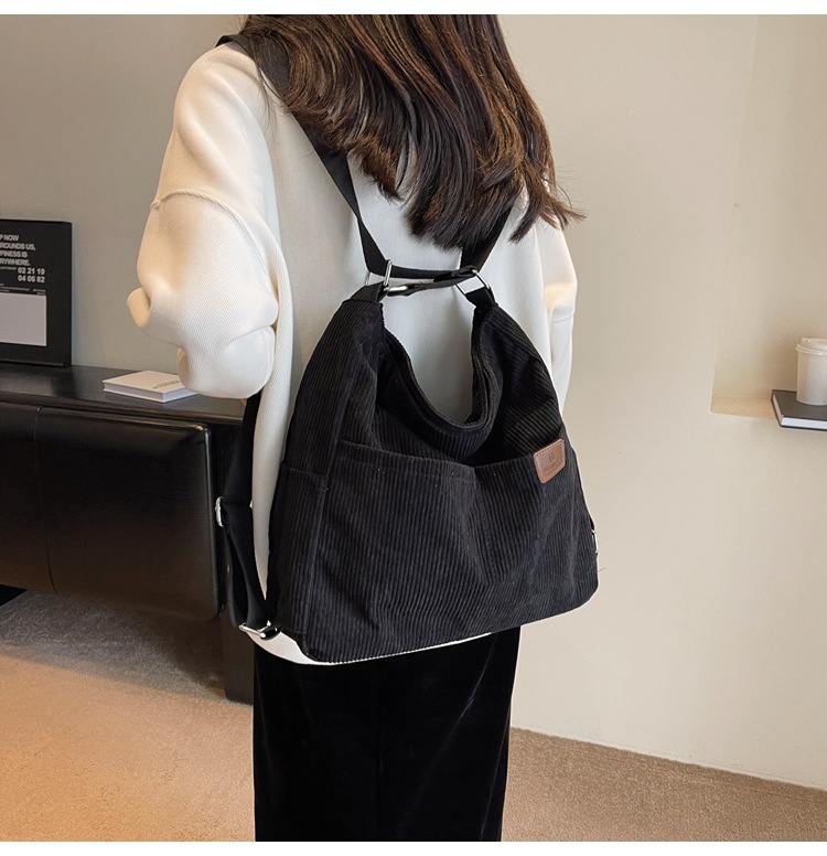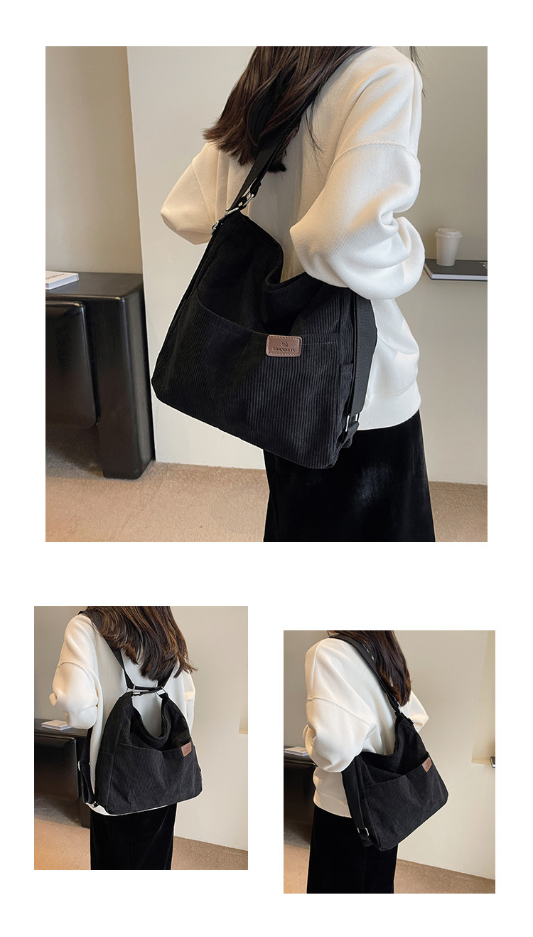 크로스보더 새로운 대용량 코듀로이 백 여성용 레트로 크로스바디 숄더백 더블 숄더 올매치 토트백 다용도 백