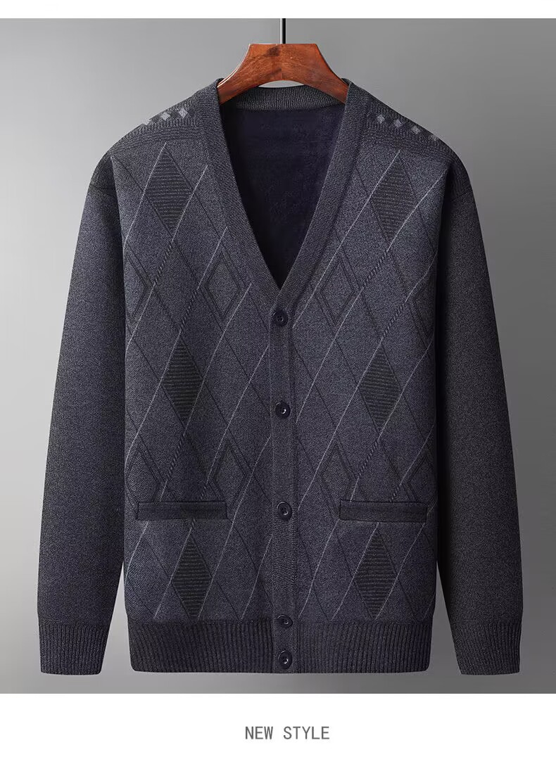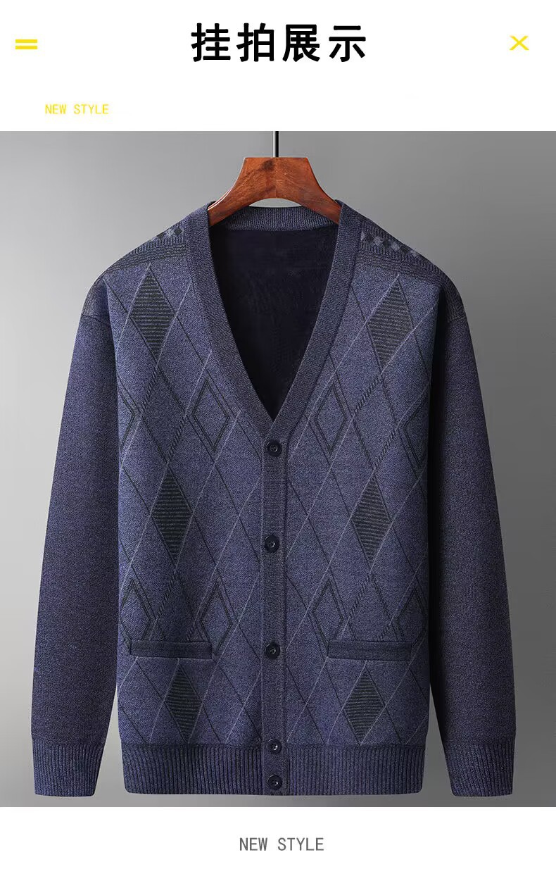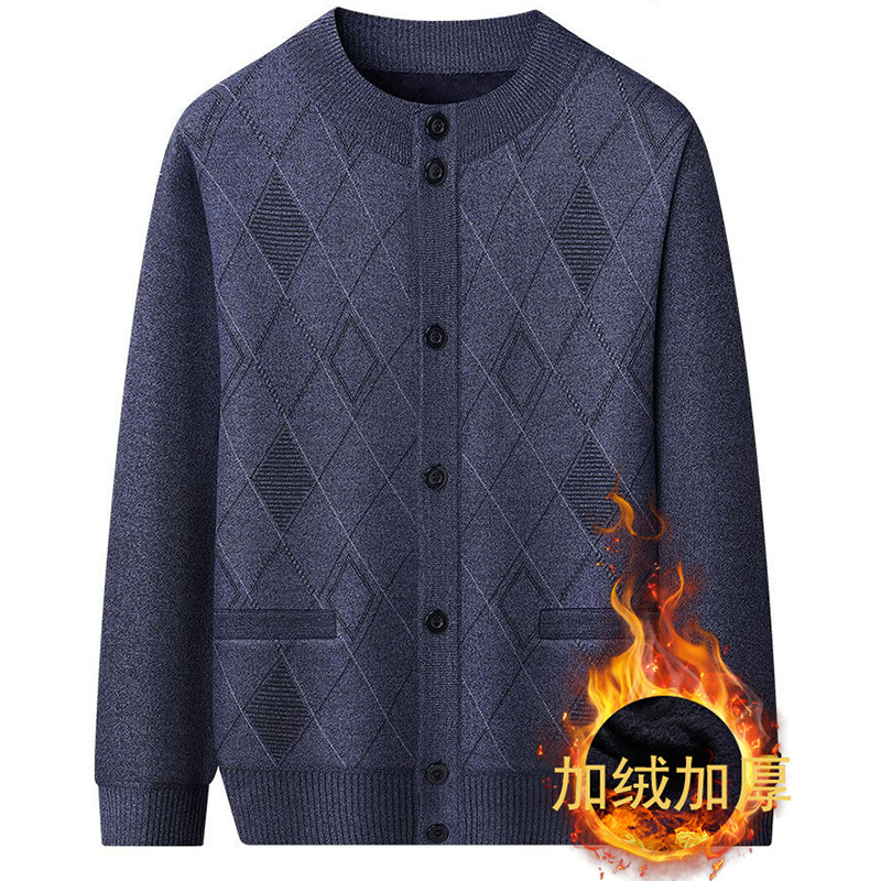 가을과 겨울 기모 두꺼운 중년 남성 니트 카디건 스웨터 재킷 V-넥 느슨한 니트 스웨터 아빠 남자 V스토어 가기
