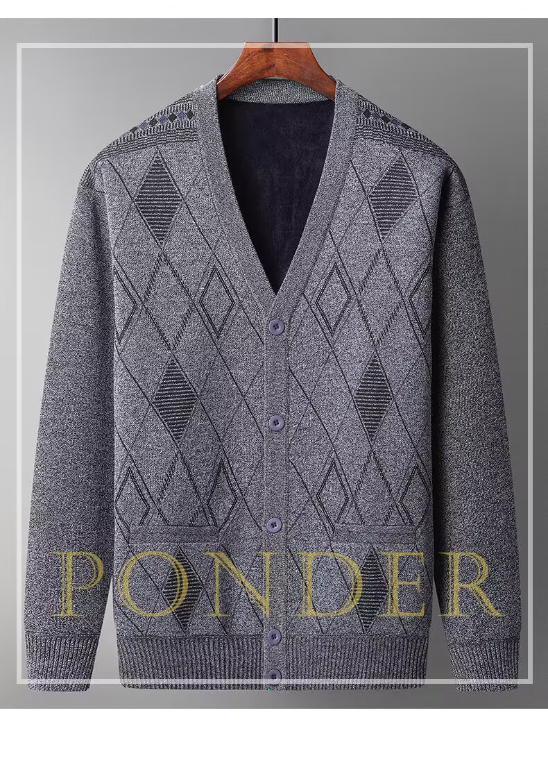 가을과 겨울 기모 두꺼운 중년 남성 니트 카디건 스웨터 재킷 V-넥 느슨한 니트 스웨터 아빠 남자 V
