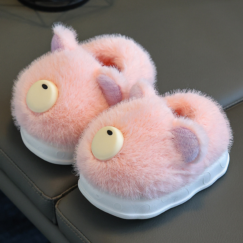 겨울 어린이 면화 슬리퍼 귀여운 만화 소년과 소녀 실내 따뜻한 가정 어린이 미끄럼 방지 아기 가방 면화 신발스토어 가기