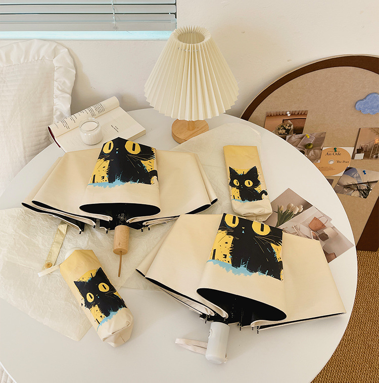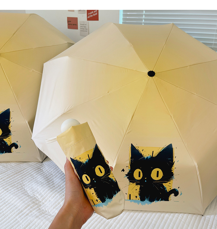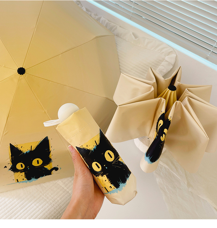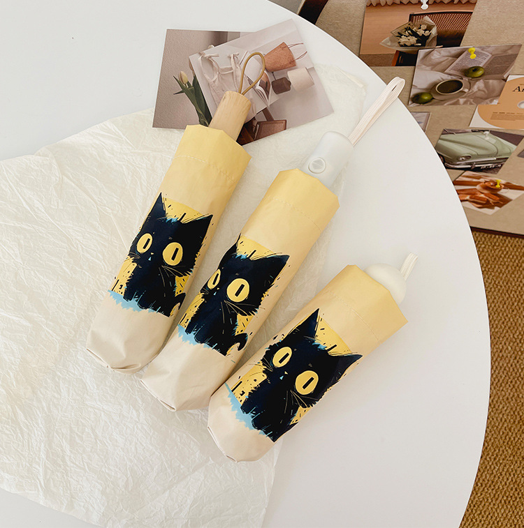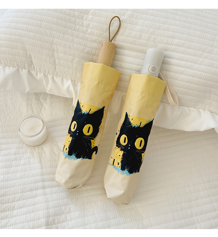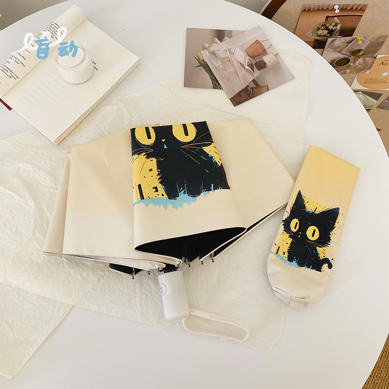 우유 노란색 고양이 접는 우산 자동 태양 보호 및 자외선 차단 및 비 보호 이중 사용 양산 휴대용 미니 태양 우산