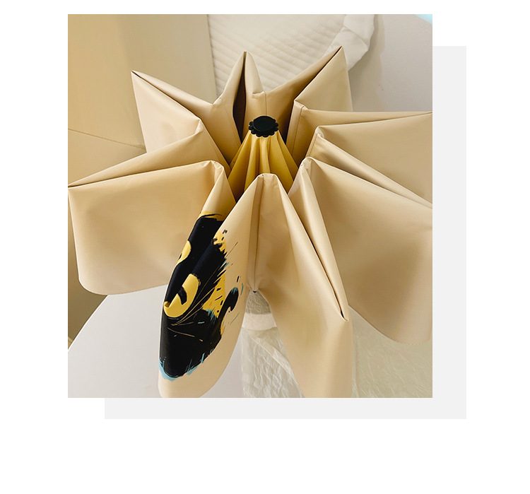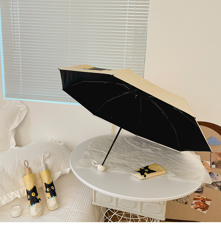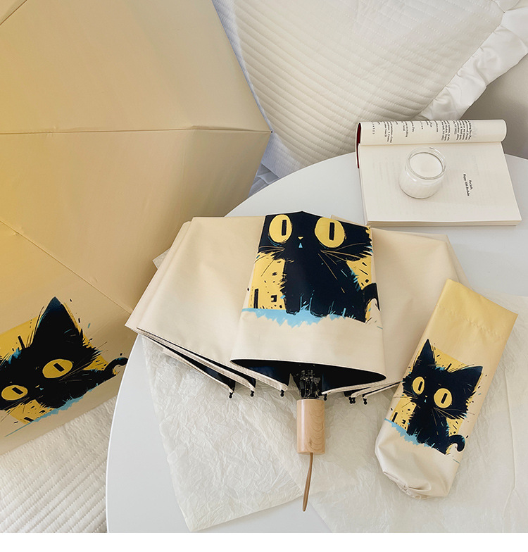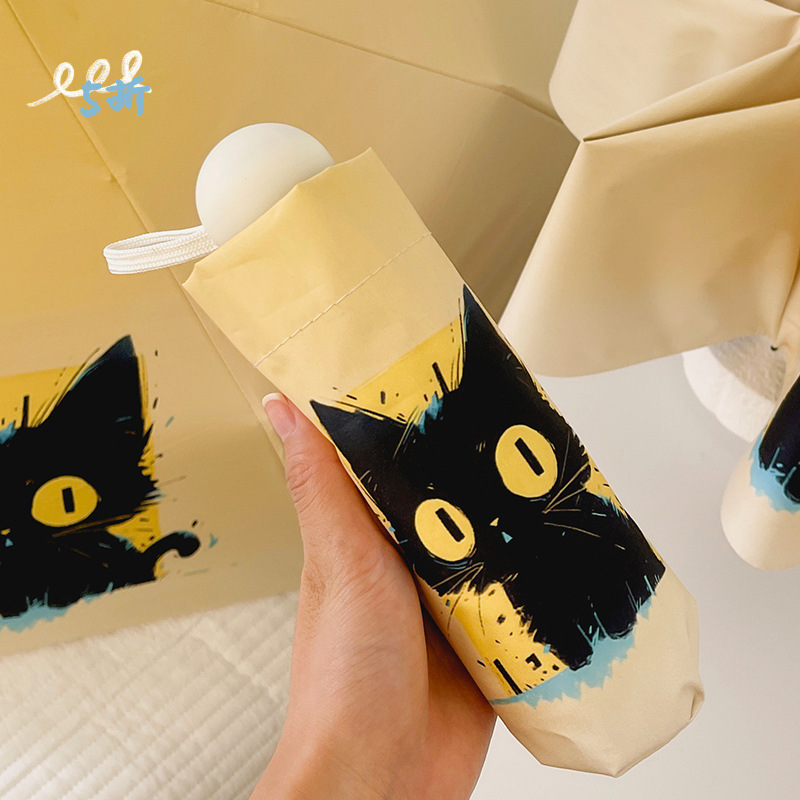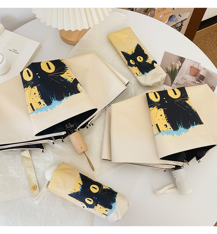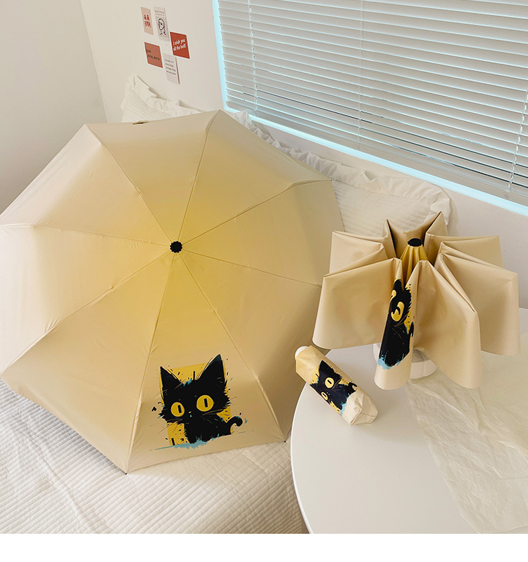 우유 노란색 고양이 접는 우산 자동 태양 보호 및 자외선 차단 및 비 보호 이중 사용 양산 휴대용 미니 태양 우산