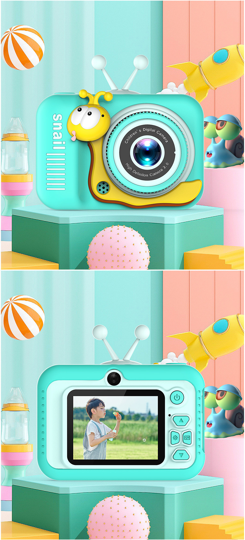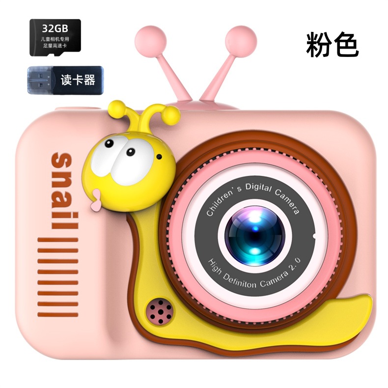 새로운 HD 이중 렌즈 달팽이 어린이 디지털 카메라 미니 만화 소형 SLR 장난감 카메라 머리카락 세대